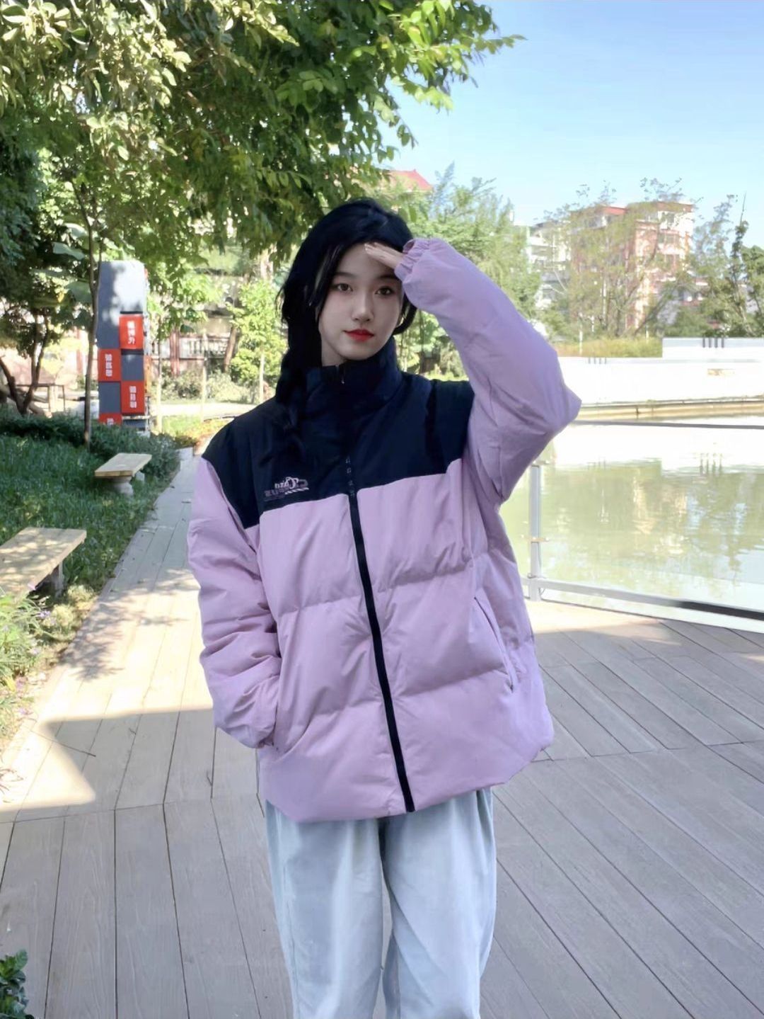 细节控表示狠狠爱了!面料摸起来软软的,还带点防泼水面料的质感,下雨天也不怕。压线很均匀,穿了好几天完全不跑绒。领口和袖口的设计很贴心,防风又舒服。小个子穿也完全不压身高,搭配牛仔裤就是韩系小姐姐本人!