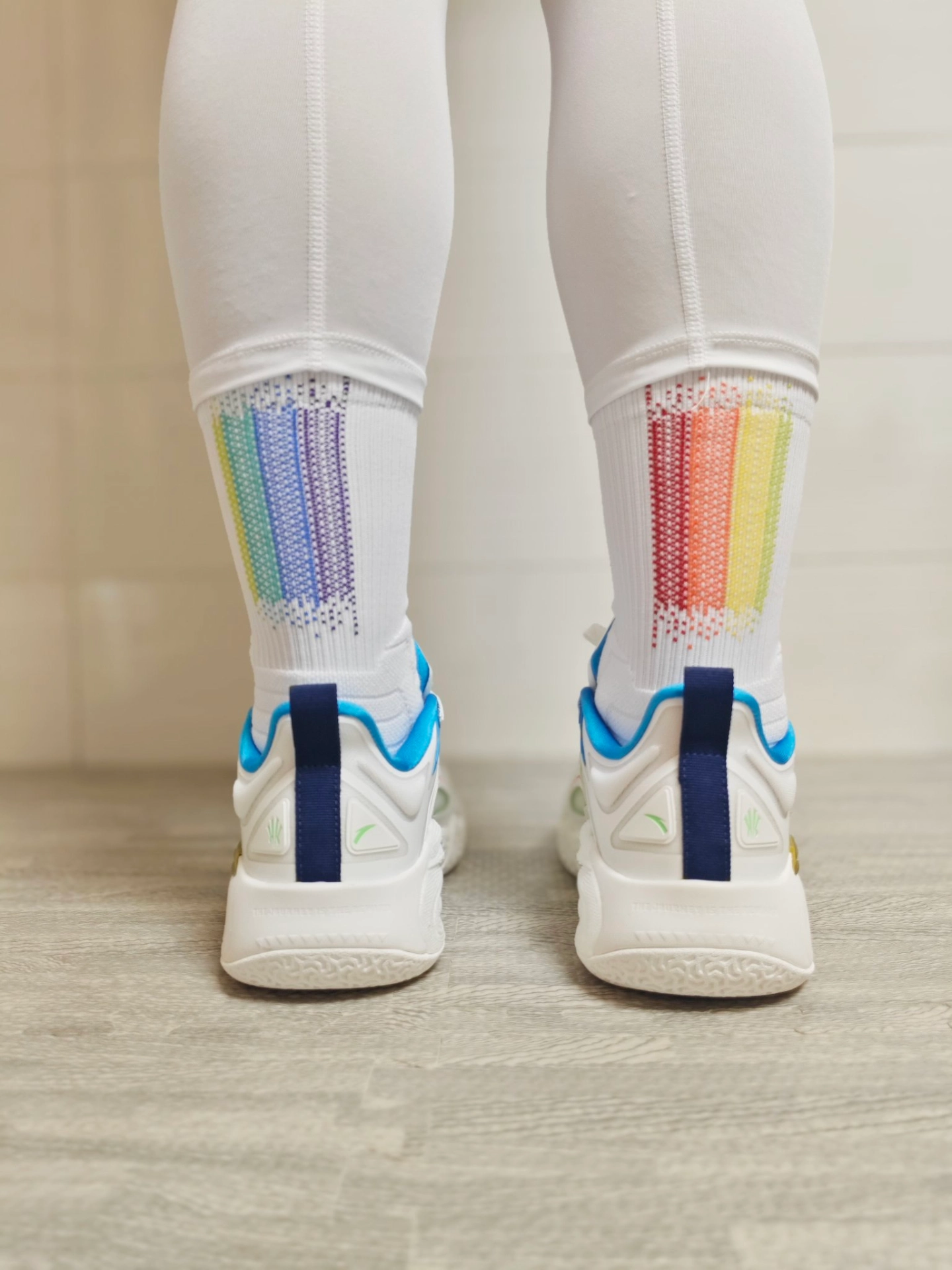 维动马年系列独角兽篮球袜种草啦! 梦幻独角兽图案撞色马年元素,后跟彩虹🌈条设计颜值超吸睛,搭任何球鞋都出彩👍🏻 高筒设计环抱脚踝,加厚包裹护踝防扭伤,毛巾底防滑缓冲,跑跳急停超稳。透气面料不闷脚,吸汗防臭耐穿,性价比拉满打球出街都适配,自带新年好运buff,马年实战穿搭闭眼冲💥 #维动 VEIDOORN #维动马年系列篮球袜 #维动篮球袜 #被这双鞋帅到 #运动篮球🏀袜 #维动篮球穿搭