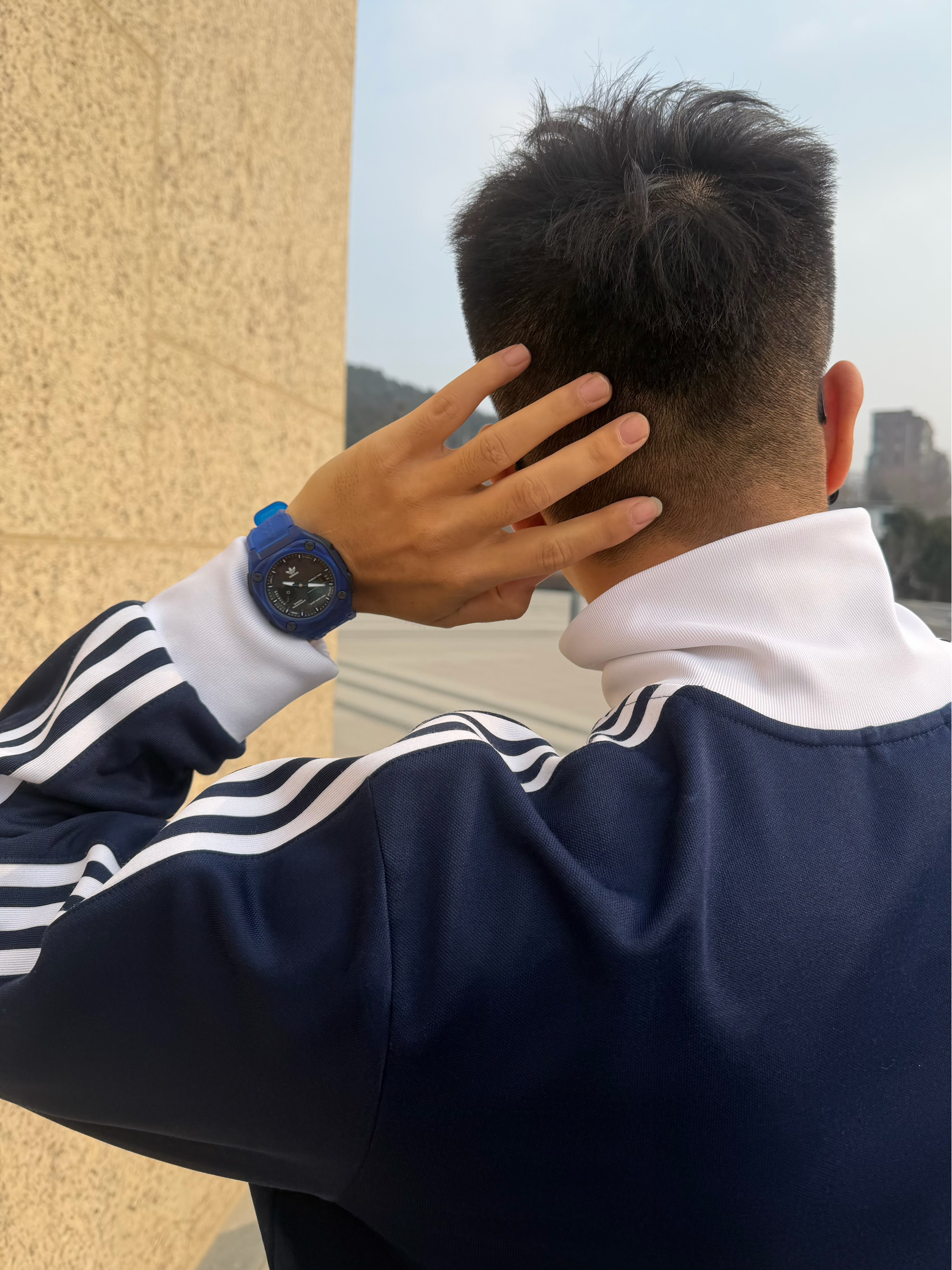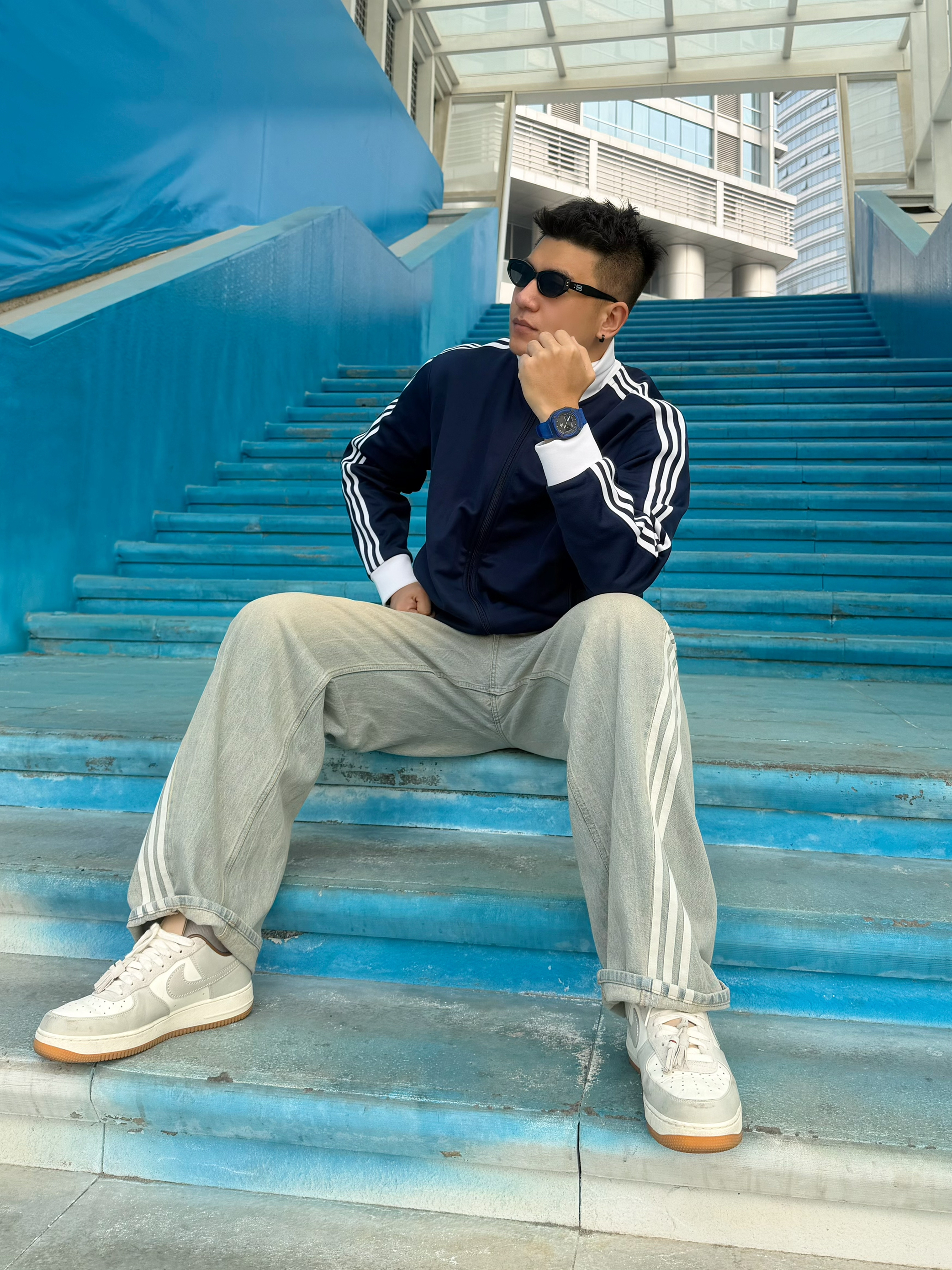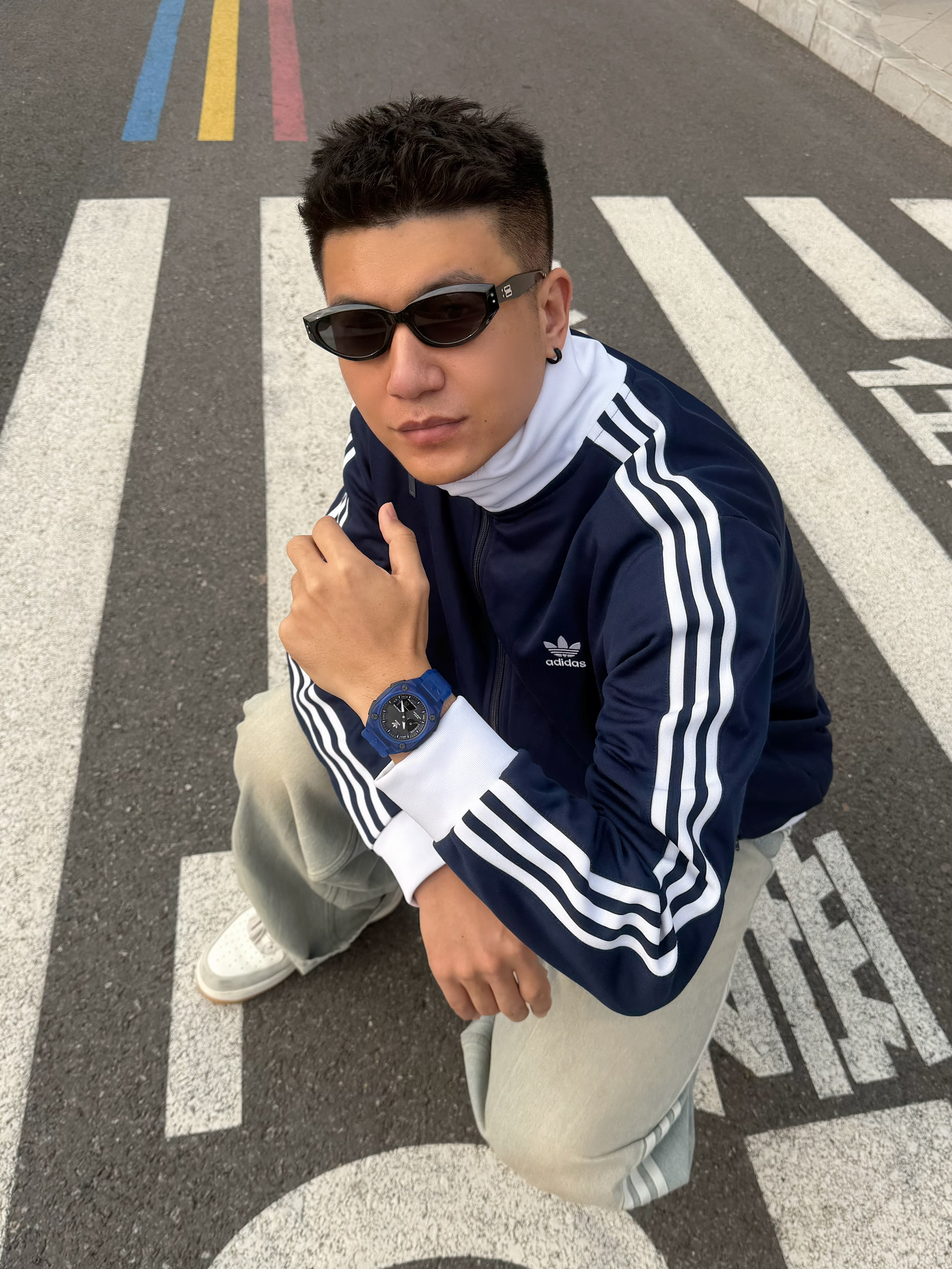 上身藏蓝外套,配浅蓝长裤整个人干净又精神~ 搭配这块最近常戴的adidas腕表👌 蓝树脂表带和外套颜色悄悄呼应,黑色表盘,日常防水完全够用,休闲出门抬手间都很有气质✨ 个人感觉这种小配饰才是穿搭灵魂,简约不简单,双旦送男友他肯定会惊喜~⛄️