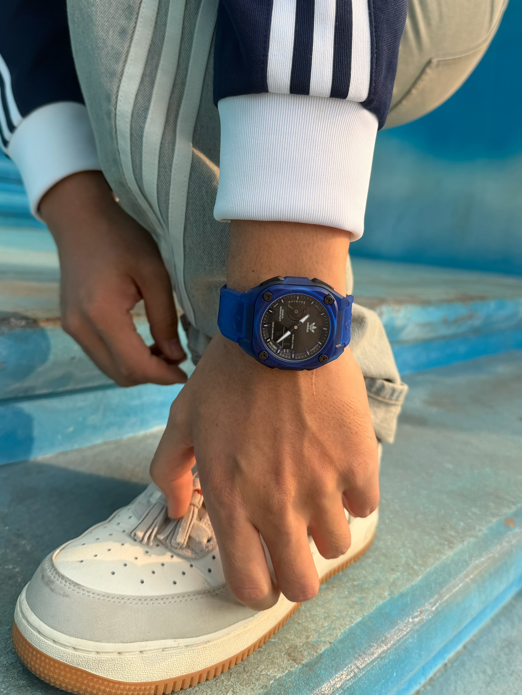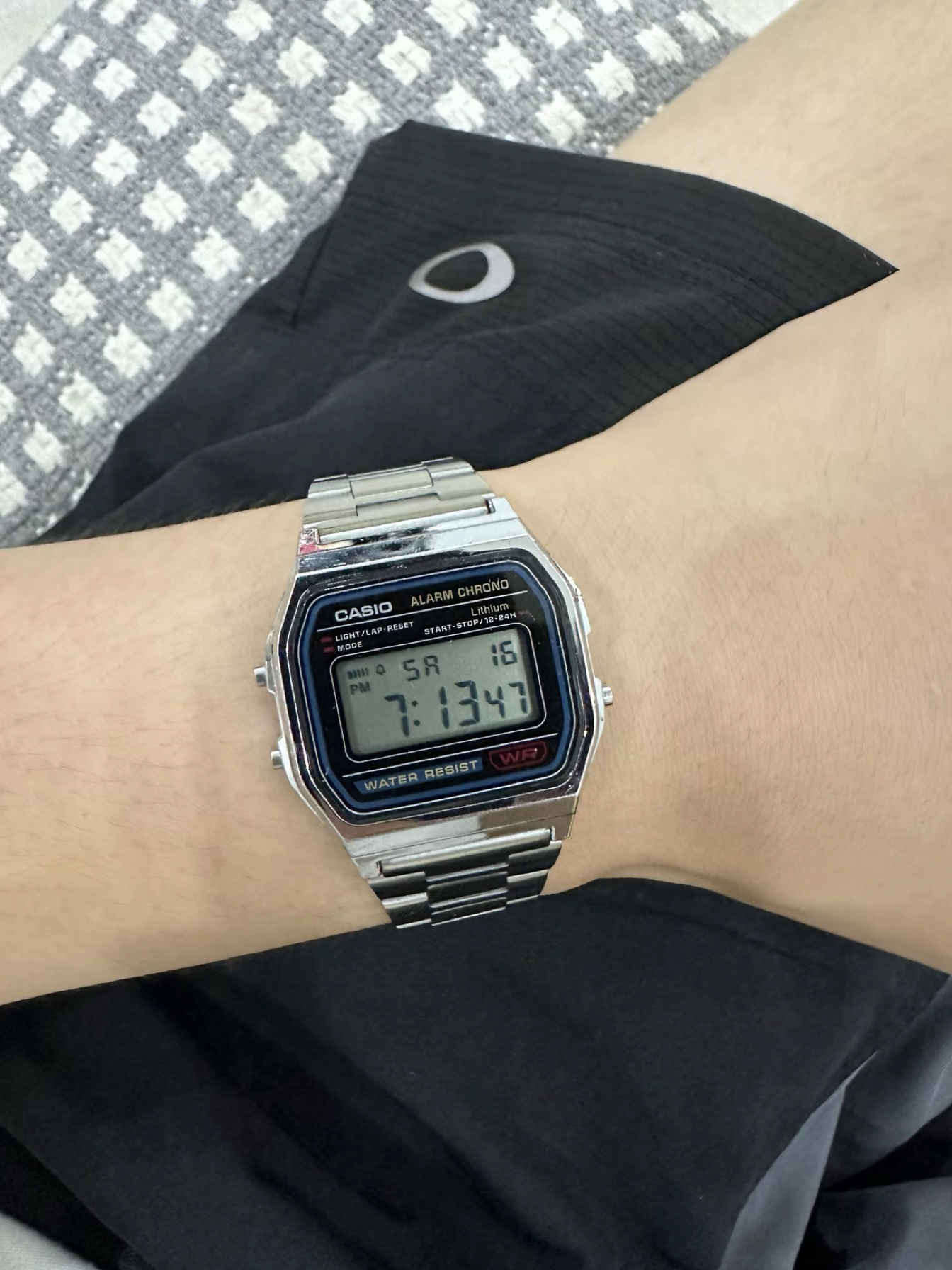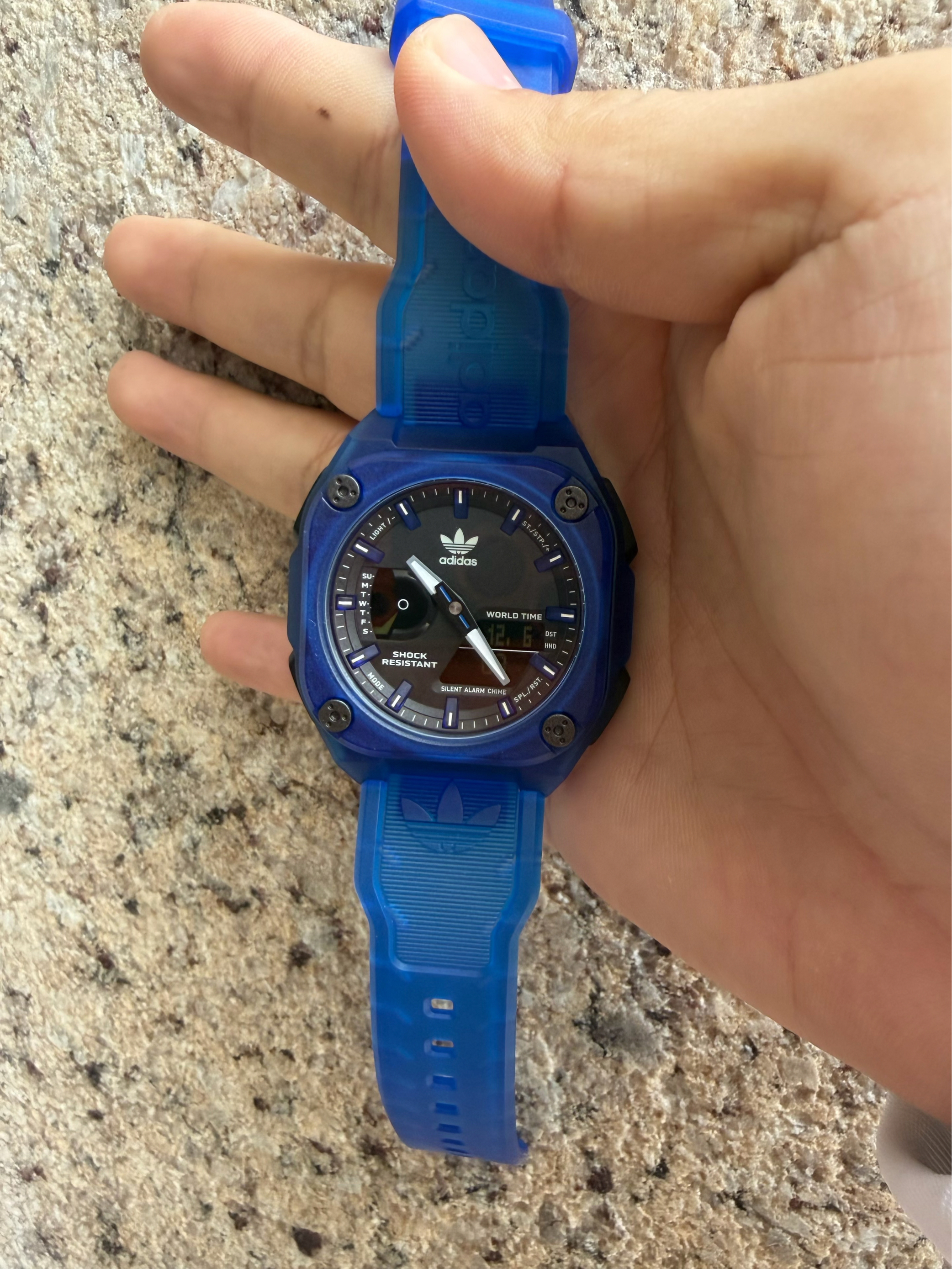 上身藏蓝外套,配浅蓝长裤整个人干净又精神~ 搭配这块最近常戴的adidas腕表👌 蓝树脂表带和外套颜色悄悄呼应,黑色表盘,日常防水完全够用,休闲出门抬手间都很有气质✨ 个人感觉这种小配饰才是穿搭灵魂,简约不简单,双旦送男友他肯定会惊喜~⛄️
