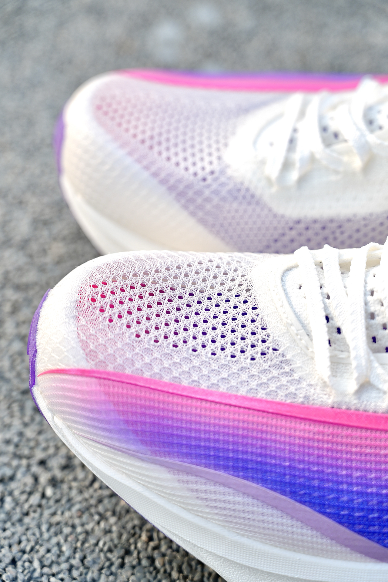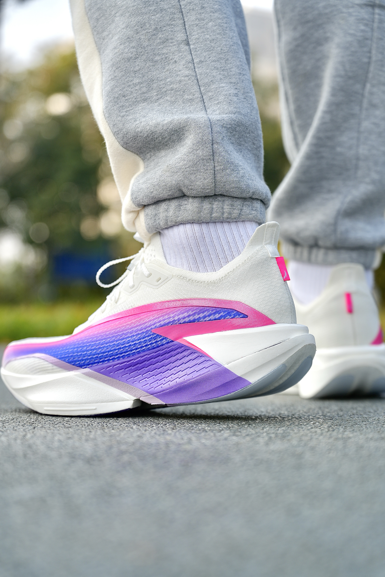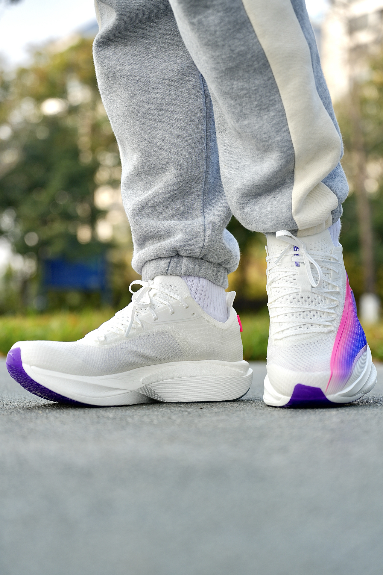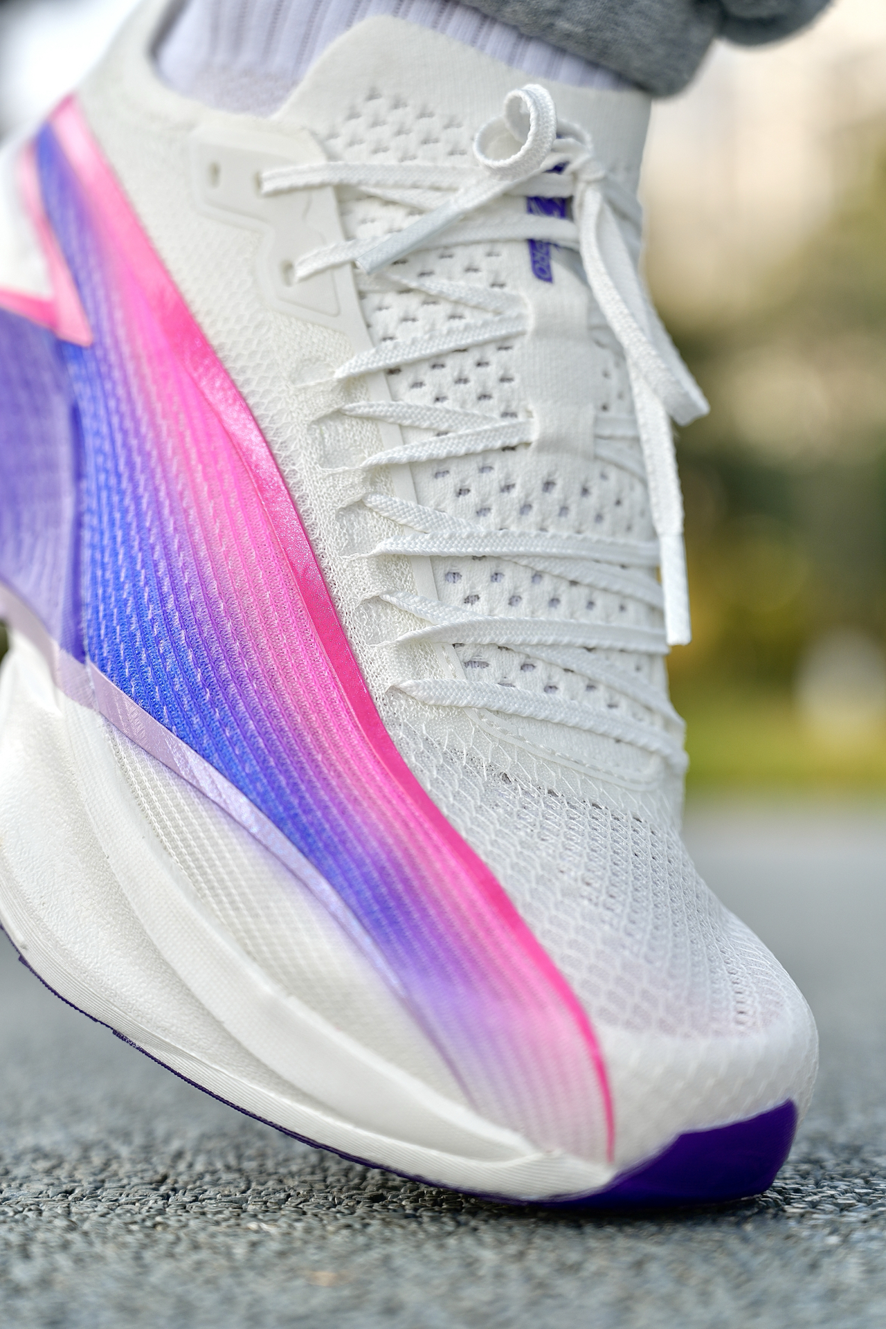 今天分享的跑鞋为安踏 马力2Pro,鞋子外观呢很有辨识度,侧边采用硕大的粉紫渐变色LOGO设计,视觉冲击感很强,大家觉得颜值如何呢? 配置简单说:双密度氮科技中底+全掌铲形碳板,透气横纹网布鞋面,全掌CPU橡胶大底带深纹路 上脚体验下来,中底脚感软弹有支撑,上层踩屎感明显,下层不卸力,前掌的滚动顺,碳板的推进温和 不过缺点也要注意,湿地防滑一般,雨天柏油路要减速;长距离后半程中底有轻微衰减;大...