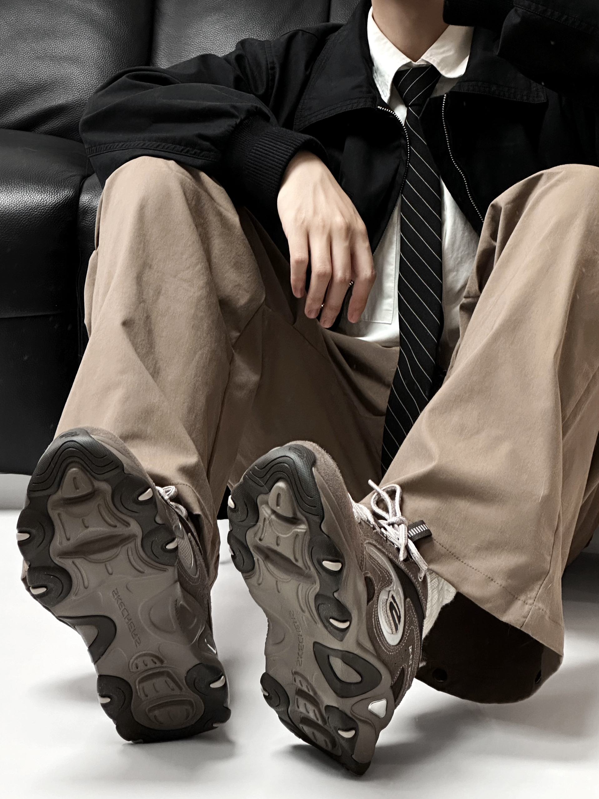 不知不觉斯凯奇熊猫鞋都出到第五代了 反毛皮皮革拼接鞋面 层次感十足 5cm的厚底 上脚脚感软弹还自带无痛增高 Slip-ins 闪穿科技加持一脚蹬出门懒人超爱 棕色系的可可熊&真的不要太适合冬季 圣诞氛围拉满了 日常搭配 Cleanfit 美拉德风格就很帅诶