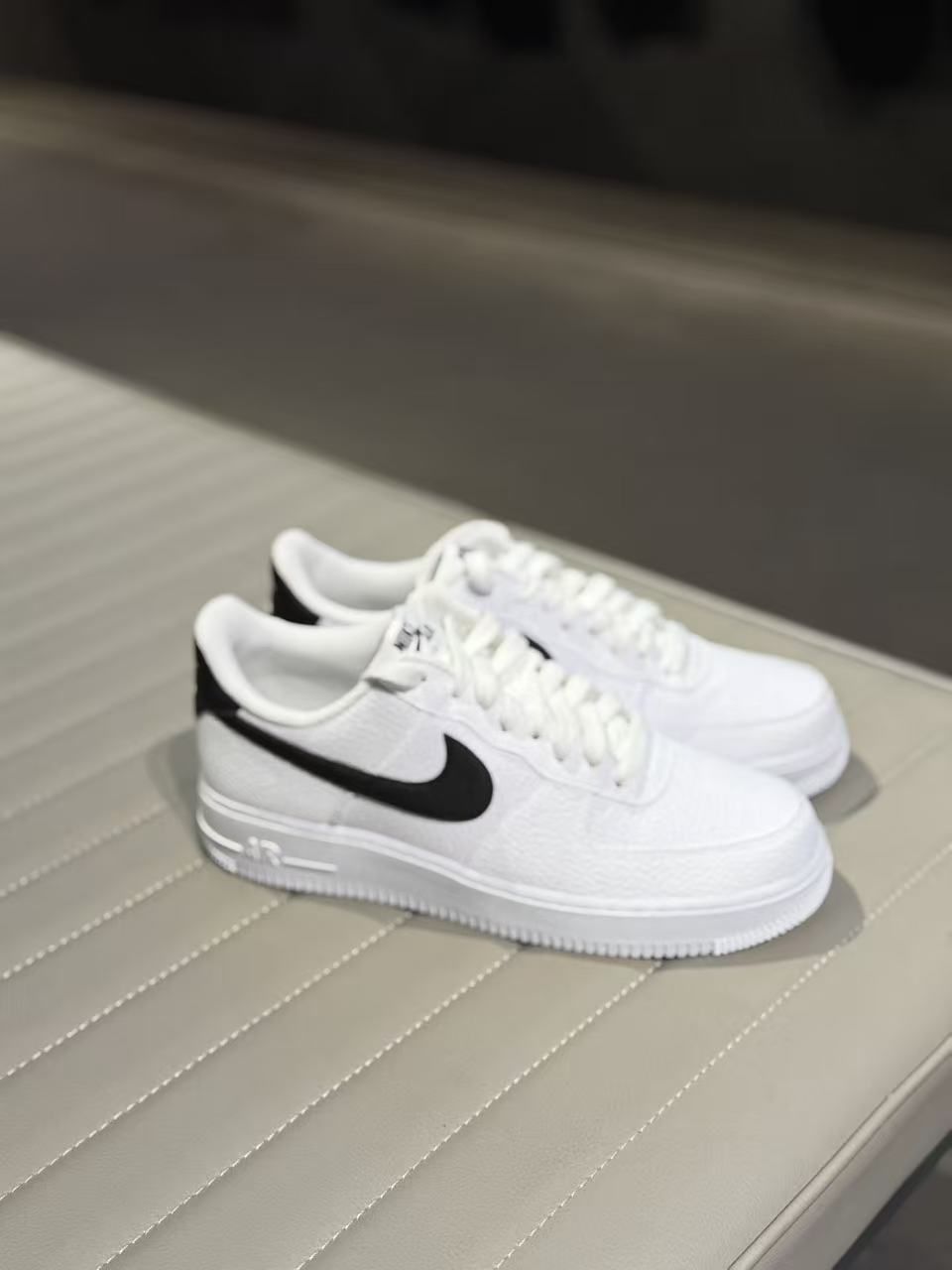 经典永不过时说的就是这双空军一号吧!🤍🖤 选的是黑白荔枝皮款,白色鞋身搭配黑色Swoosh,简约又高级,荔枝纹的皮质摸起来质感超棒,比普通款多了几分精致感。低帮的版型上脚巨百搭,不管是休闲风还是运动风都能hold住,脚感也很舒服,日常通勤、逛街穿都毫无压力。
