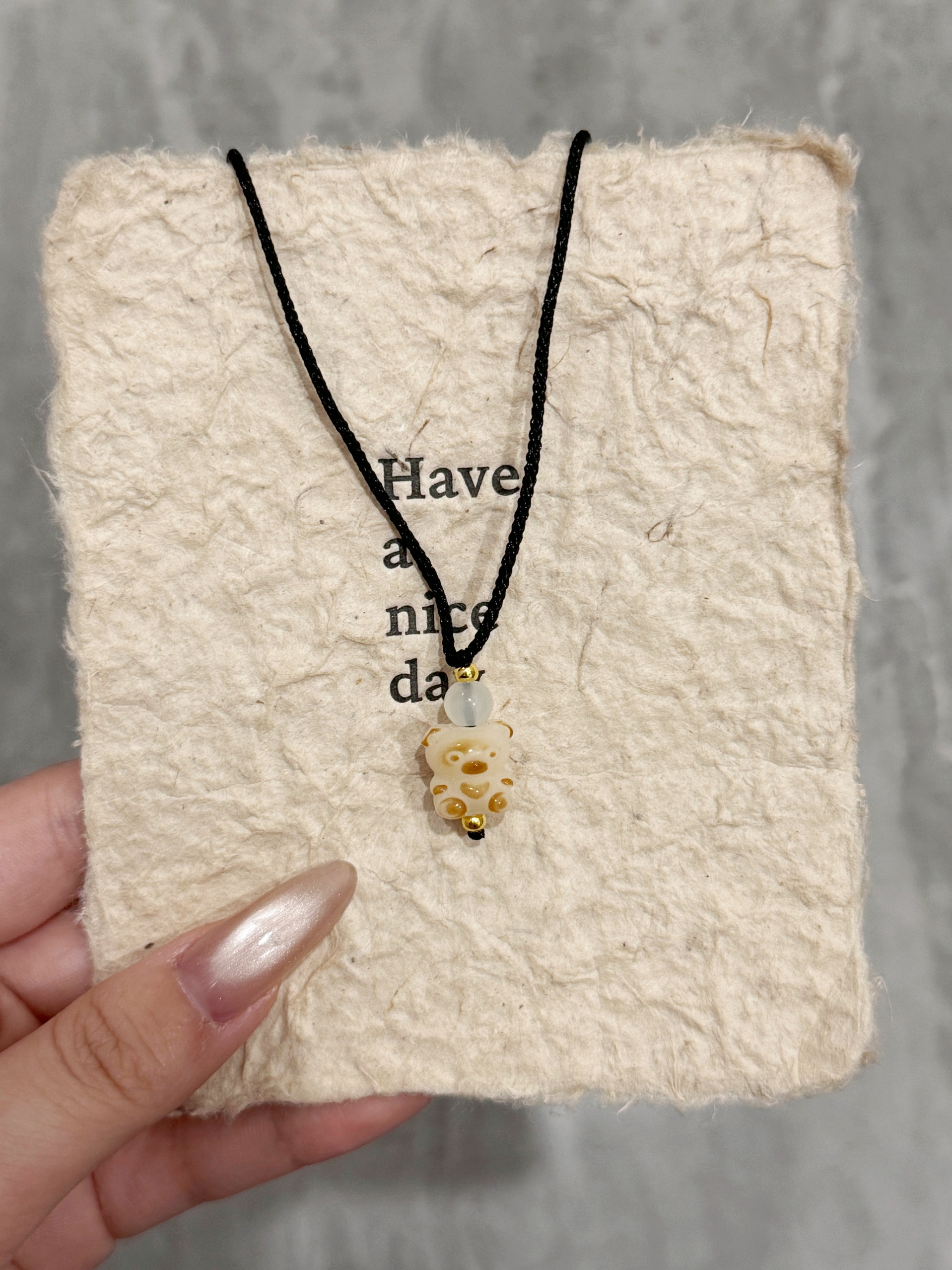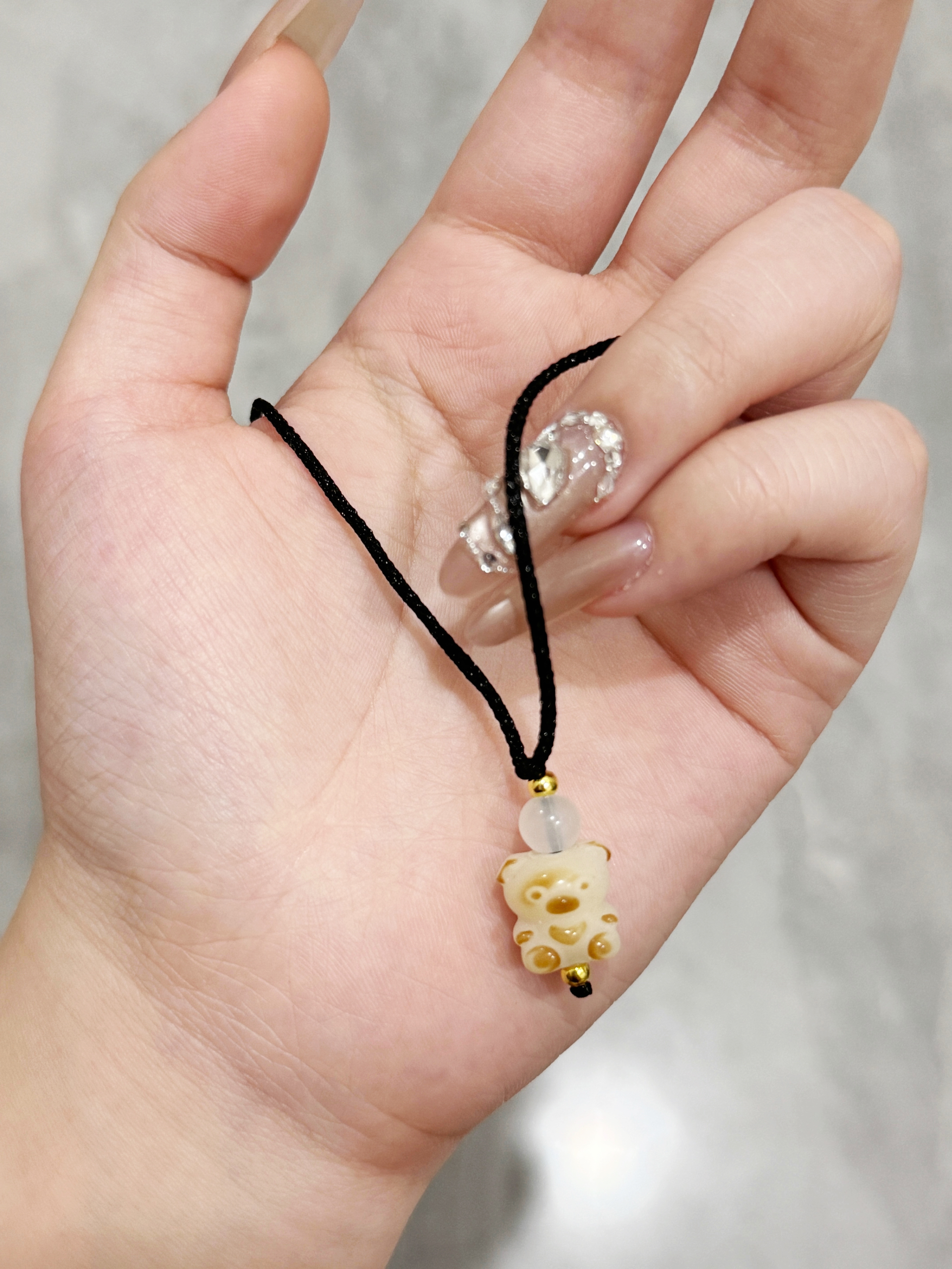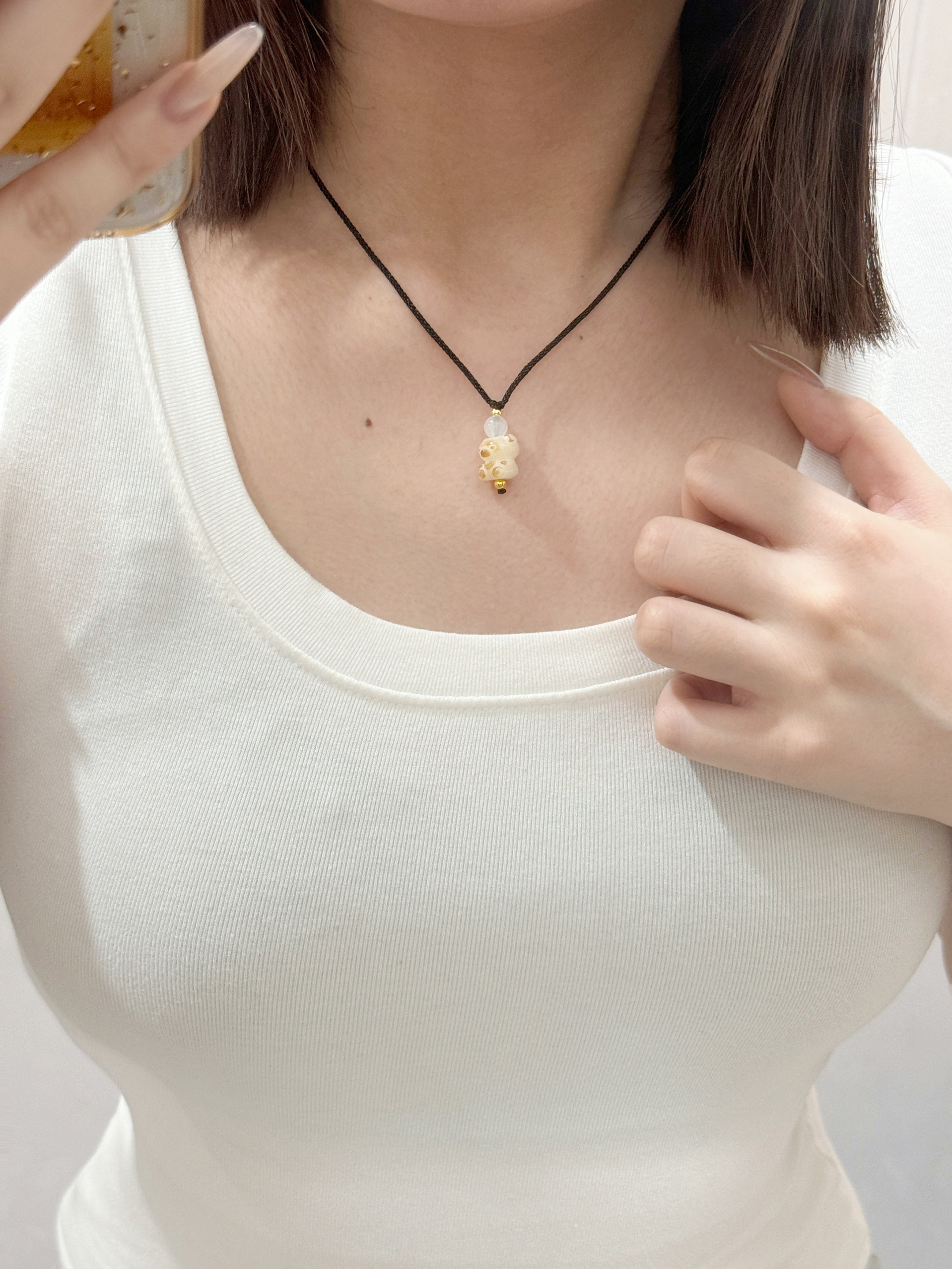 戴上直接嫩回18岁! 奶白底色混着浅棕小斑点,像裹了层蜂蜜的软糖小熊🐻 黑绳+透透的小珠子,清清爽爽不抢风头 配T恤、吊带都巨搭,夏天露锁骨的时候戴刚刚好! 软萌又精致,摸起来还滑溜溜的,这谁看了不迷糊啊~