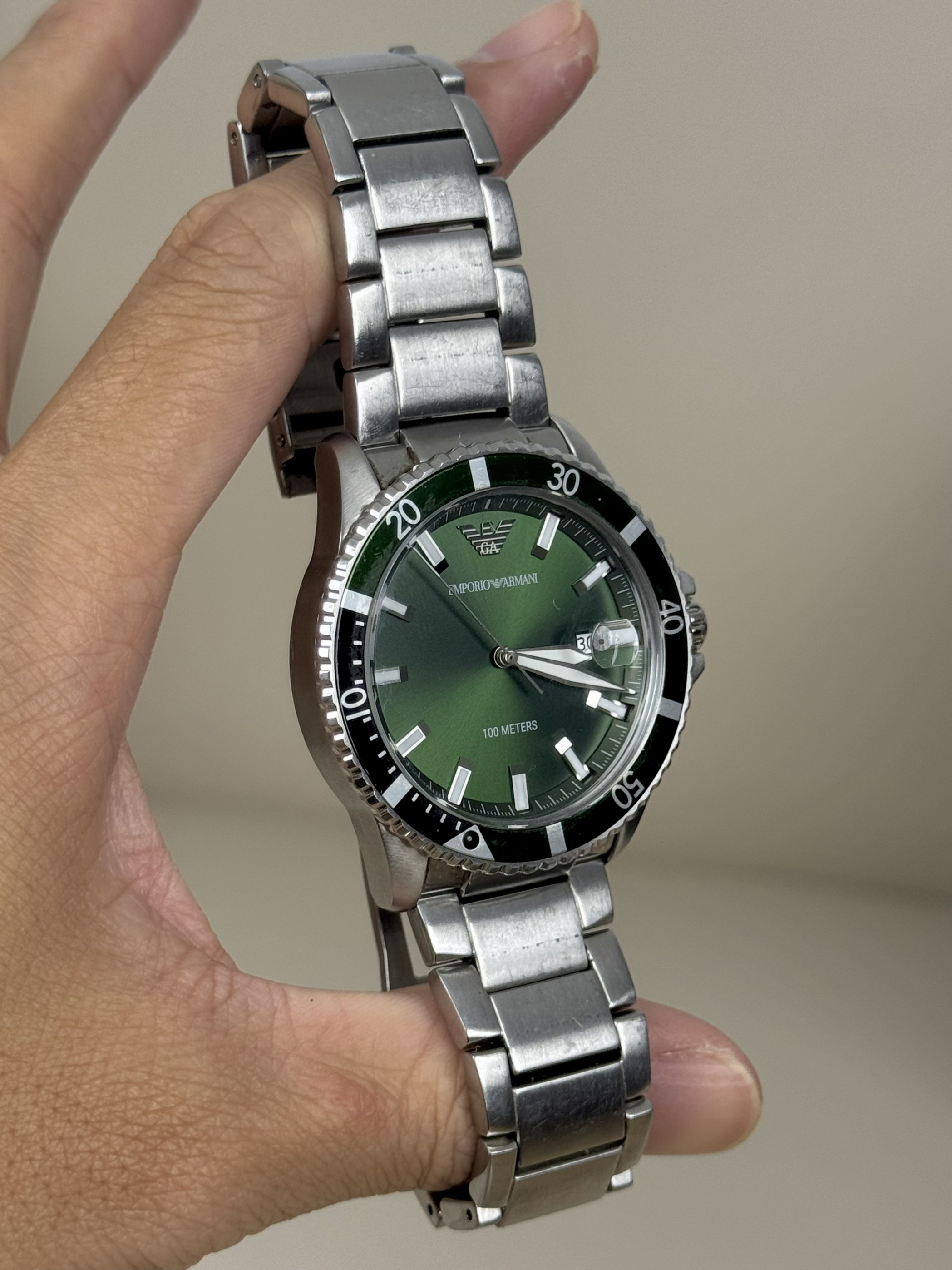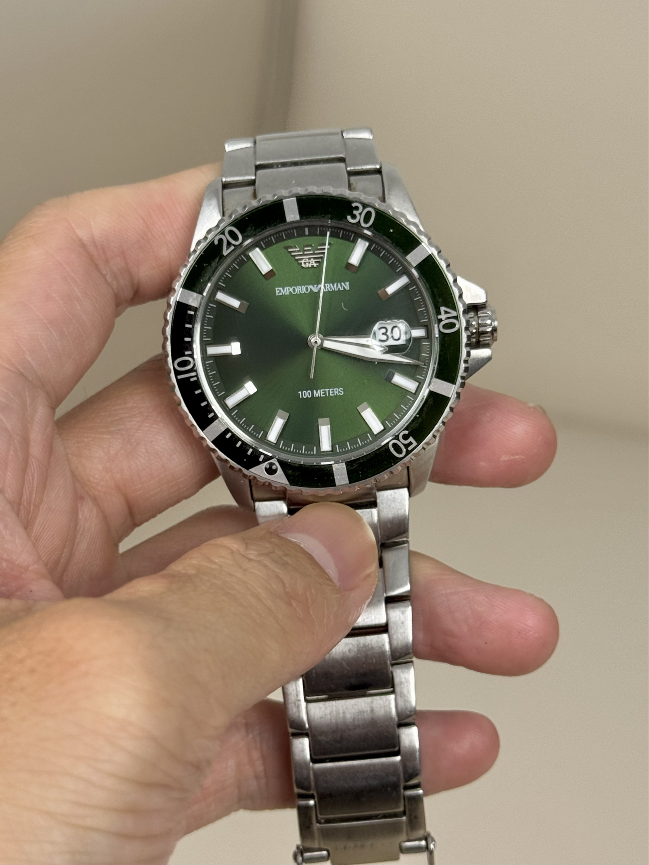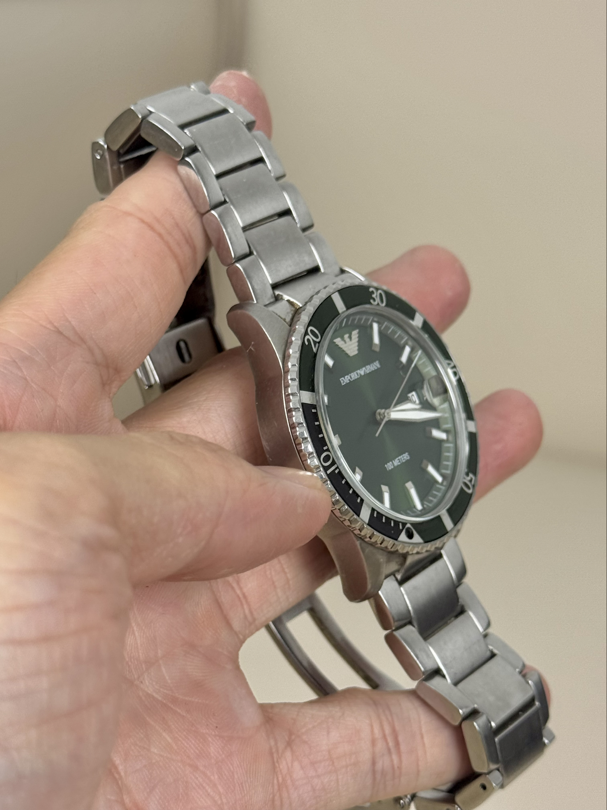 本篇笔记关联了Armani/阿玛尼 宋威龙同款 绿水鬼 钢制大表盘深海潜水三眼日历防水石英男士手表 绿色 AR11338等商品,为用户提供真实的使用体验和购买参考。