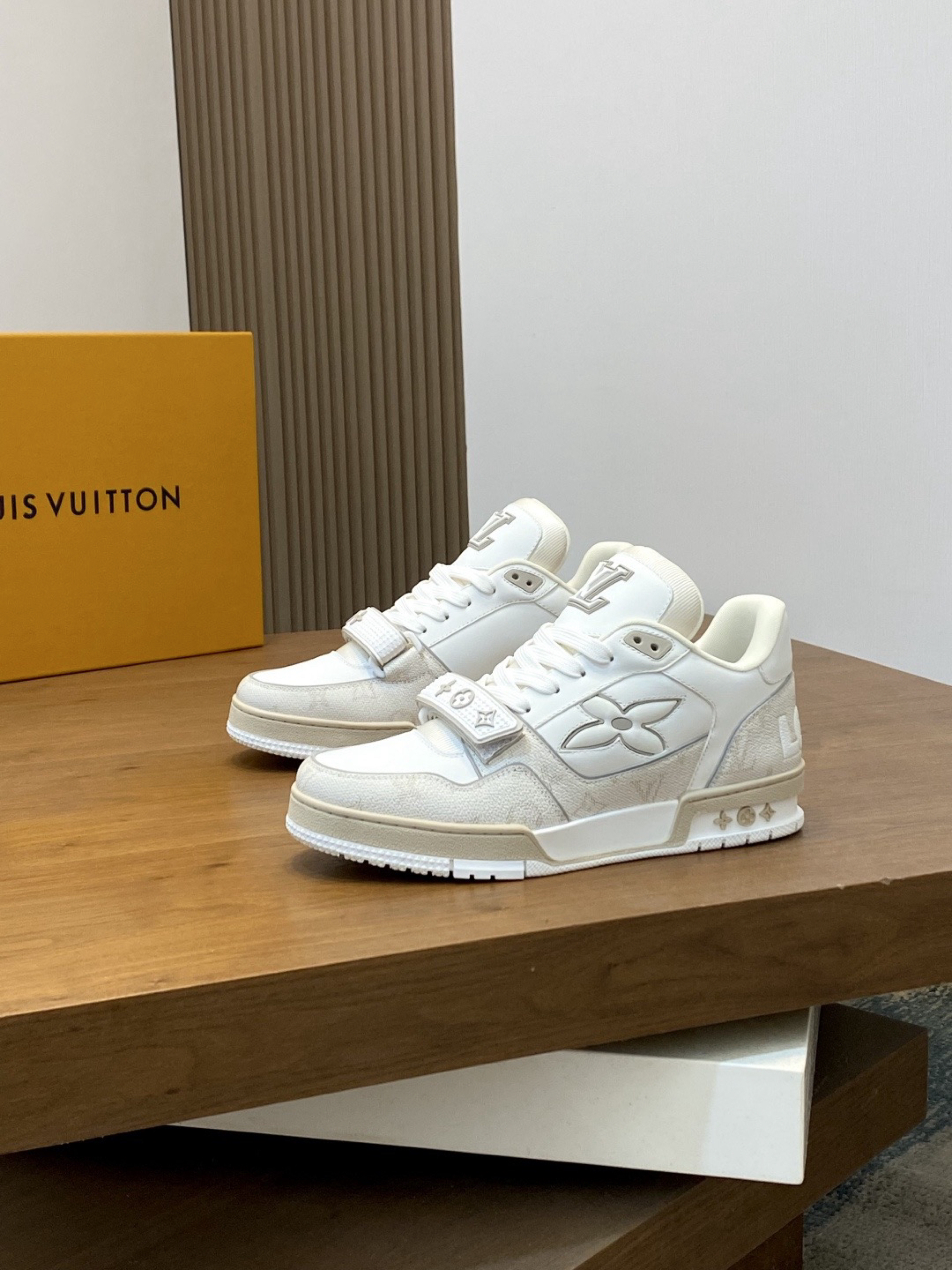 【LOUIS VUITTON Trainer 牛皮革 圆头系带魔术贴 低帮 板鞋 男女同款 米白色】,由用户 风铃铃奥莱斯 分享,来自江苏。这是一篇来自识货社区的真实用户分享笔记。