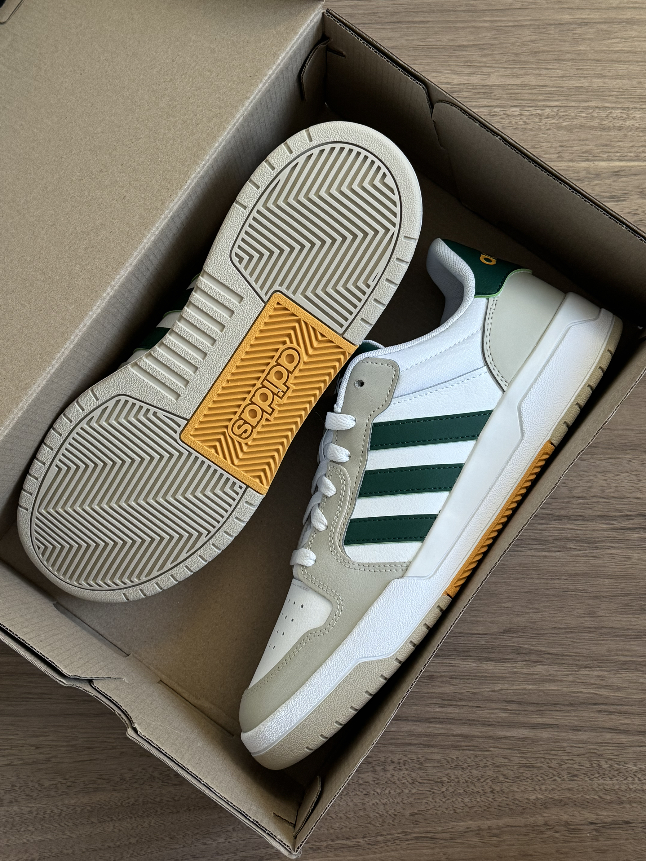 阿迪真的很会设计~ 这双板鞋真的简单又好看👀 配色也很有少年感✨ 穿着很轻便,暴走也无压力! 细节感设计都很好,很喜欢💕