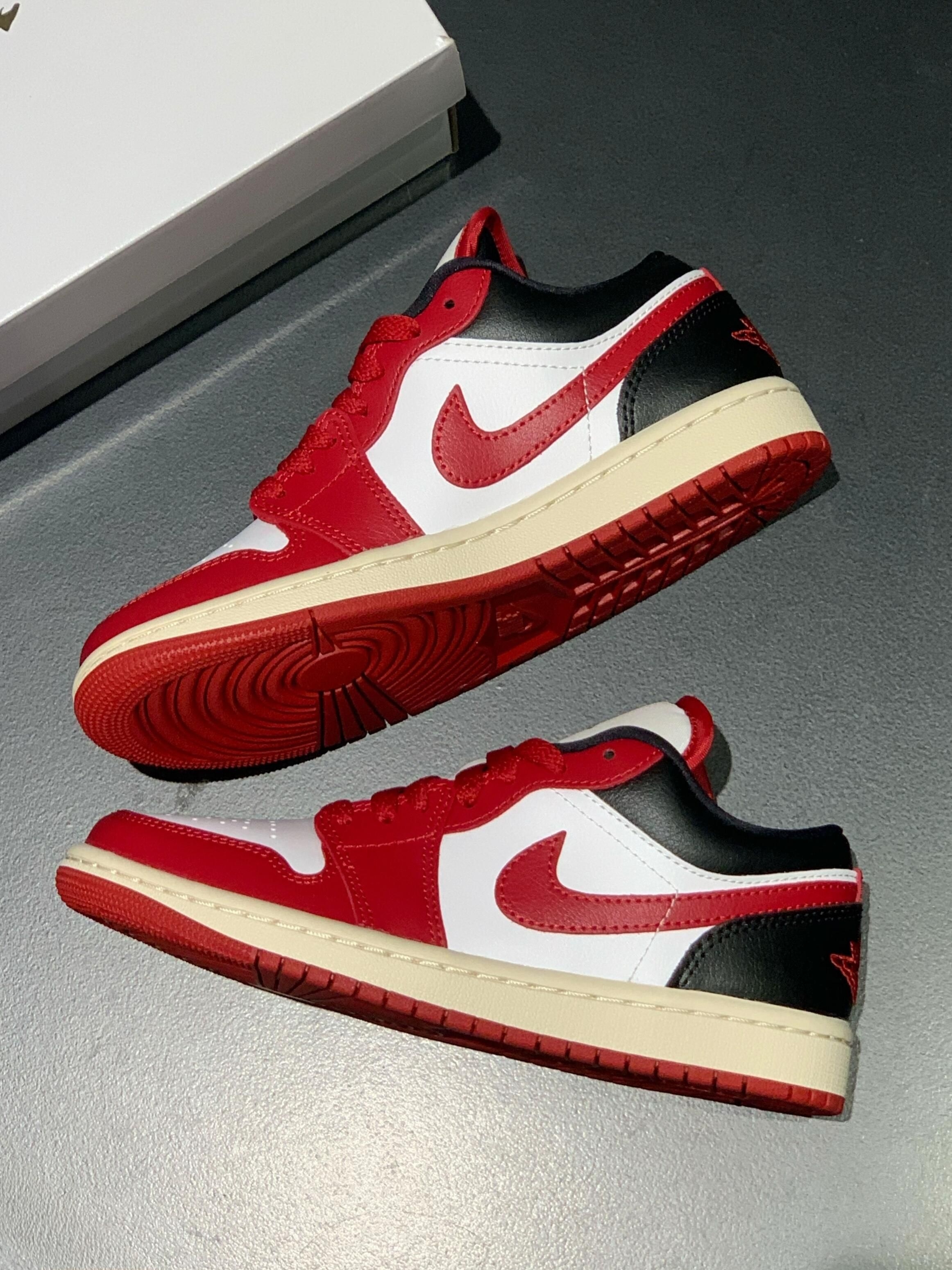 ✅ 核心亮点 1️⃣经典红白黑,气场点睛 纯净白色鞋面清爽利落,后跟黑色拼接视觉收缩显脚踝纤细。最亮眼的是正红色Swoosh,提亮整体又不挑肤色,是整双鞋的灵魂所在。 2️⃣ 秀气鞋型,优化比例 AJ1 Low的经典廓形被优化得格外秀气修长,上脚后能明显修饰脚型,显脚小巧。低帮设计毫无束缚感,完美展露纤细脚踝。 3️⃣ 风格公式,一键切换 其经典的配色赋予了它极强的风格塑造力: · 美式复古...