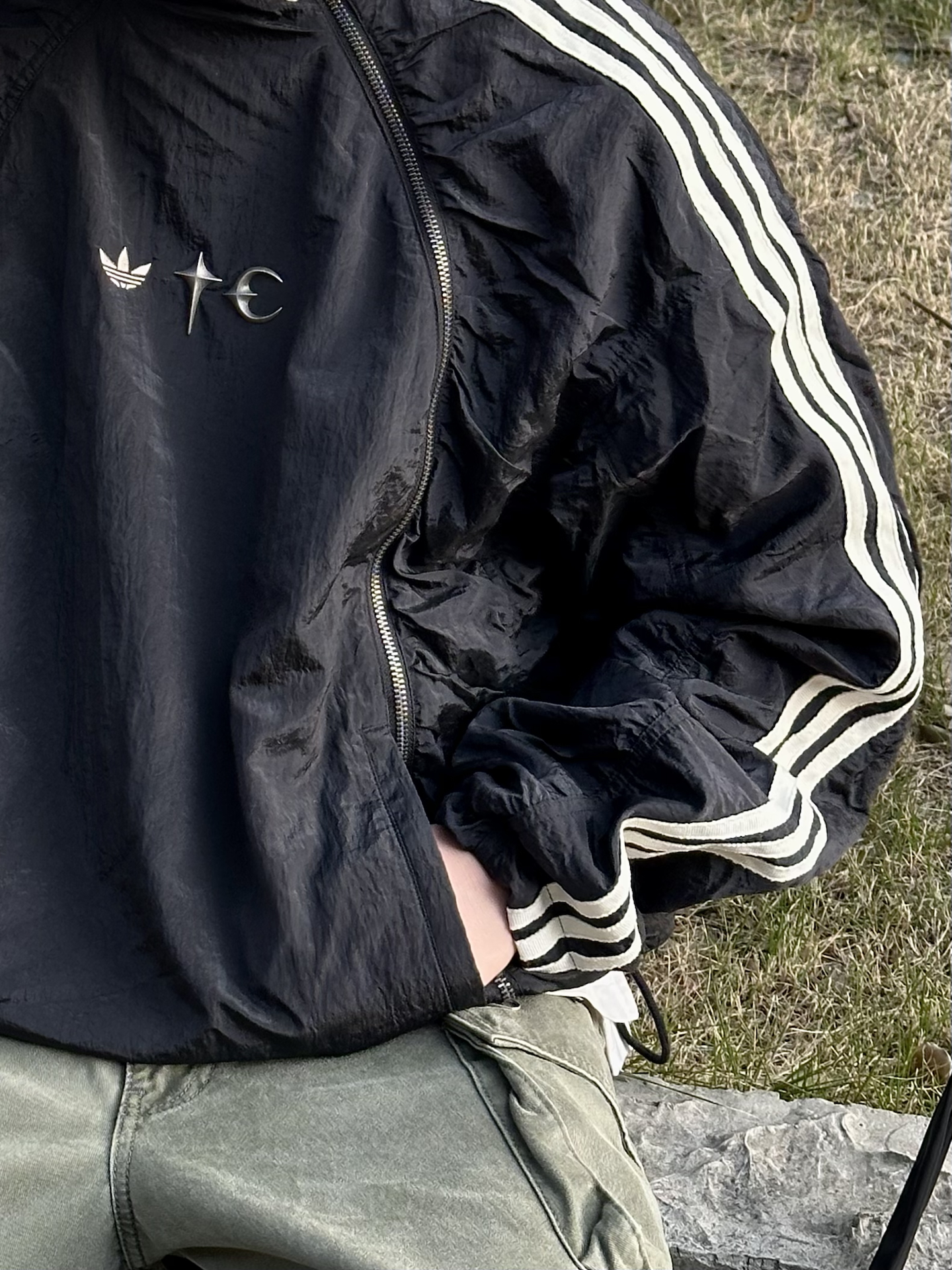 哈喽👋🏻大家好哇 这里是🪨石地夫的穿搭小日记📝 - 我的衣橱里有好多件三条杠🤫 但今年这件thug x adidas联名直接晋升NO.1☝🏻 短款版型,斜拉链开襟,LOGO的巧妙排列,金属感褶皱面料💡 每一处细节和设计都在逼我掏腰包💰 搭配方面也是闭眼穿就完了👏🏻 属实成为了我的心头好🎯 #年度衣橱老友记 #冬季穿搭帅出型 #今天出门穿什么 #一件摆脱路人感 #这套穿搭不吃建模