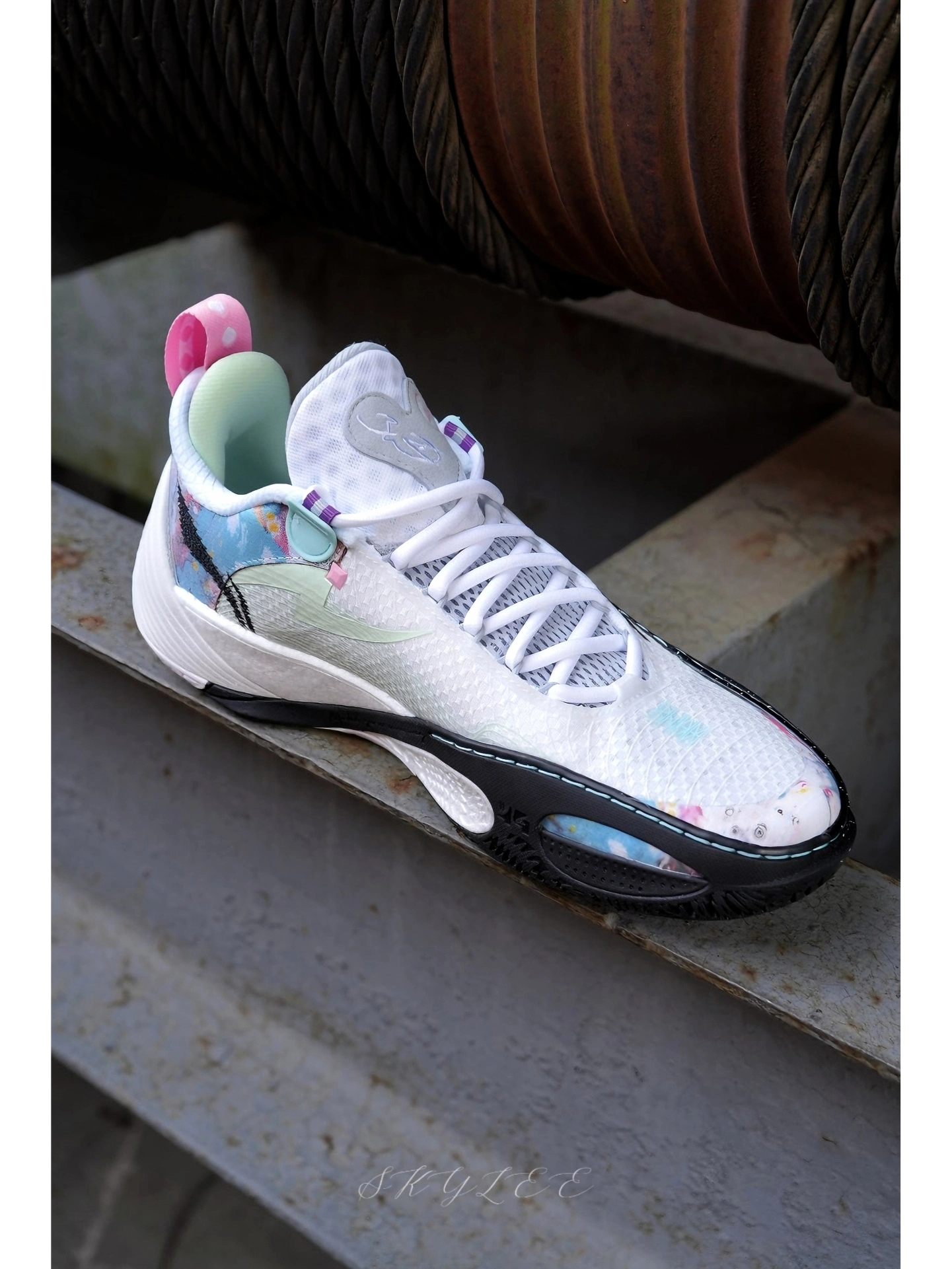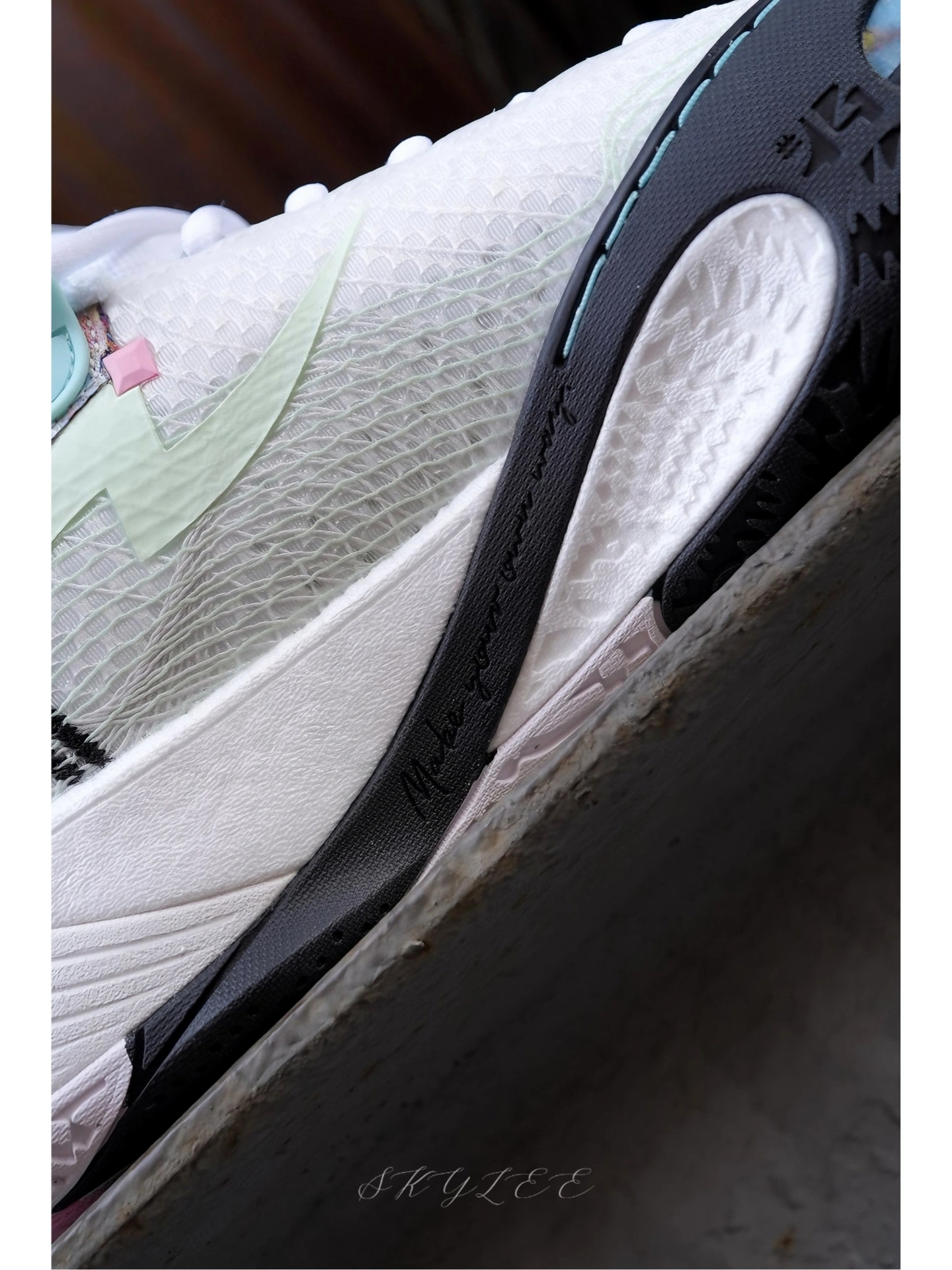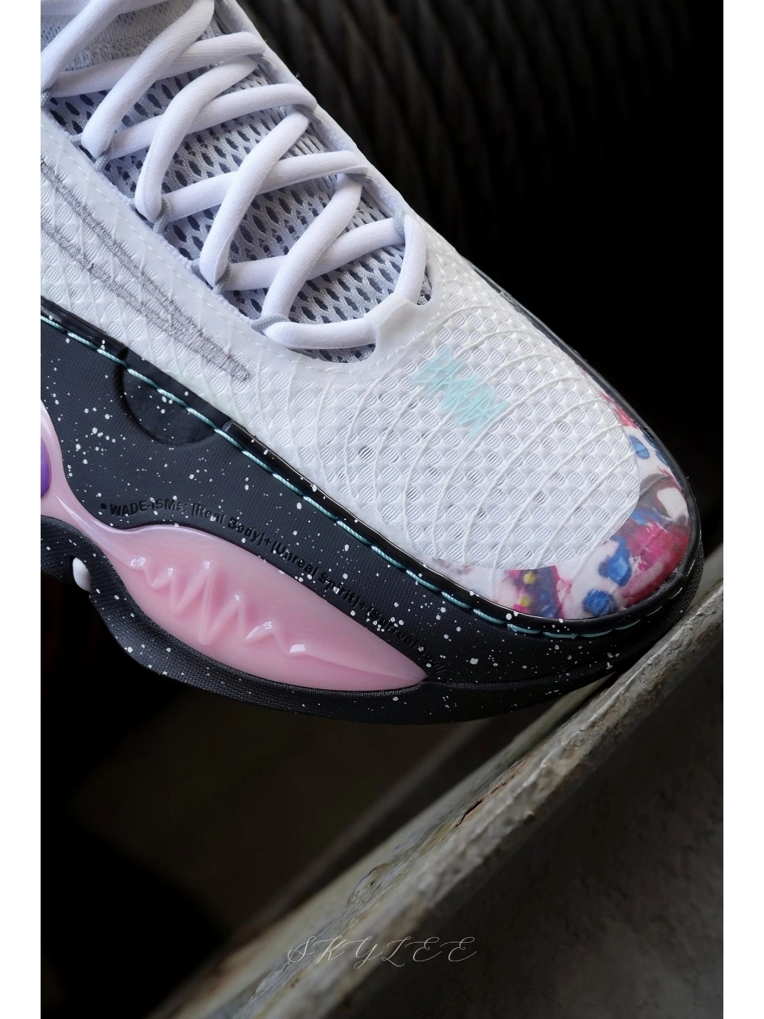 前段时间克里斯蒂上脚了韦德系列最新的全城14,今天带来的配色叫做超现实,整体以白粉黑三种颜色组成,个人感觉细节设计更丰富! 🔹最值得关注的就是这一次的中底组合,不光是使用了䨻+超䨻的组合,脚感软弹感明显,整个抗扭支撑条也是贯穿了内外两侧,相信稳定性会更优💪 🔹内侧外底也做了上翻设计,更适合后卫做变相的动作,码数试穿时感觉很正,实战体验兄弟们等我这个月打完球和大家细聊✌ #新鞋零时差 #韦德...