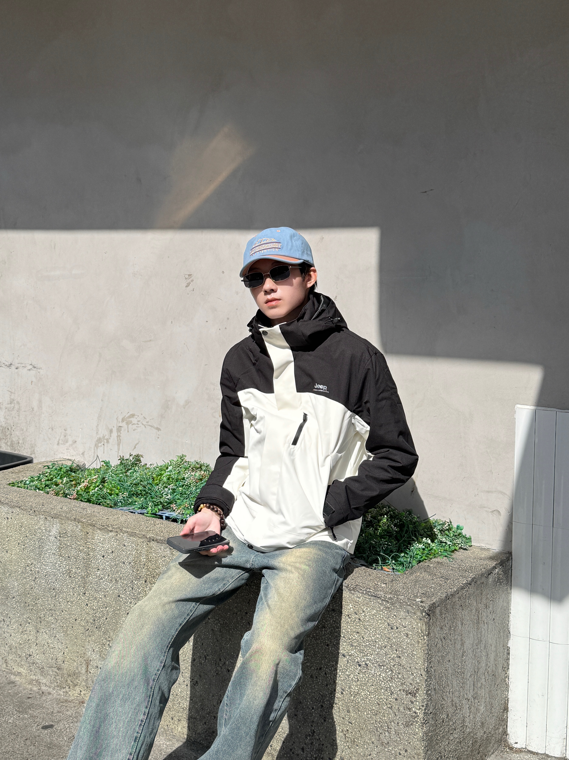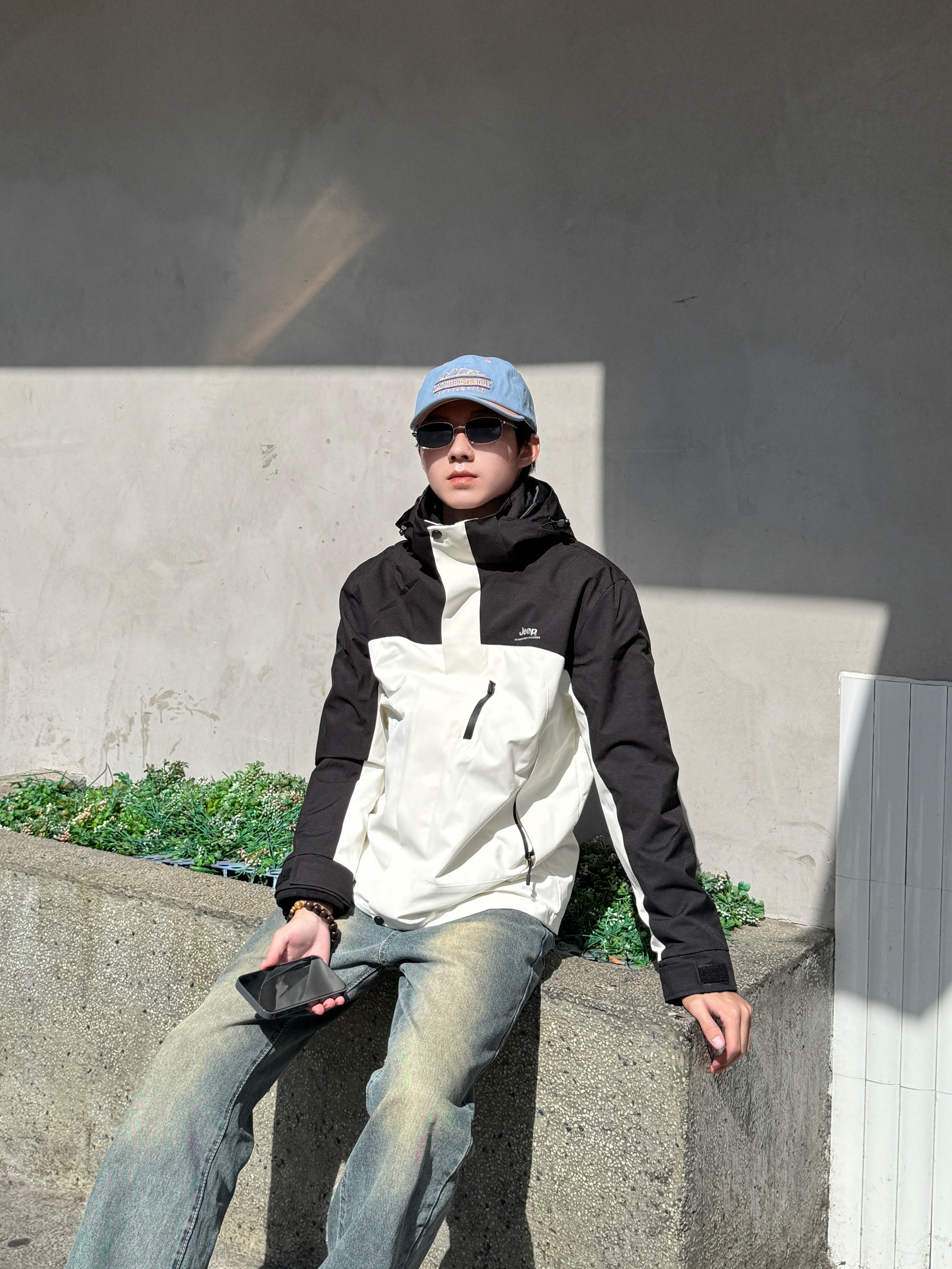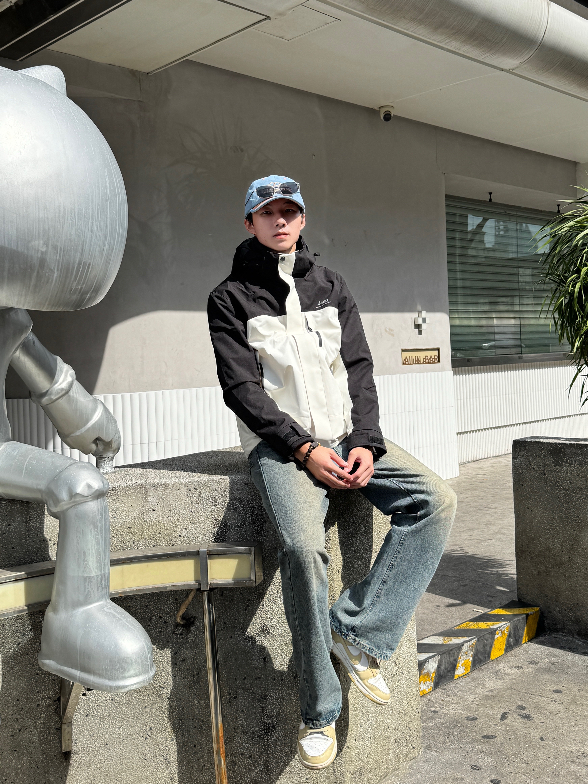 这身太清爽了 白色拼色冲锋夹克自带户外感 搭配经典蓝牛仔~ 简约又利落 穿出阳光少年气息✨