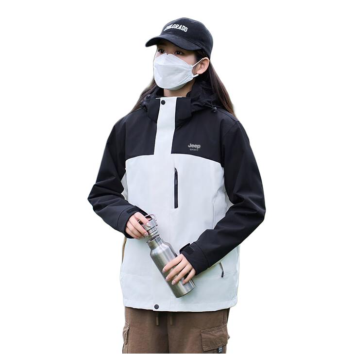 本篇笔记关联了Jeep/吉普 机能风防泼水防风拼接可拆卸抓绒内胆单层三合一升级款加厚连帽软壳冲锋衣 P743MWJ882 浅灰、JEEP SPIRIT 三合一可拆卸内胆连帽冲锋衣 米白/女款等商品,为用户提供真实的使用体验和购买参考。