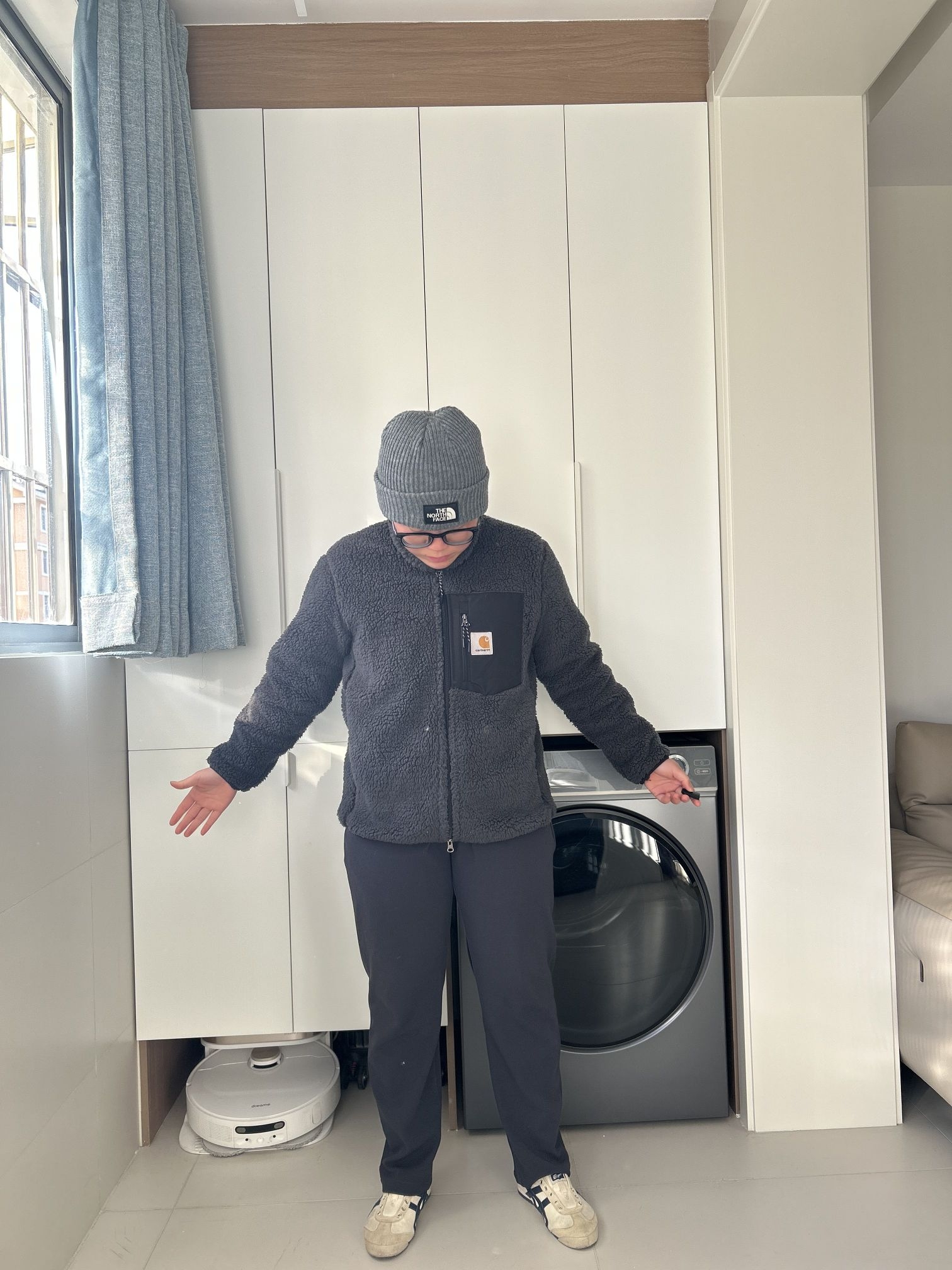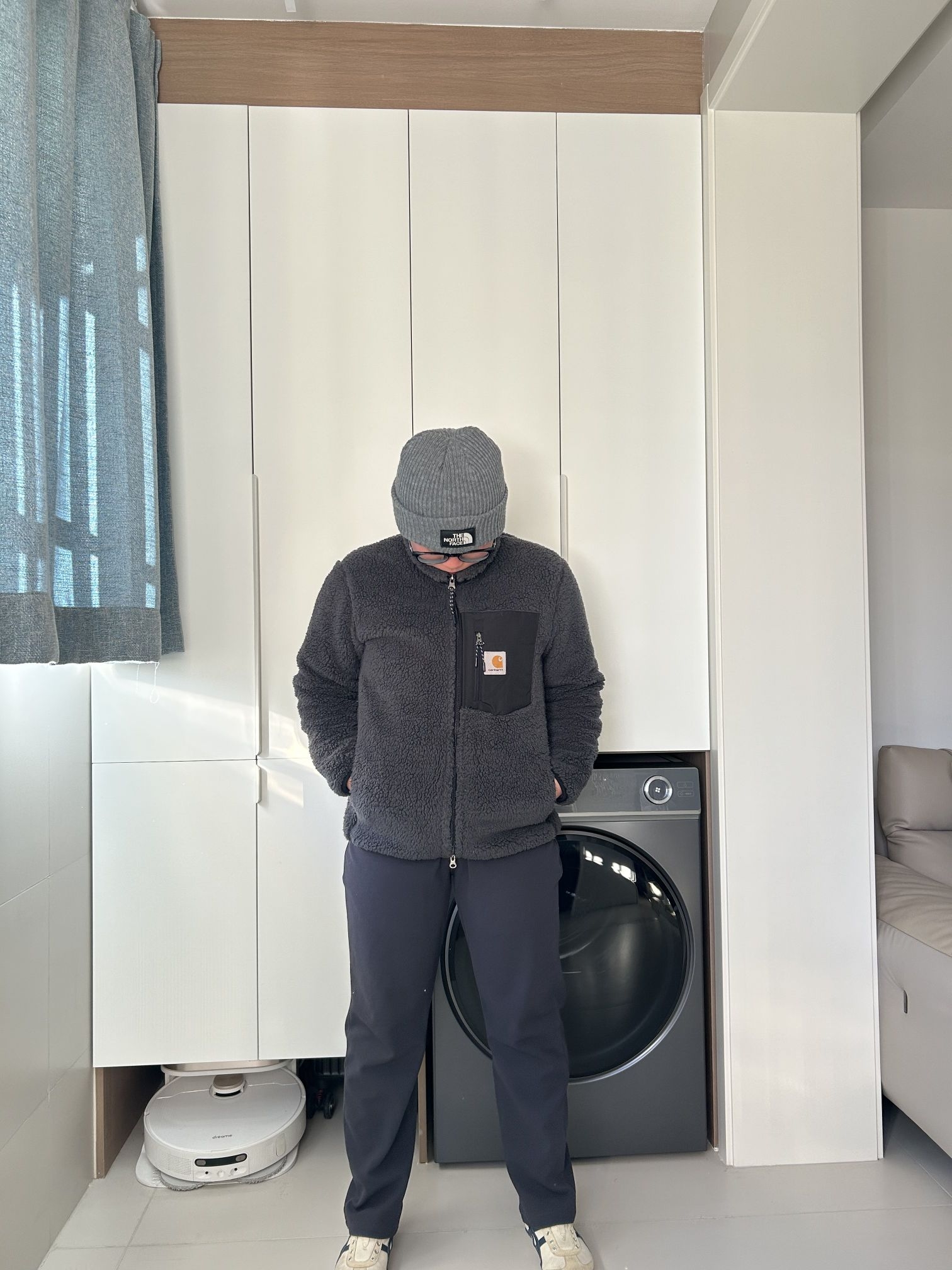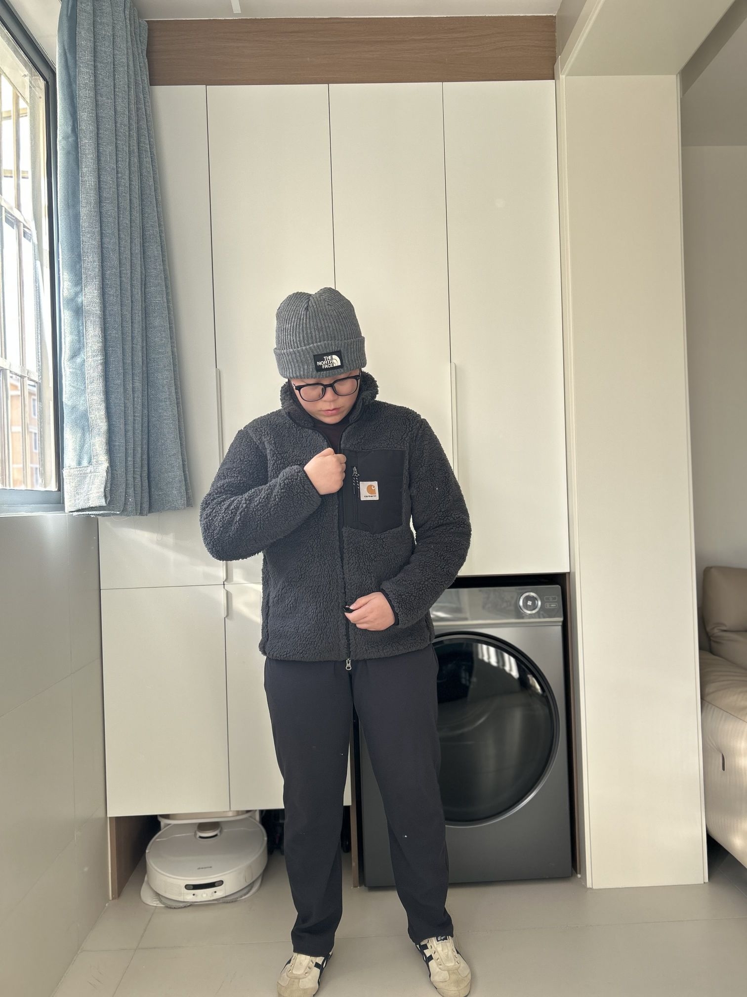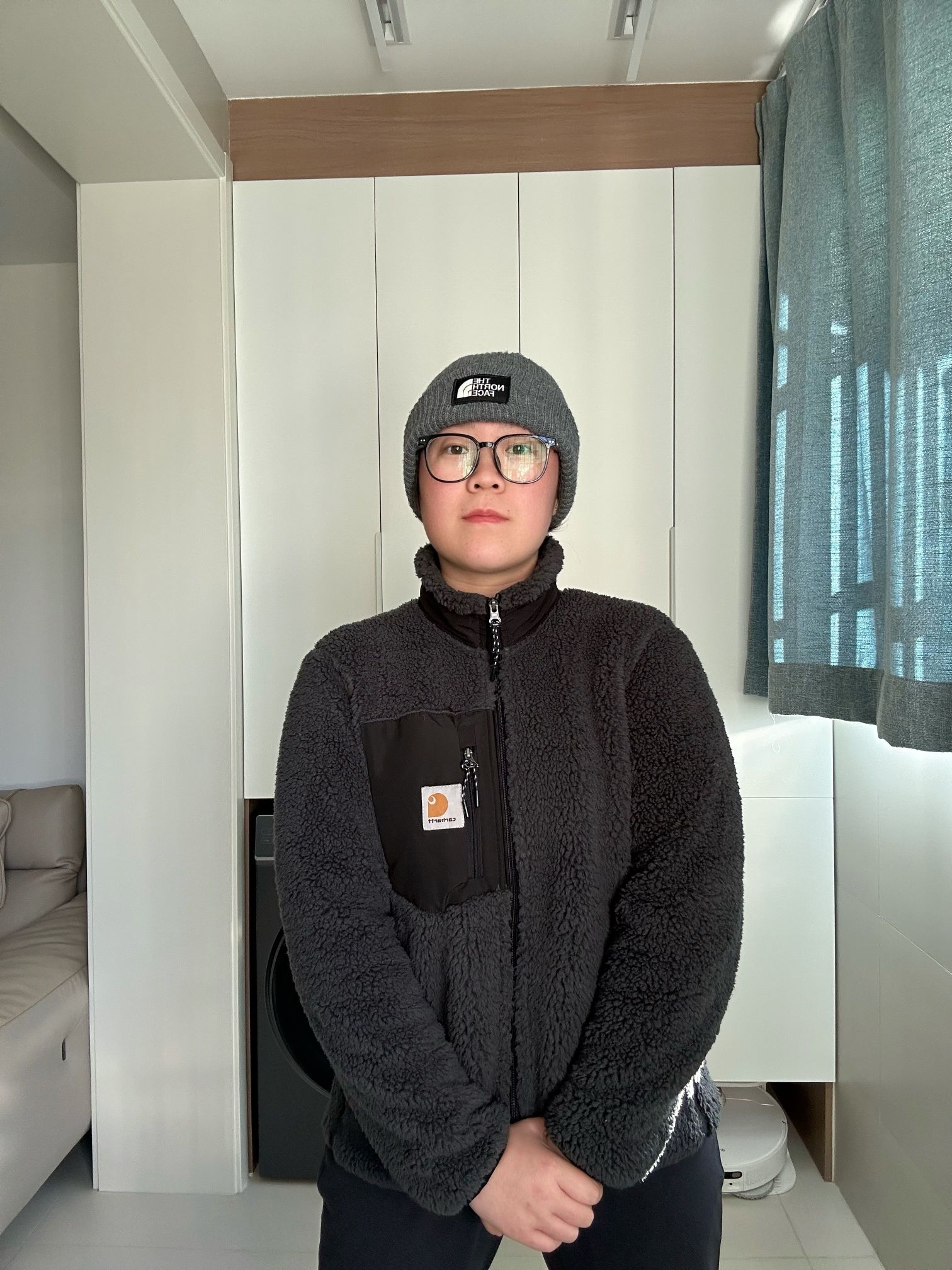 哈喽!贝贝们! 这里是刘根不会穿搭的频道! 天气越来越冷了!给自己新添了件衣服! 就是卡哈特的这件羊羔绒! 特别柔软舒服,保暖性也很不错!现在刚入冬穿刚刚好! 它的版型也很不错,既不束缚,也不显臃肿,很适合微胖的同学! 而且它的内衬是滑滑的面料,不沾毛! 我身高160 体重120 穿m码 衣长刚好遮住屁屁✌ 快来分享分享分享你入冬的第一件衣服吧!