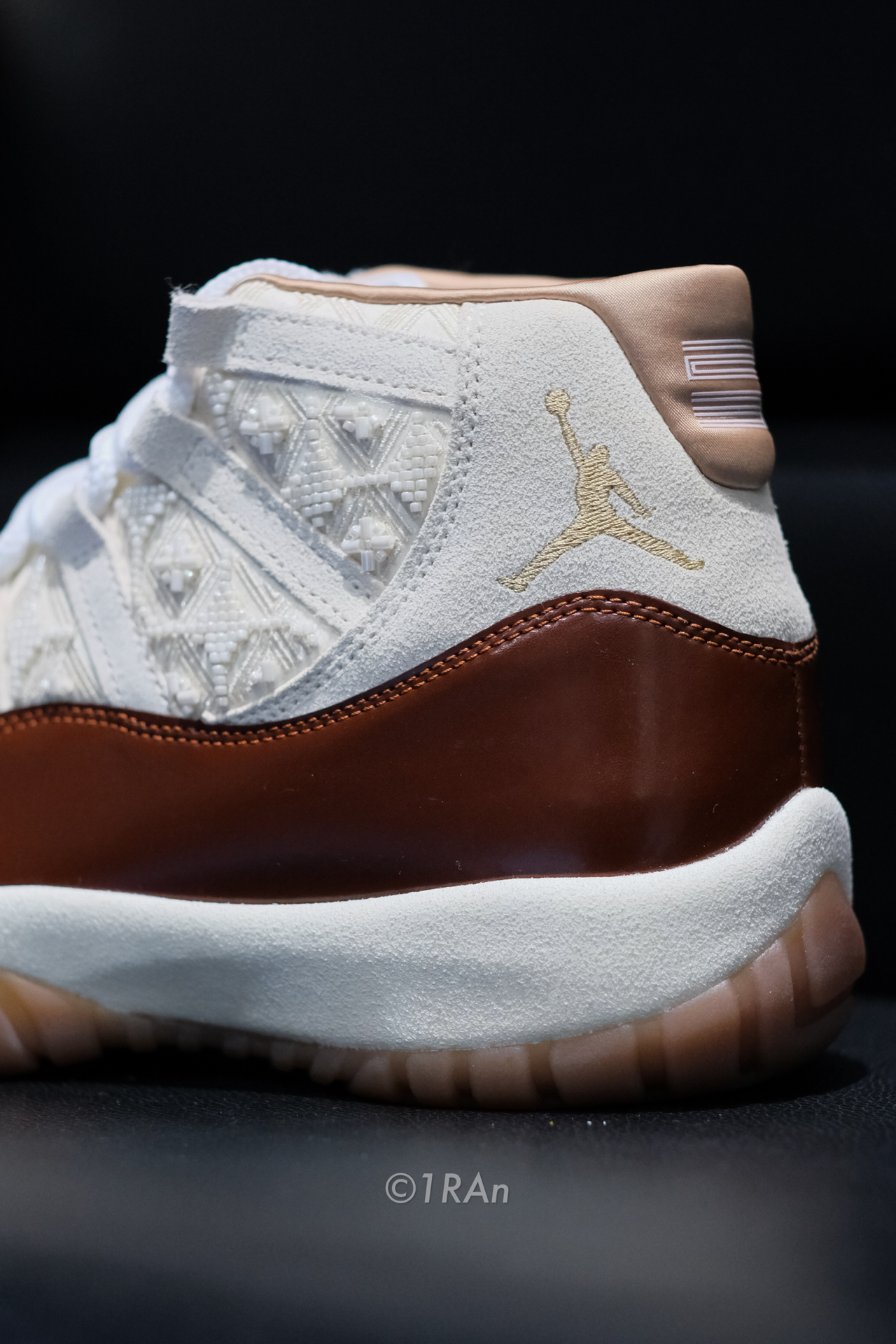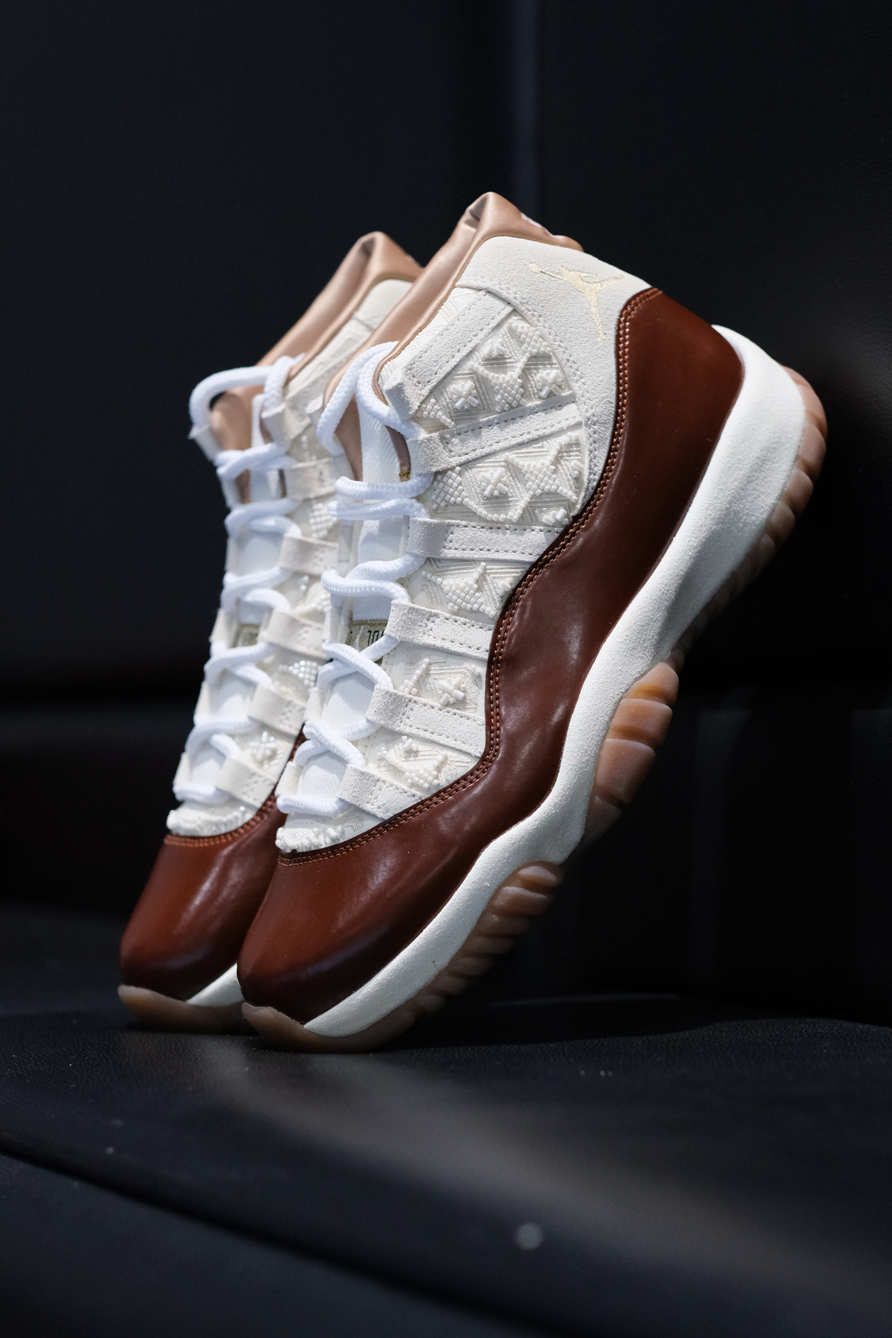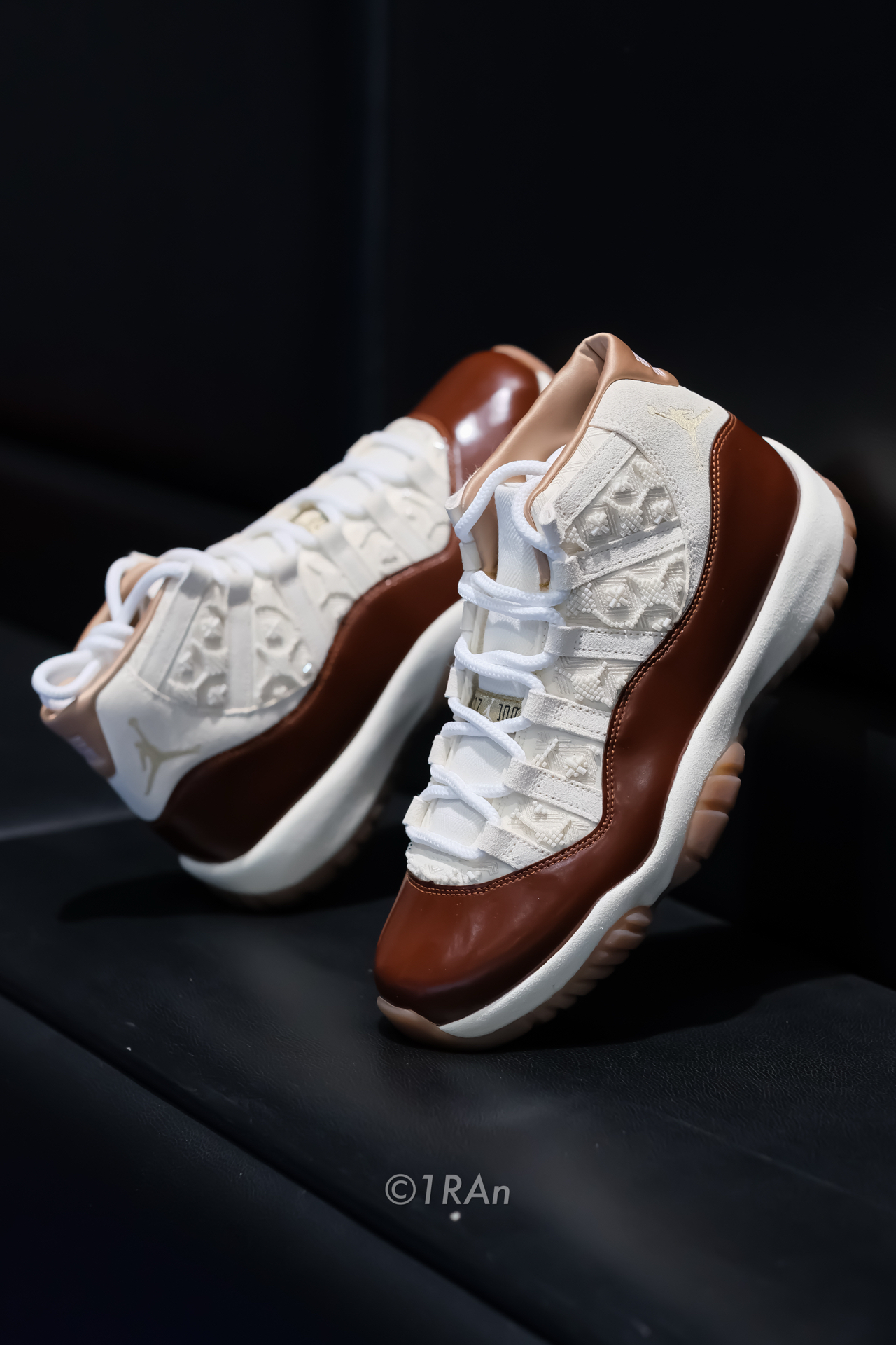 继AJ 11 gamma blue之后又一双AJ11,米红这个配色还蛮复古的,棕红色加上生胶底,层次丰富。 鞋面是大漆皮搭配麂皮,白色部分加入了串珠的中国结,还蛮有意思的,穿久了还是会要掉的,感觉跟冠希哥的阿迪设计撞上了。 内衬是缎面的,很光滑,总体质感蛮不错的,当然发售价好像也要高许多。那么问题来了,选gamma还是这双呢? #新鞋零时差 #马上换新鞋