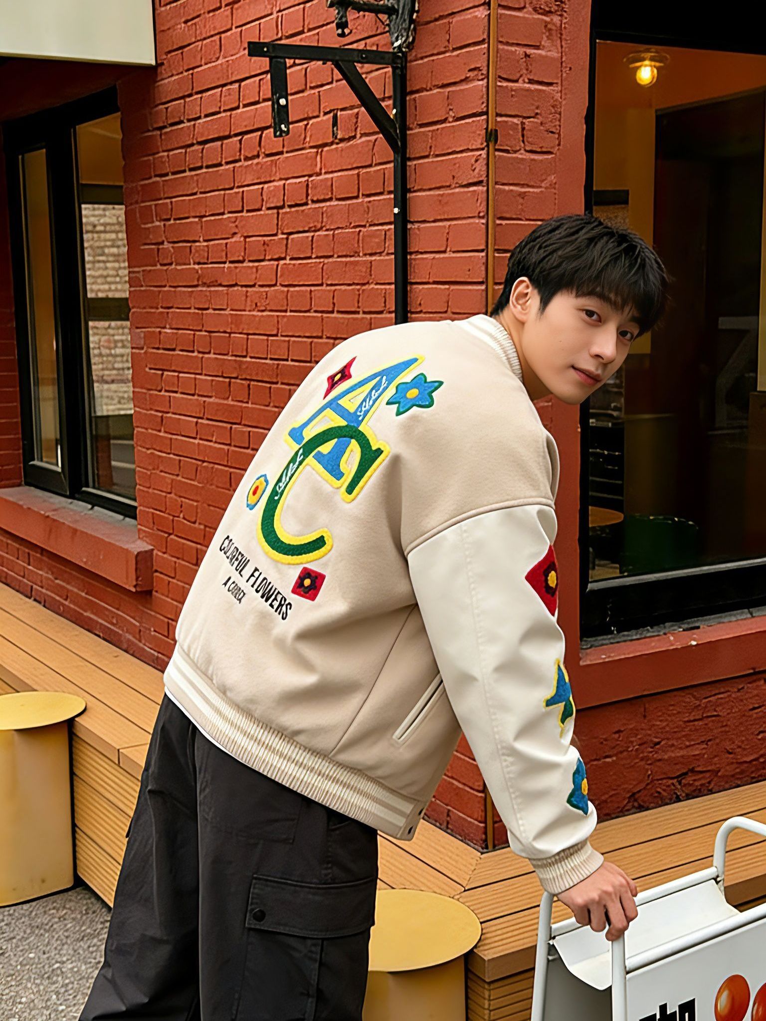 今天在咖啡店门口拍穿搭,这外套往身上一套,朋友说我突然有了“随便站着都好看”的松弛感。 之前怕这种彩色毛巾绣显幼稚,结果上身是那种复古的潮,单排扣拉上显瘦,敞开穿也不垮,配工装裤出门,路人都问链接