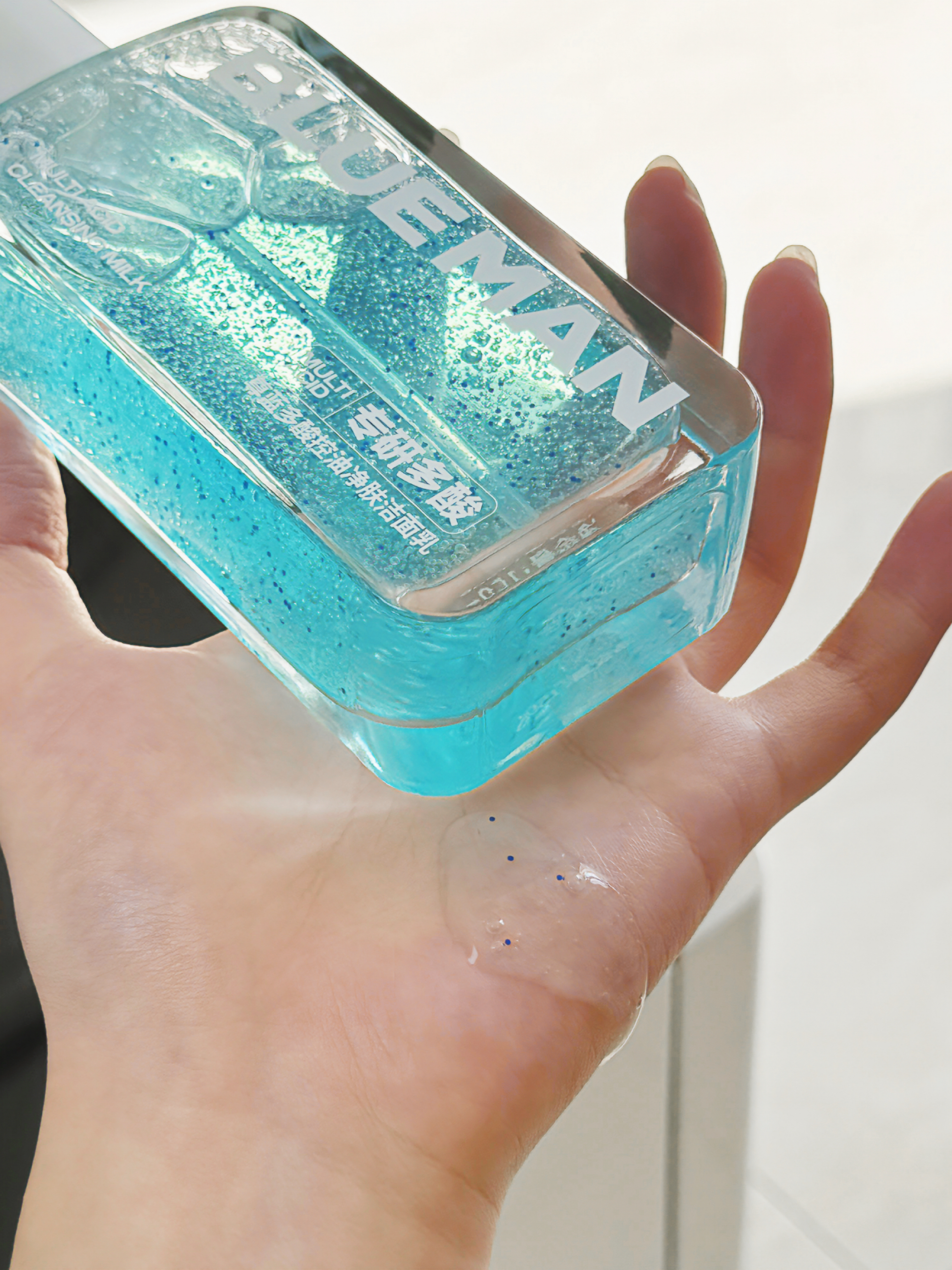 谁懂啊?!洗了几十年的脸,没想到被尊蓝给教训了 就是这瓶尊蓝多酸控油洁面乳 本油敏肌用过之后才知道什么才叫适合自己的洁面 它挤出来是这种透明啫喱质地 里面的小蓝珠是多酸小分子 每次用时挤一点在手中,加水揉搓轻松打出绵密泡沫🫧 清洁力够劲却够温和!! 只吸走脸上多余的油光,不扒皮肤本身的好油脂 而且像我这种“记性不好”的 洗完脸可能过个半小时才记得去护肤 用完它后就不用担心皮肤会紧绷,小脸蛋子依旧水...