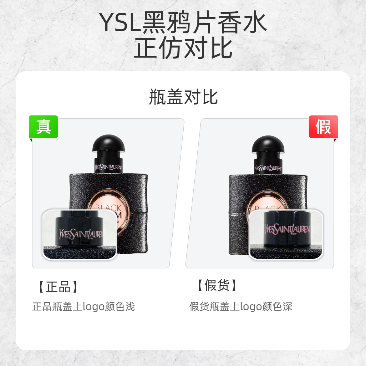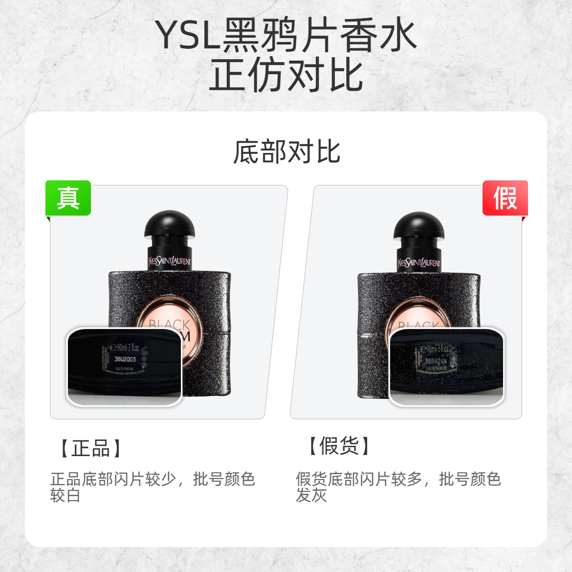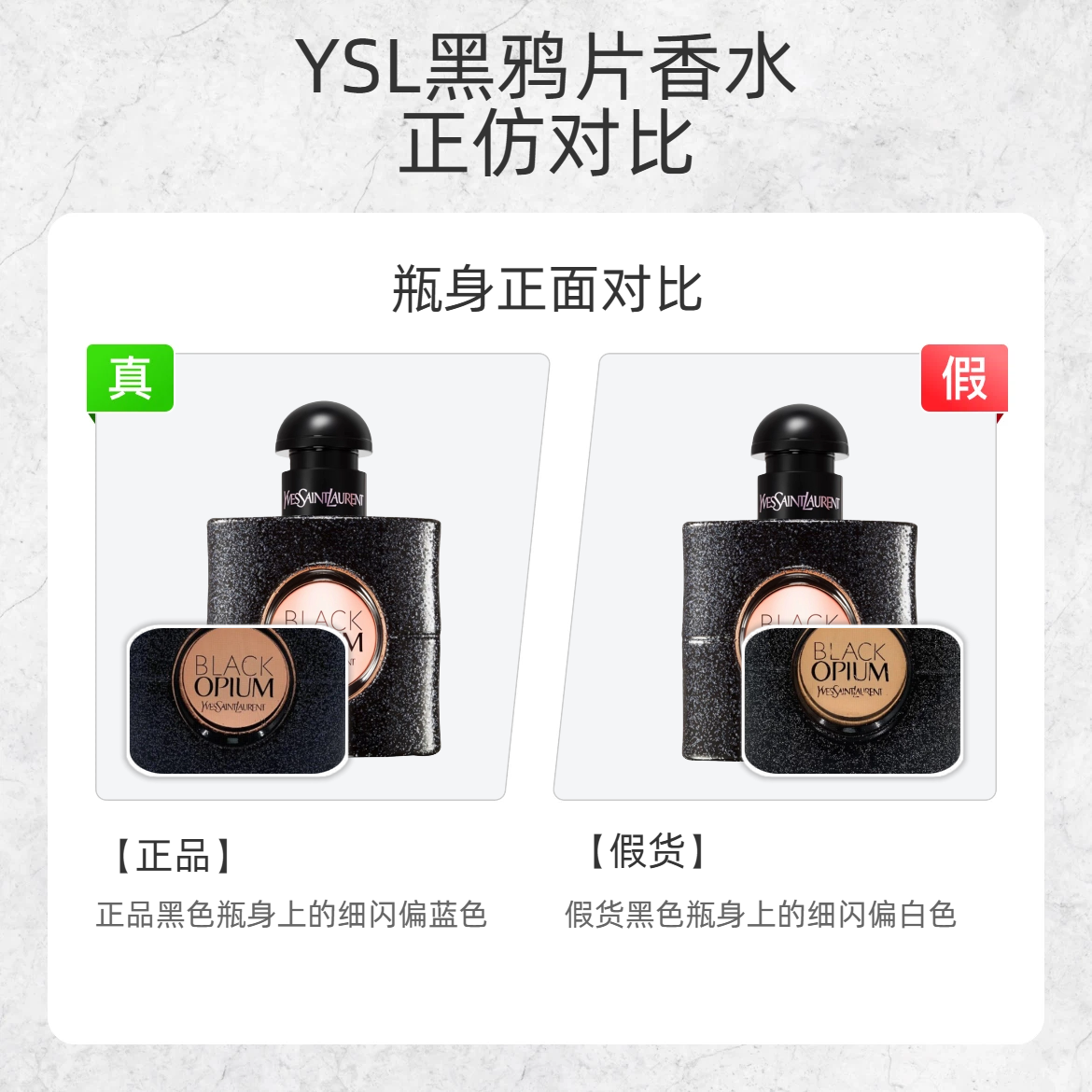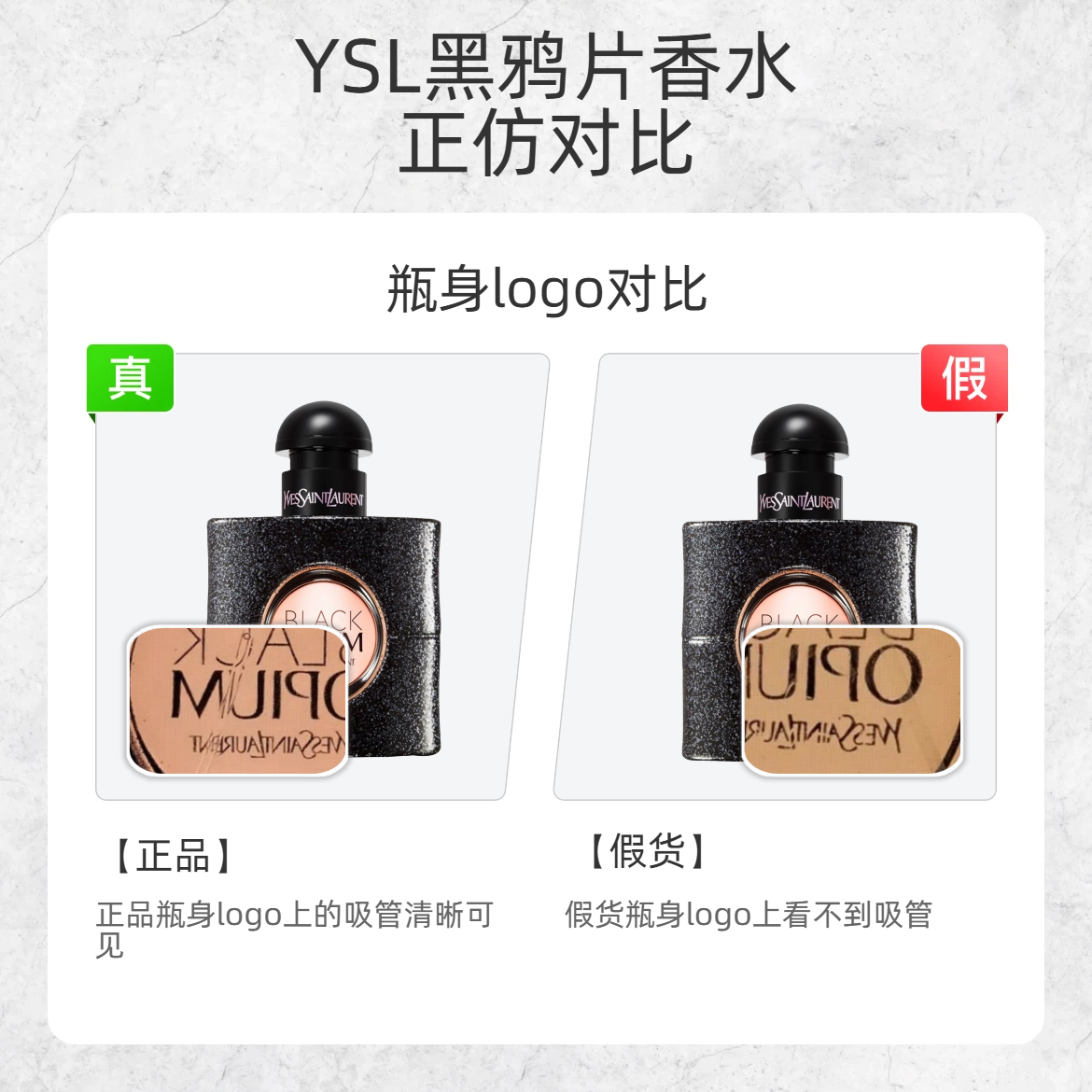 自带 “危险又迷人” buff 的黑鸦片香水,假货真的太会蹭热度!这波细节对比,帮你精准避坑👇 1️⃣ 瓶身细闪 ✅正品:黑色瓶身细闪偏冷调蓝色,灯光下高级透亮 ❌假货:细闪是廉价白色,质感像撒了面粉 2️⃣ logo 吸管 ✅正品:瓶身 logo 区域能清晰看到吸管,细节精致 ❌假货:logo 处完全看不到吸管,印刷模糊 3️⃣ 瓶盖 logo ✅正品:瓶盖上的 “YVES SAINT L...