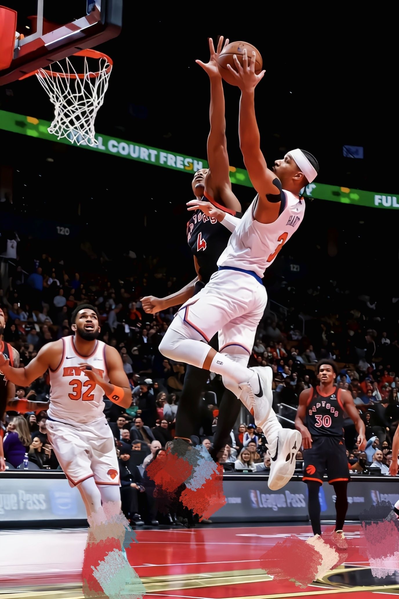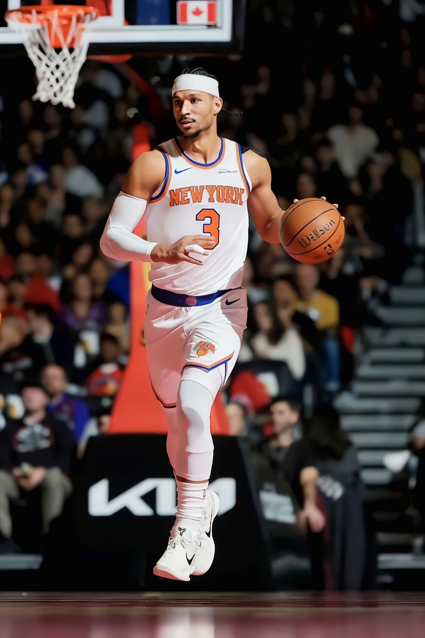 NBA杯八分之一决赛尼克斯117-101胜猛龙,哈特36分钟21分6板4助2断,作用关键,他脚上的Kobe 6 Protro“All-Star 2.0”也很吸睛。 从赛场看:鞋面蛇鳞+星星纹拼接,Flywire飞线让突破时支撑足、不形变;前掌Zoom Turbo气垫助力急停跳投,反馈直接。轻量化鞋身不拖快攻节奏,但横向移动时防侧翻需依赖脚踝;室内抓地稳,灰多需擦底。窄鞋楦适配瘦脚,36分钟无调...