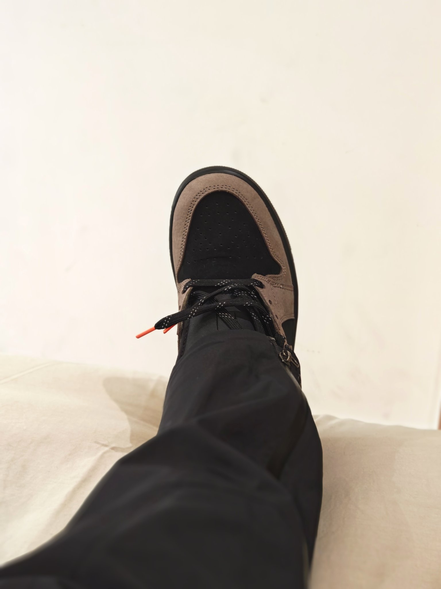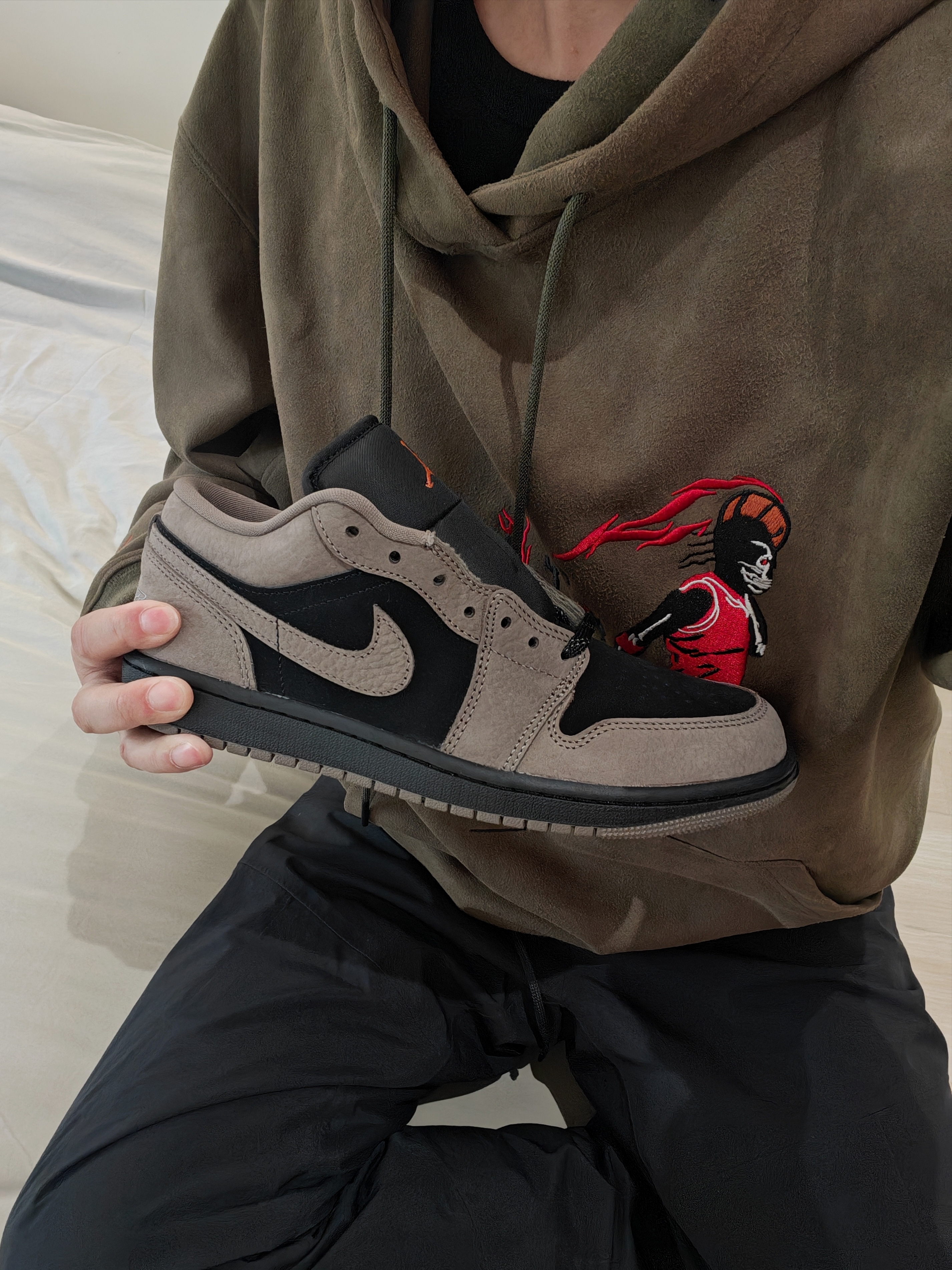 今天试穿了一下这双新的“倒钩平替”,说点真实感受。如果单纯摆着看,这鞋子好像没啥感觉,就是个普通的Aj1低帮板鞋,只不过颜色蹭了点“倒钩”的流量罢了,但是上脚后气质就变了,TS的味道才出来!说明穿着鞋子得搭对裤子,尽量选阔腿裤或者深色牛仔裤,避免穿束腿裤和浅色裤子!个人意见供参考,尺码正常选择即可! #复古球鞋收藏家 #aj1倒钩平替