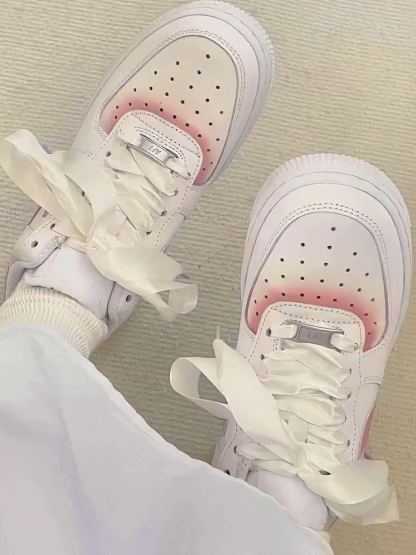 这鞋像把融化的粉软糖裹在云朵里——渐变粉晕得很柔,缎带鞋带像糖纸系带。搭浅灰针织裙+同色系围巾,通勤赶地铁或周末逛市集都适配。厚底但不压脚,脚底板贴着鞋垫暖乎乎的。不过鞋带容易松,走两步得勾个紧结。你们平时穿这种鞋会配什么袜子?