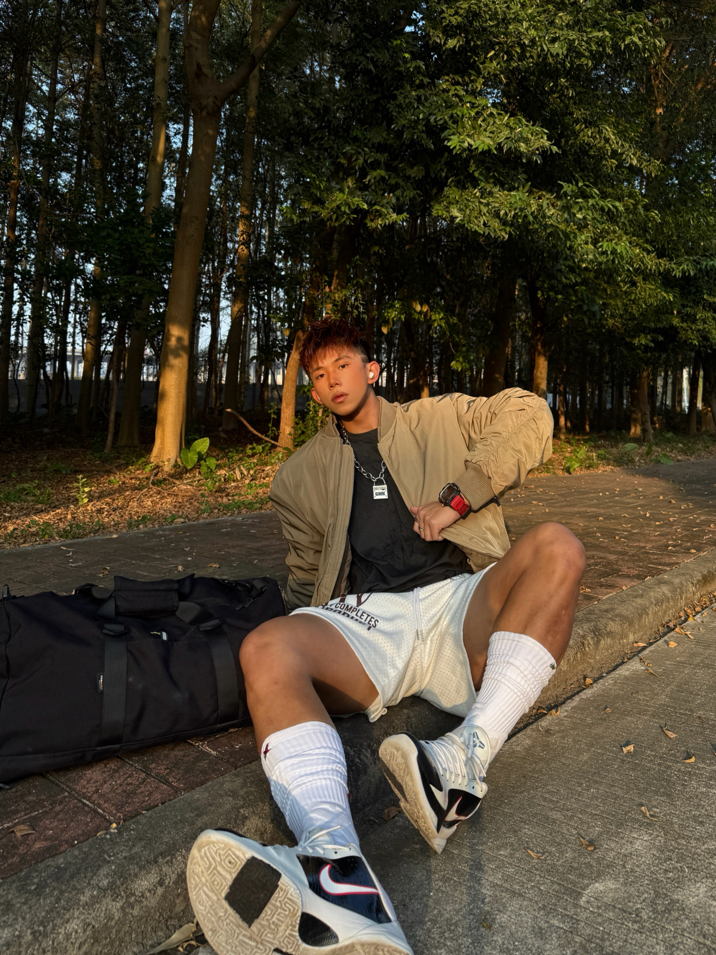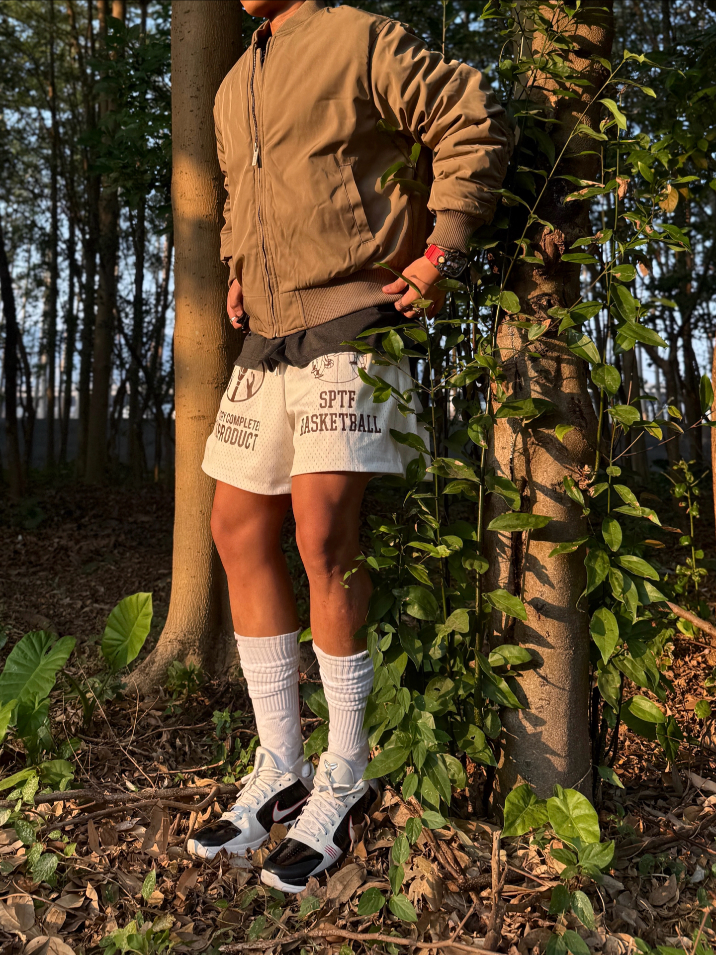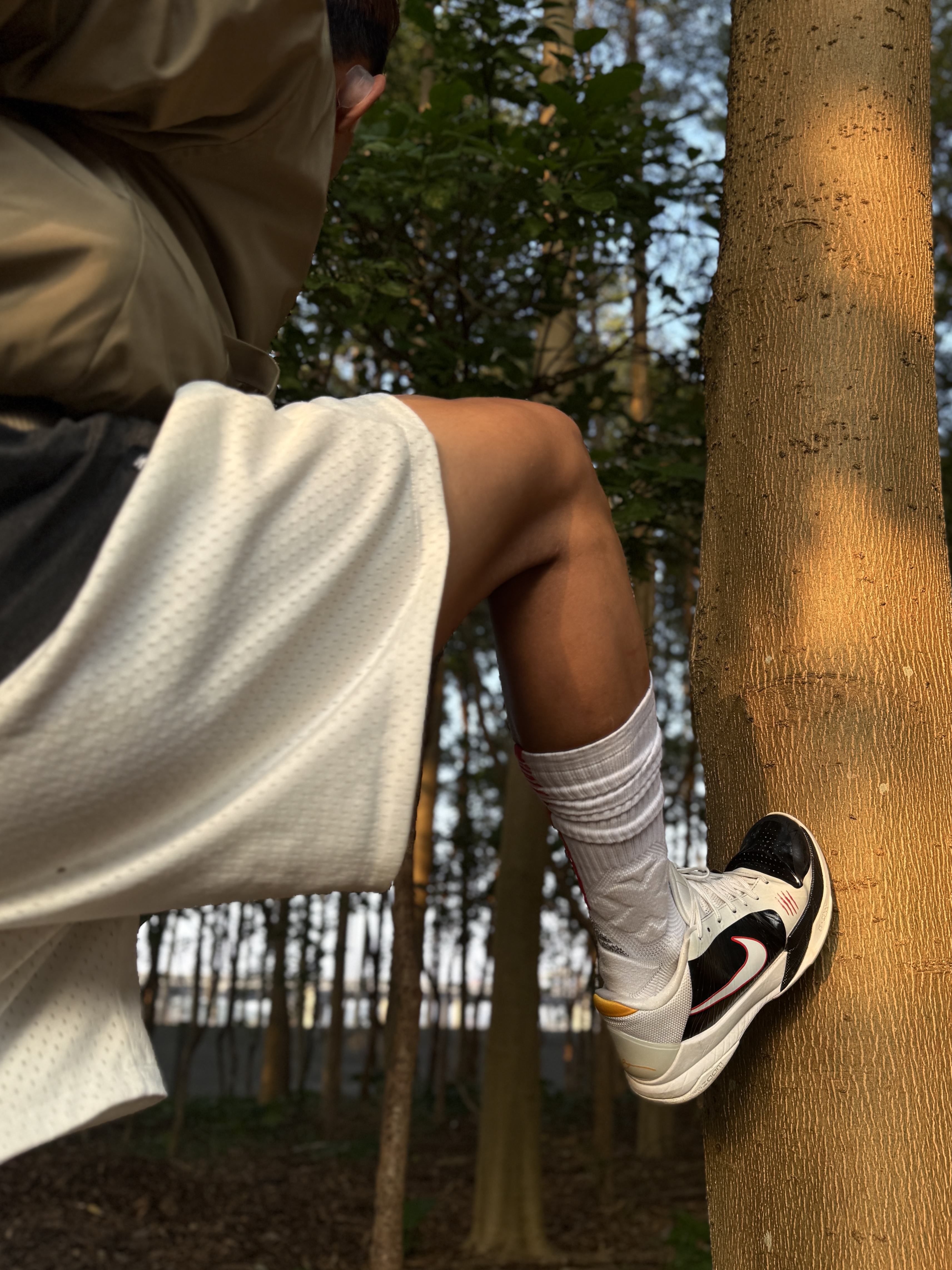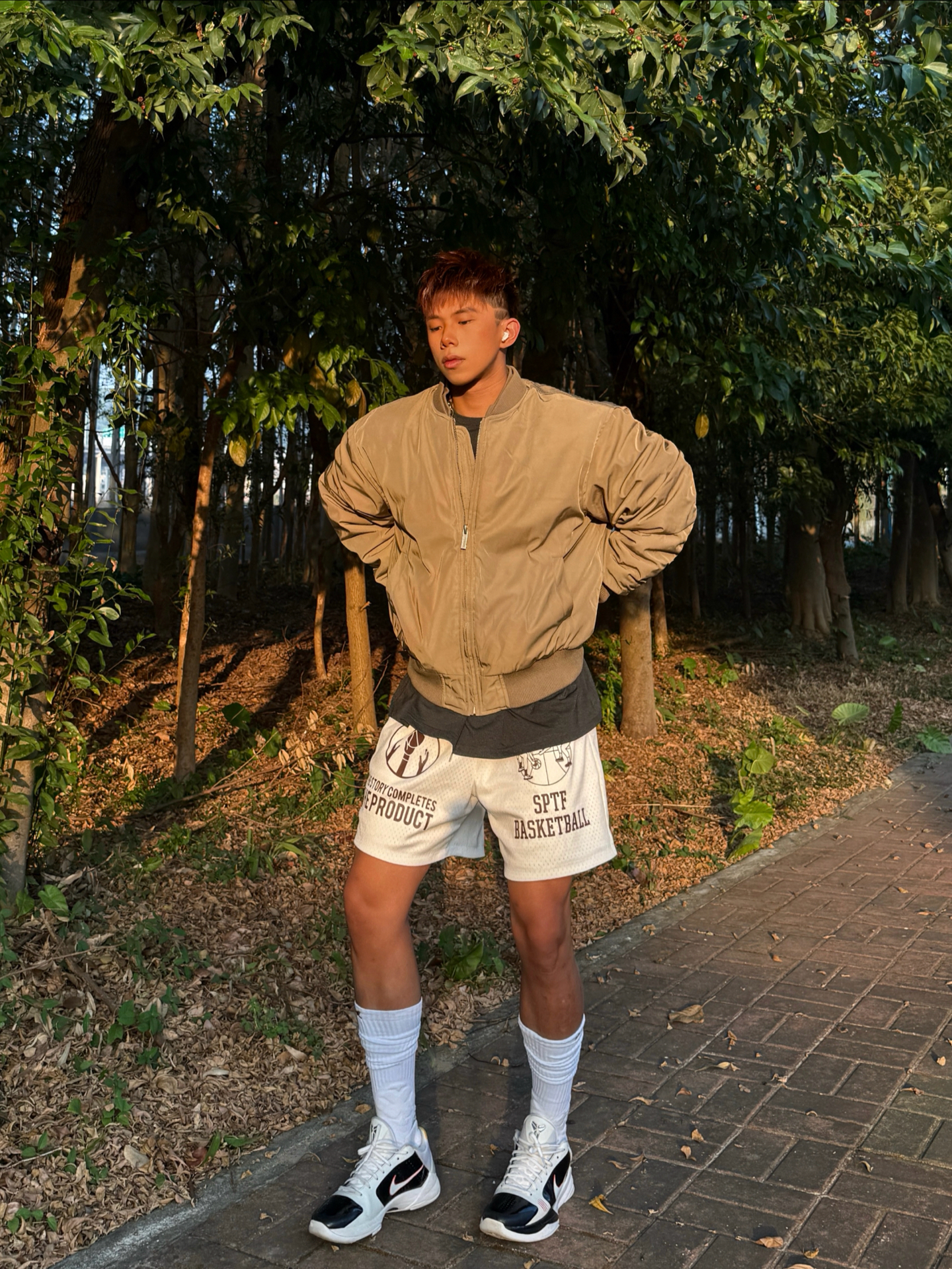 Hey bro‼️这里是小熊的穿搭日记 感受一下cityboy轻运动风的精准落地🎯 上身 #CHINISM 卡其色棒球夹克➕白色短裤的组合,大地色系+黑白的组合十分低饱和度,不挑肤色十分适合户外/街头场景 上脚kobe5黑白李小龙👟鞋侧红色刮痕装饰+后跟黄色点缀,还原李小龙经典元素,加上鞋舌kobe标识,很喜欢这双浓厚的球鞋文化氛围🏀 再搭配超长筒白袜,轻运动松弛感直接焊在身上💯 #一...