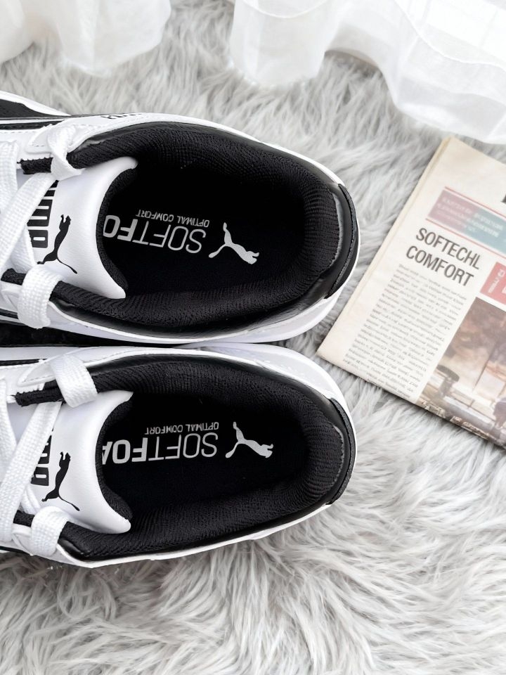 黑白配色+经典跑道标一出场,复古那味儿直接拉满!这双PUMA Rebound Joy简直是潮搭作弊器👇 鞋身是撞色皮质拼接,低帮设计穿脱巨方便,鞋侧流畅线条把复古休闲感焊得死死的~脚感更是惊喜:Softfoam缓震鞋垫踩上去软乎乎的,走路久了也不闷脚,触地那下的回弹直接把舒适感拉满! 配卫衣、搭工装裤都巨出片,黑白经典款怎么穿都不腻,200+的价格直接闭眼冲!不管是日常通勤还是周末出街,脚...