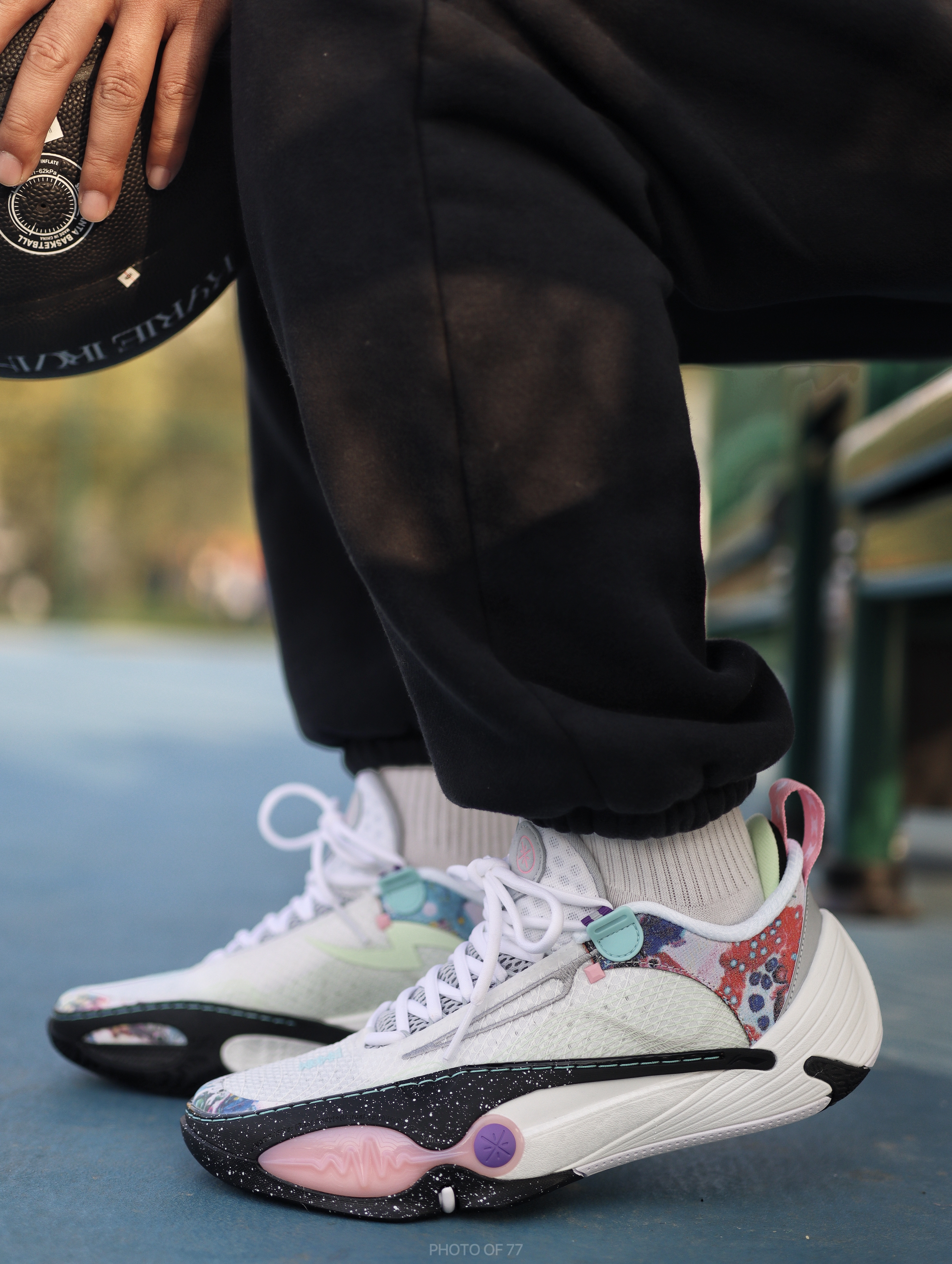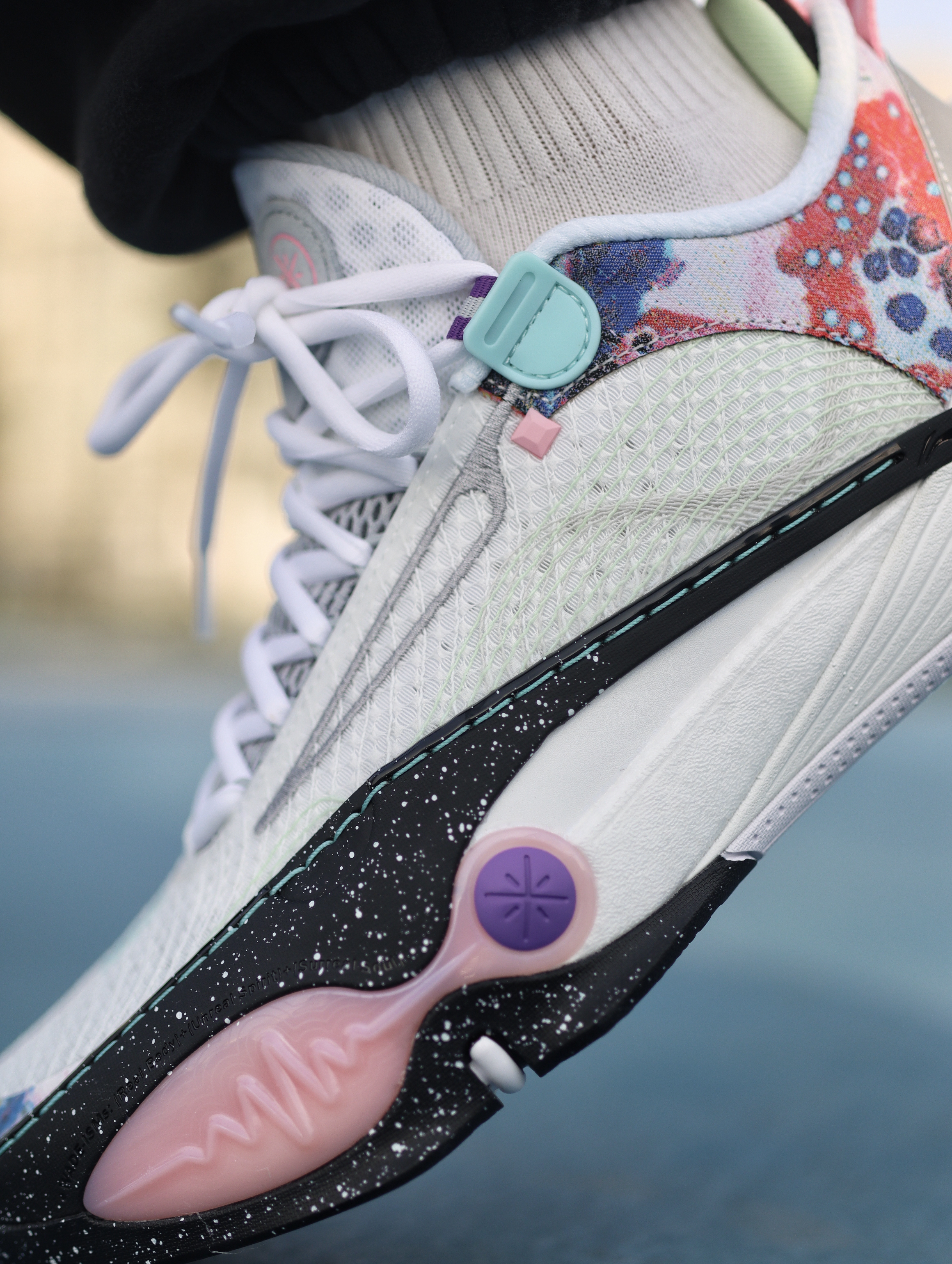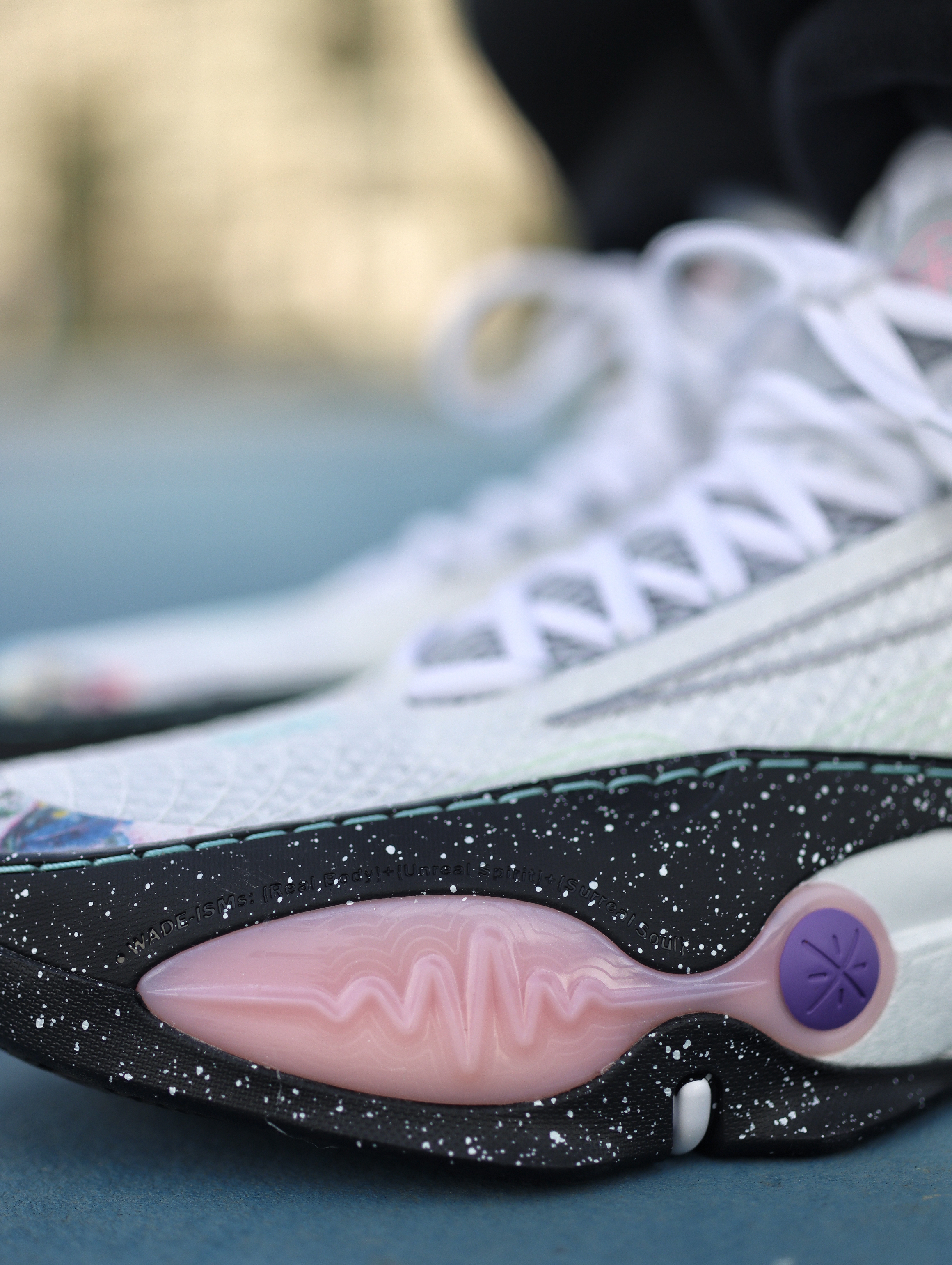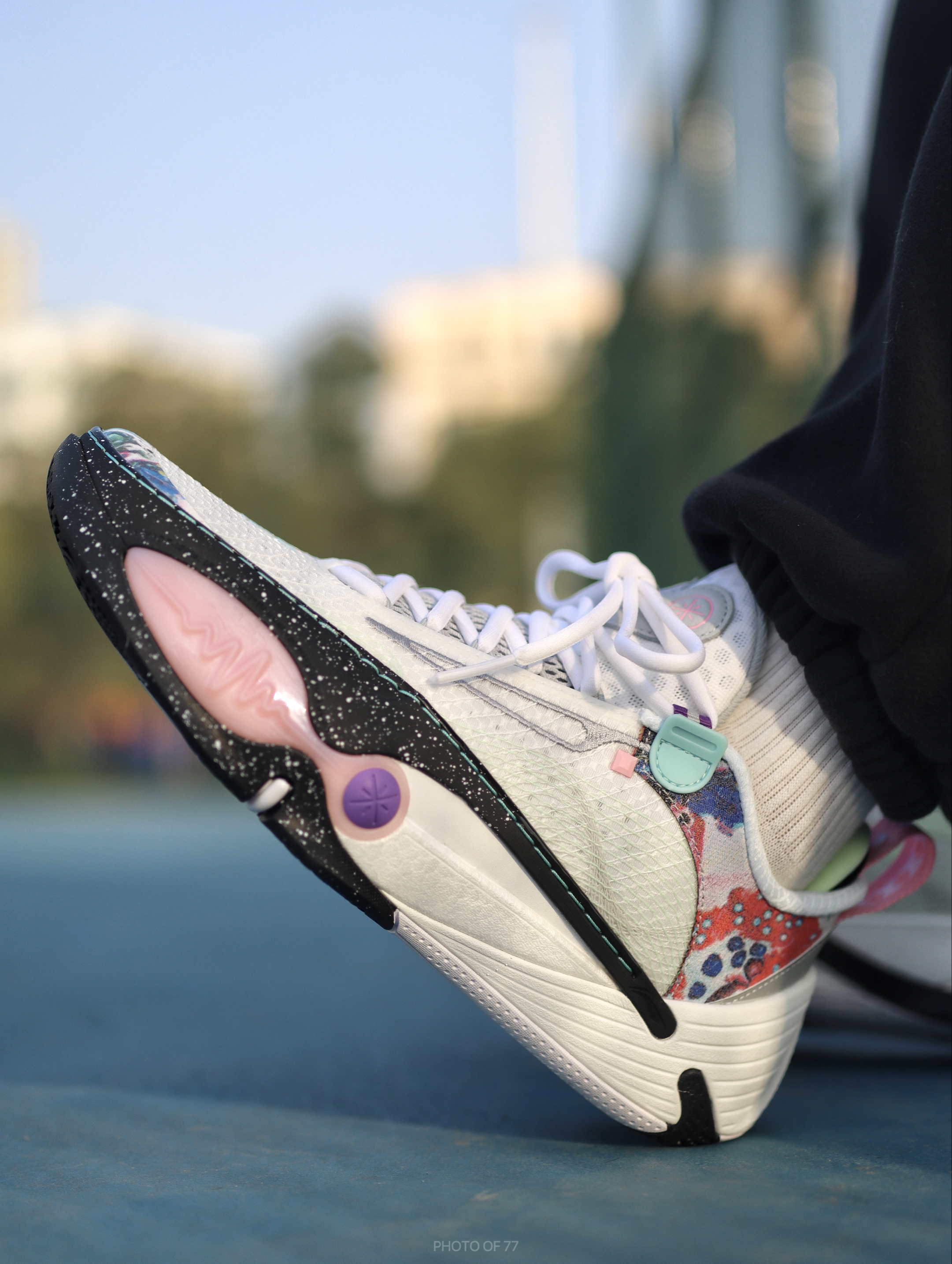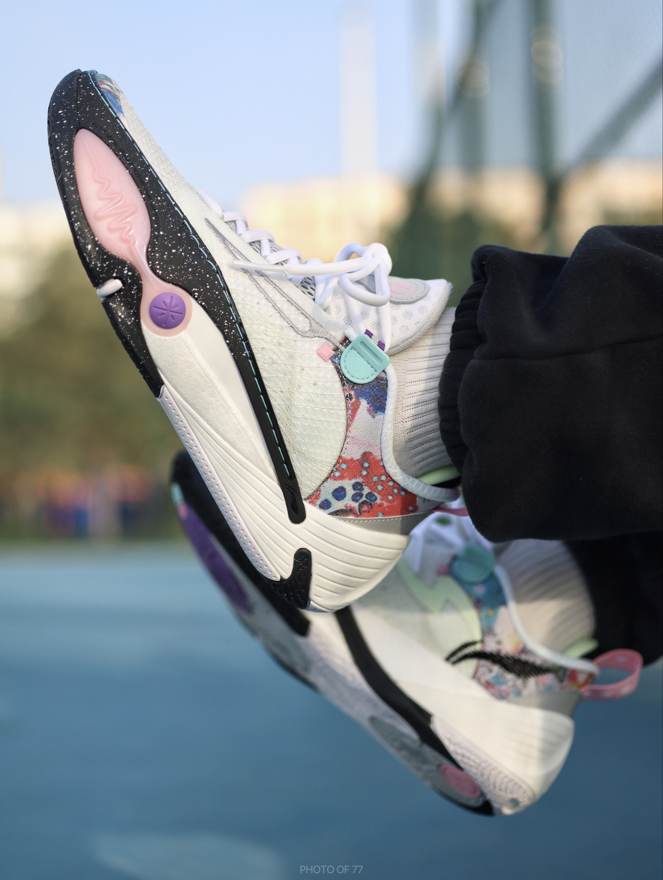 我先说下鞋面部分,鞋面虽然看似一些拼接设计,虽然有点“花里胡哨”,但是每一个用料都是有用的,让鞋与脚之间更加贴合自然了,所以上脚之后我最大的第一个感受就是步态引导更加自然了,其次这次升级还有一个值得说的就是加强了全方位稳定支撑,像变向突破、落地、跳投在启动这些动作一气呵成的同时也不会卸力。 最后在提一下尺码方面,尺码选择的话我觉得需要买大一码会比较合适。