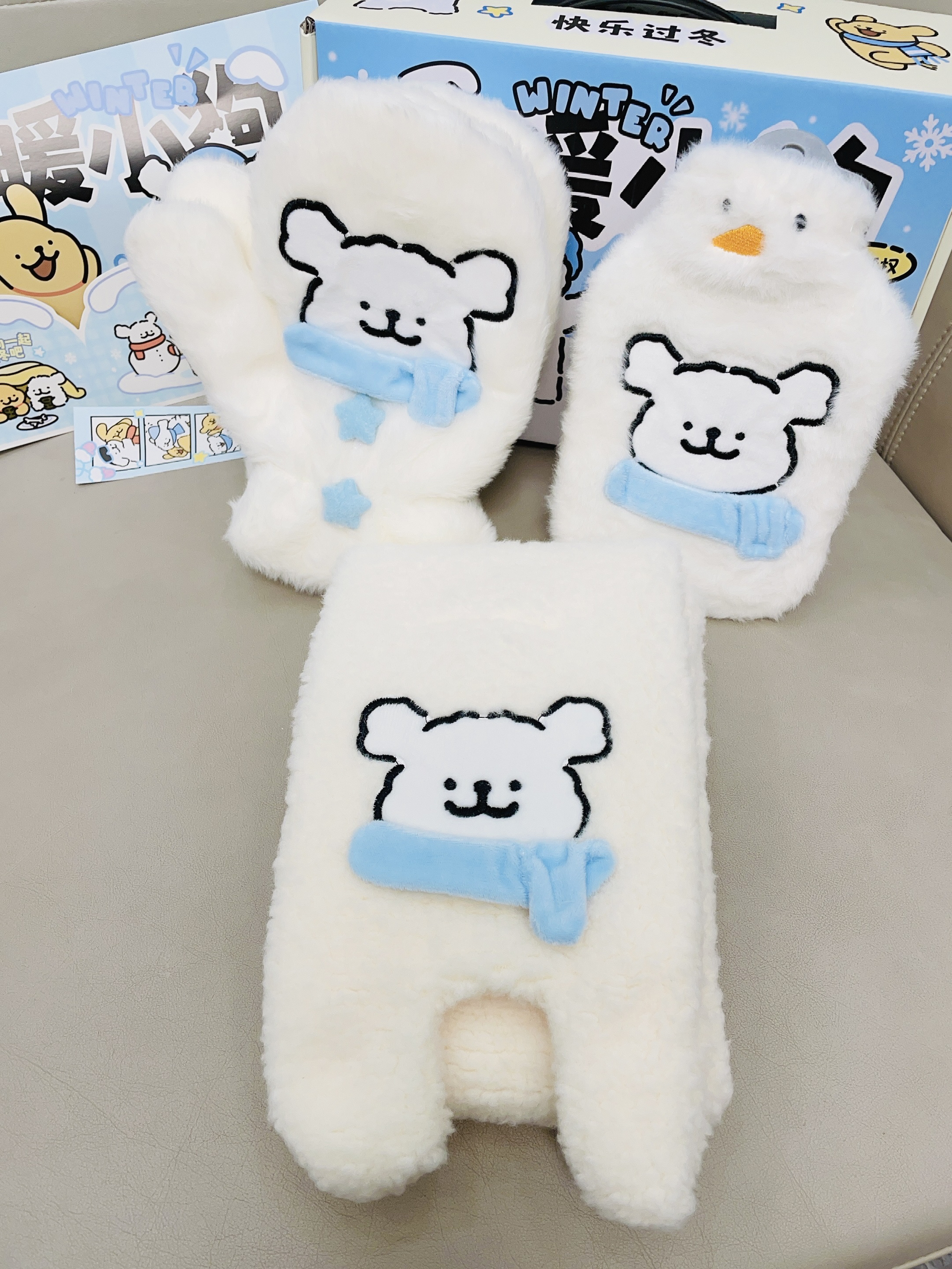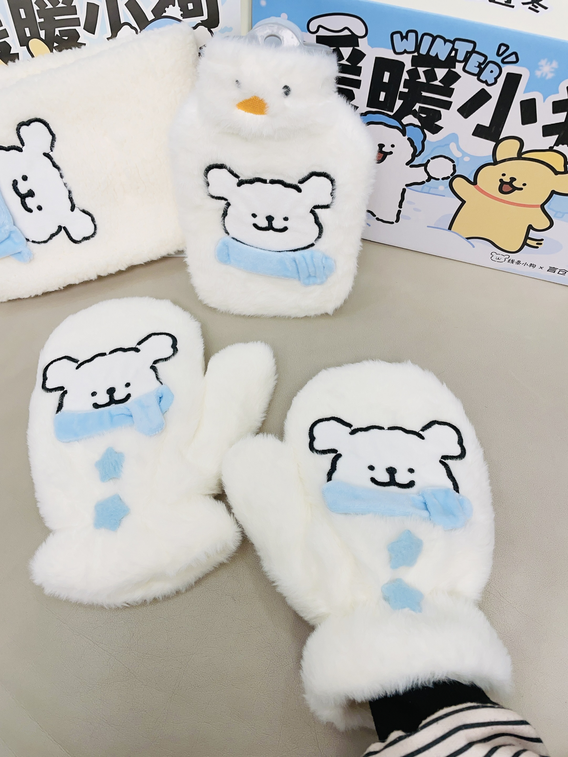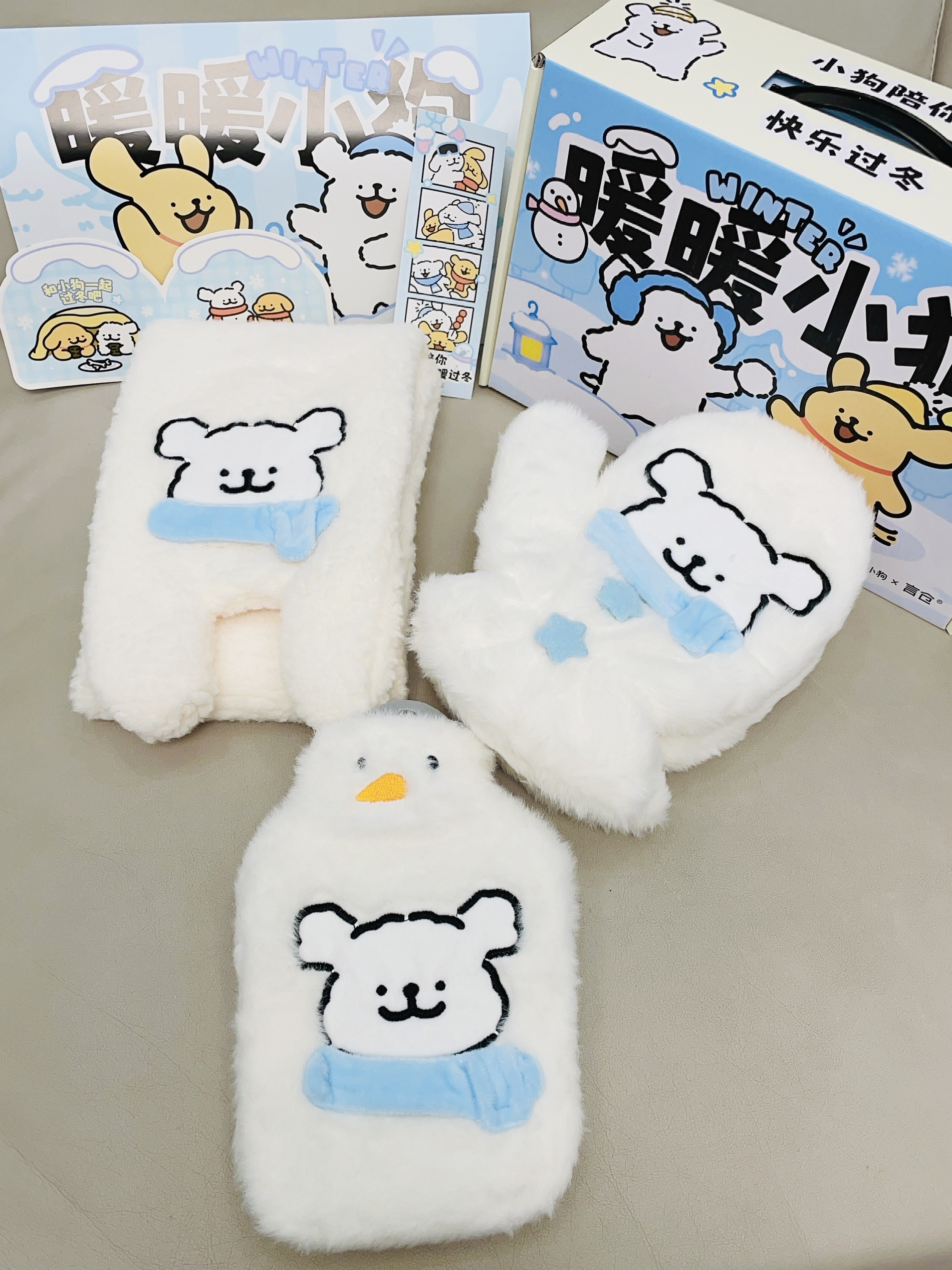 十二月啦又是年末的时候 准备开始新的一年了 言仓×线条小狗这款礼盒 打开有手套 围巾 暖水袋 图案可可爱爱的 都是白蓝配色 蛮适合冬天 毛绒绒的我用手摸着舒服 戴着都很暖和 下雪天都不怕 礼盒包装精致 圣诞元旦都可以送礼