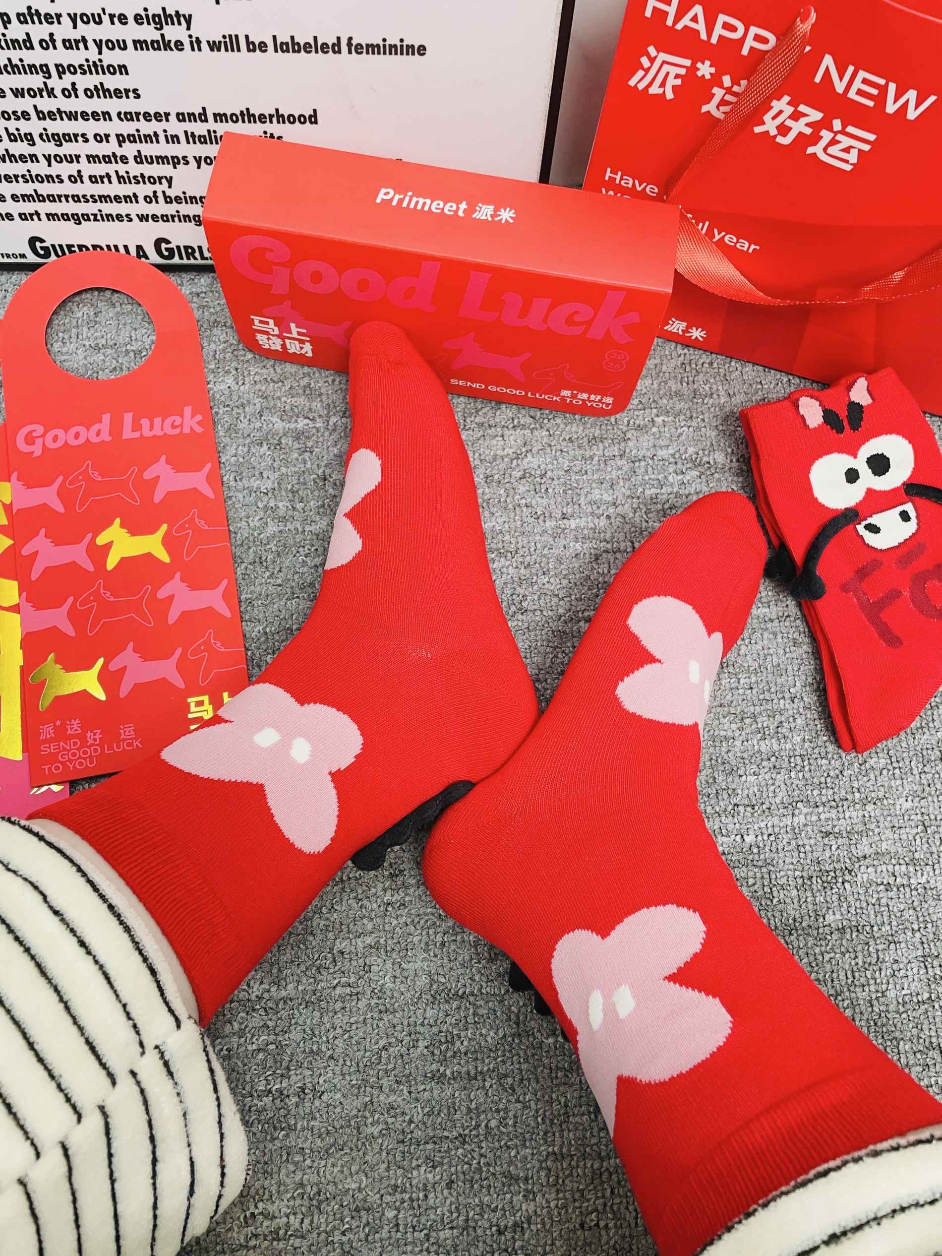 十二月啦又是年末的时候 准备开始新的一年了 我给自己安排了新的袜子可以穿 派米这款袜子红色配色好好看 刚好适合本命年的我 我用手摸着面料蛮柔软 上脚穿了我感觉hin舒服也不用担心会勒脚冻脚裸啥的 我觉得圣诞节新年穿着它随便搭都可以 红色礼盒包装 还有🧧送礼都可