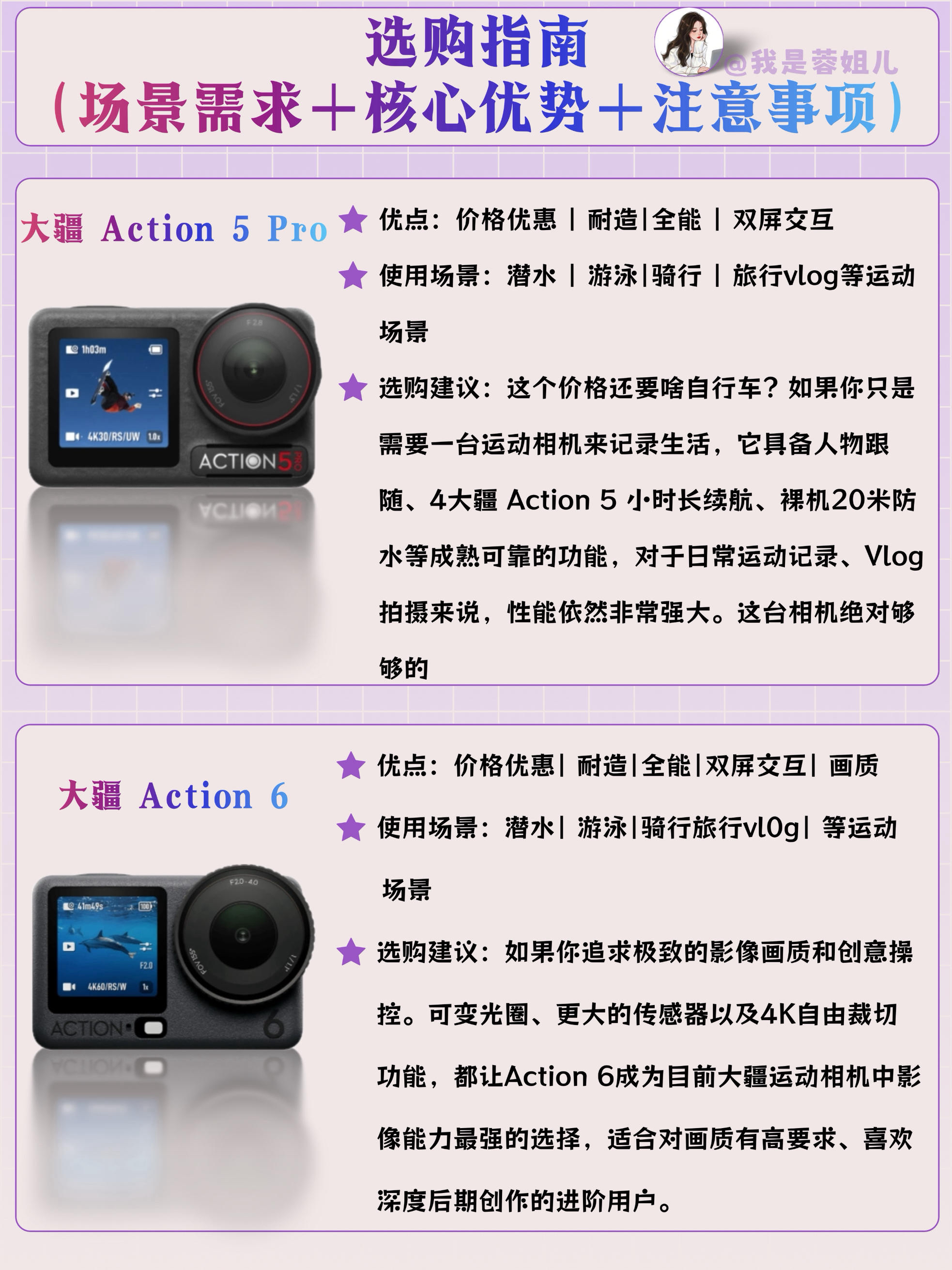 本篇笔记关联了DJI/大疆 Osmo Action 5 Pro 运动相机 户外摩托骑行潜水徒步 vlog相机 便携式 超旗舰画质 电子防抖 旅拍 畅拍套装、DJI/大疆 Osmo Action 6 全能旗舰 运动相机 可变光圈 Vlog 手持4K 防抖 超长续航 超级夜景 防水 超清画质 徒步套装、DJI/大疆 Osmo Action 6 全能旗舰 运动相机 可变光圈 Vlog 手持4K 防抖 超长续航 超级夜景 防水 超清画质 畅拍套装等商品,为用户提供真实的使用体验和购买参考。