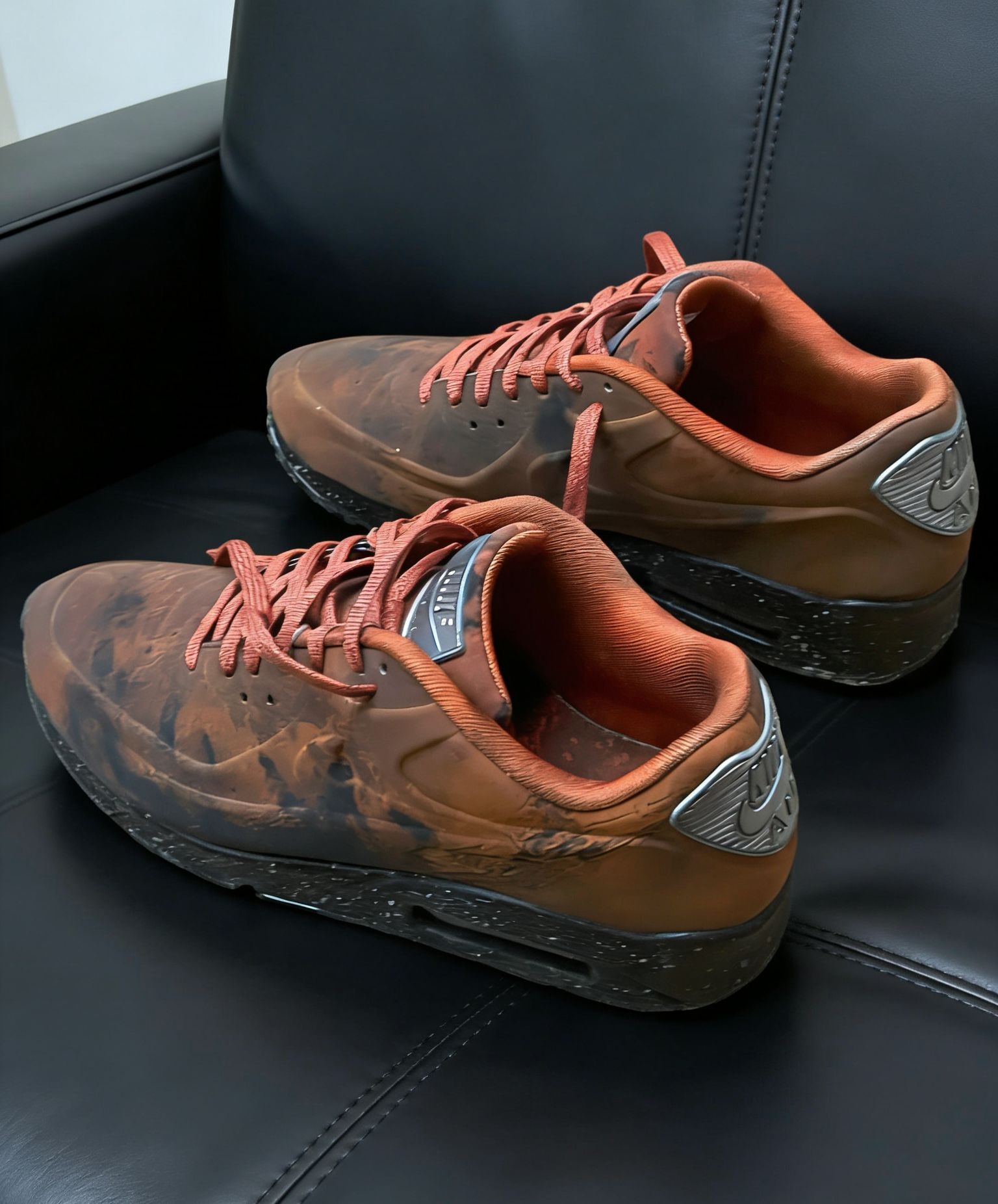 这双Air Max 90 “火星登陆”,越看越顺眼。 外观整体是旧的火星色越看越有味道,特别脏了也不显,比较好打理。但最绝的还是鞋外观,一到暗处或者晚上就自带夜光,夜里走路带风,低调又有点小特别。 脚感的话也比较舒服,搭配根本不用想,裤子随便抓一条蹬上就能走,复古感自然就来。 这鞋属于那种自带亮点的日常鞋,夜光鞋是灵魂,穿了就不想脱。