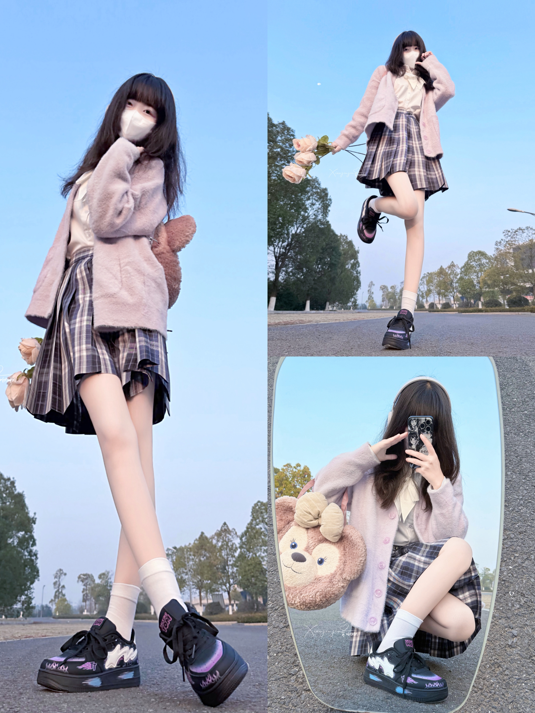 许嵩说的不错 今天天气不错有阳光☀️啾啾早起出门去吃拌粉 搭配了黑紫板鞋👟和深色系格子裙,是活泼韵味女孩👧 鞋子鞋头有紫色涂鸦,酷酷的 穿起来不掉跟 吃完后街的南昌拌粉 去操场消消食~感受一下朝阳🌞