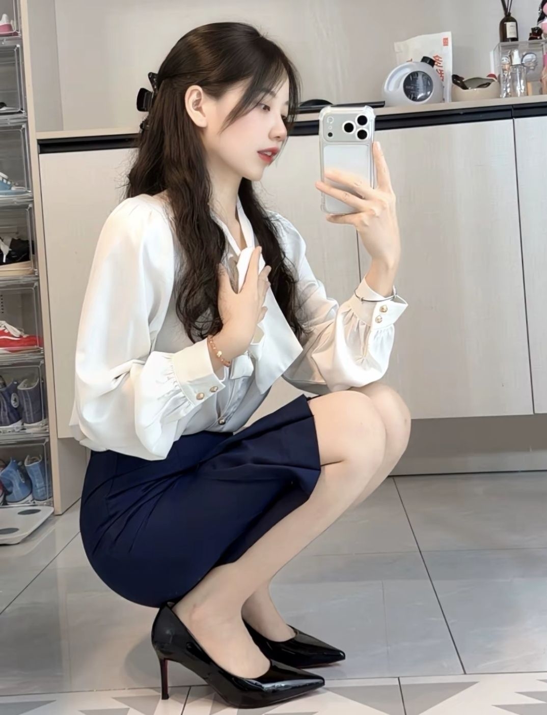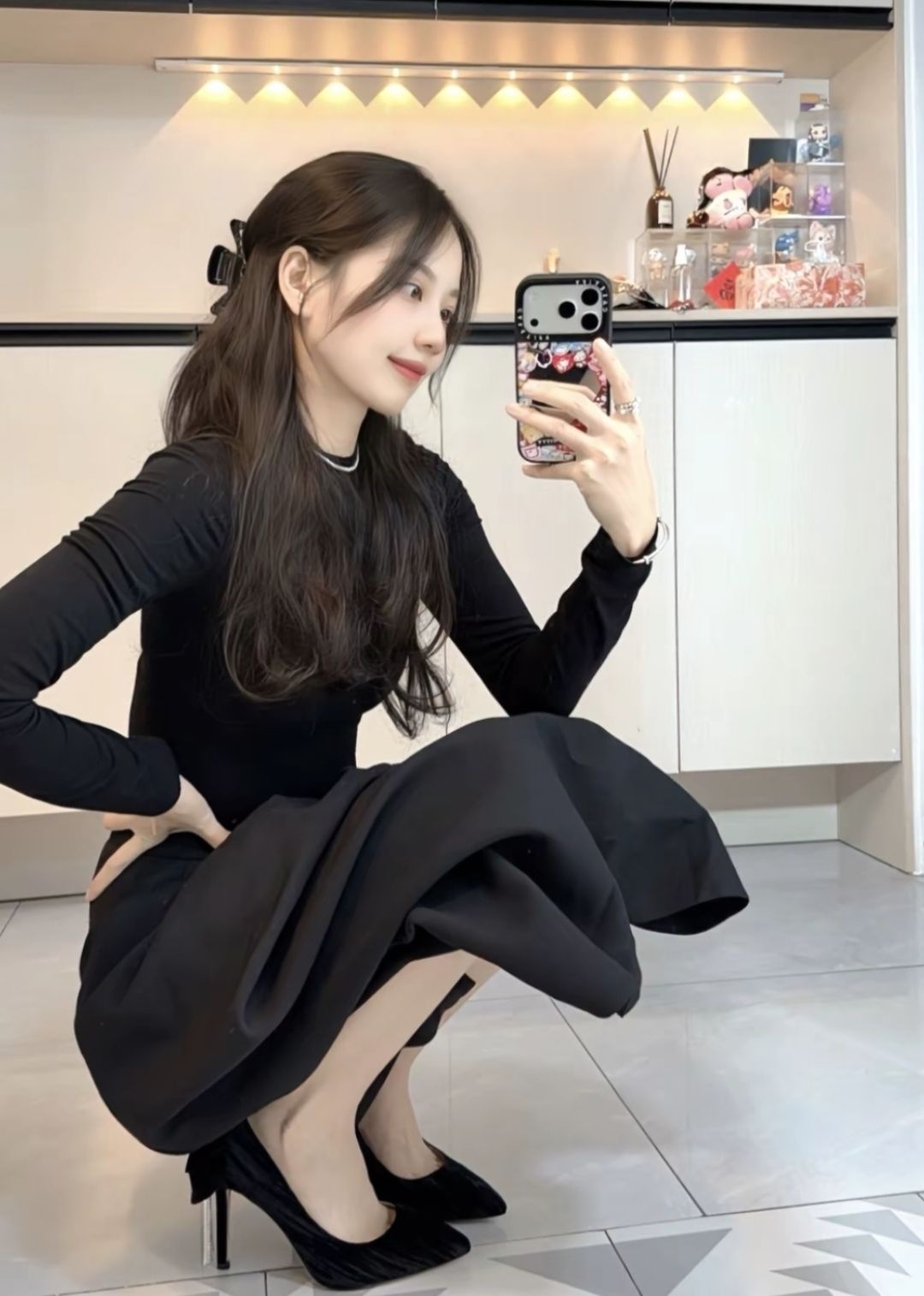 真的很迷人😍 漆皮光面尖头设计好惊艳✨ 黑色绝对百搭~通勤搭配整个人都气质不少 日常约会搭配小裙子也很御姐! 8厘米高度很推荐诶~ 上Jio会觉得很显腿细腿长 而且鞋型和脚很贴合 既不累也不磨脚 我是真的爱住了