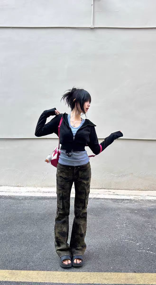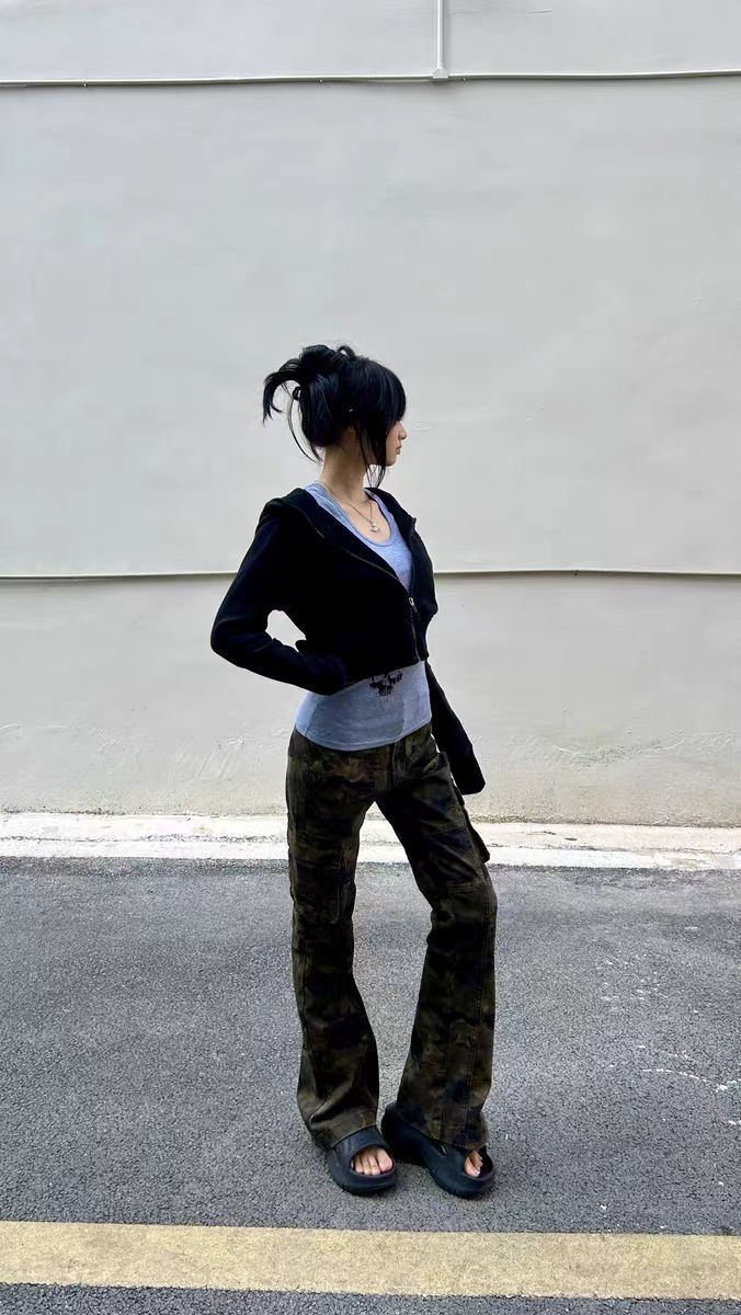 : 酷飒个性款 1. 迷彩工装裤,解锁街头酷女孩气场 2. 一条迷彩裤,穿出随性不羁范儿 卖点实用款 1. 迷彩工装裤,多袋设计超能装,舒适又百搭 2. 宽松版型不挑身材,迷彩工装裤承包日常穿搭 场景氛围感款 1. 日常出街穿迷彩工装裤,随性又有范儿 2. 休闲通勤两不误,迷彩工装裤yyds
