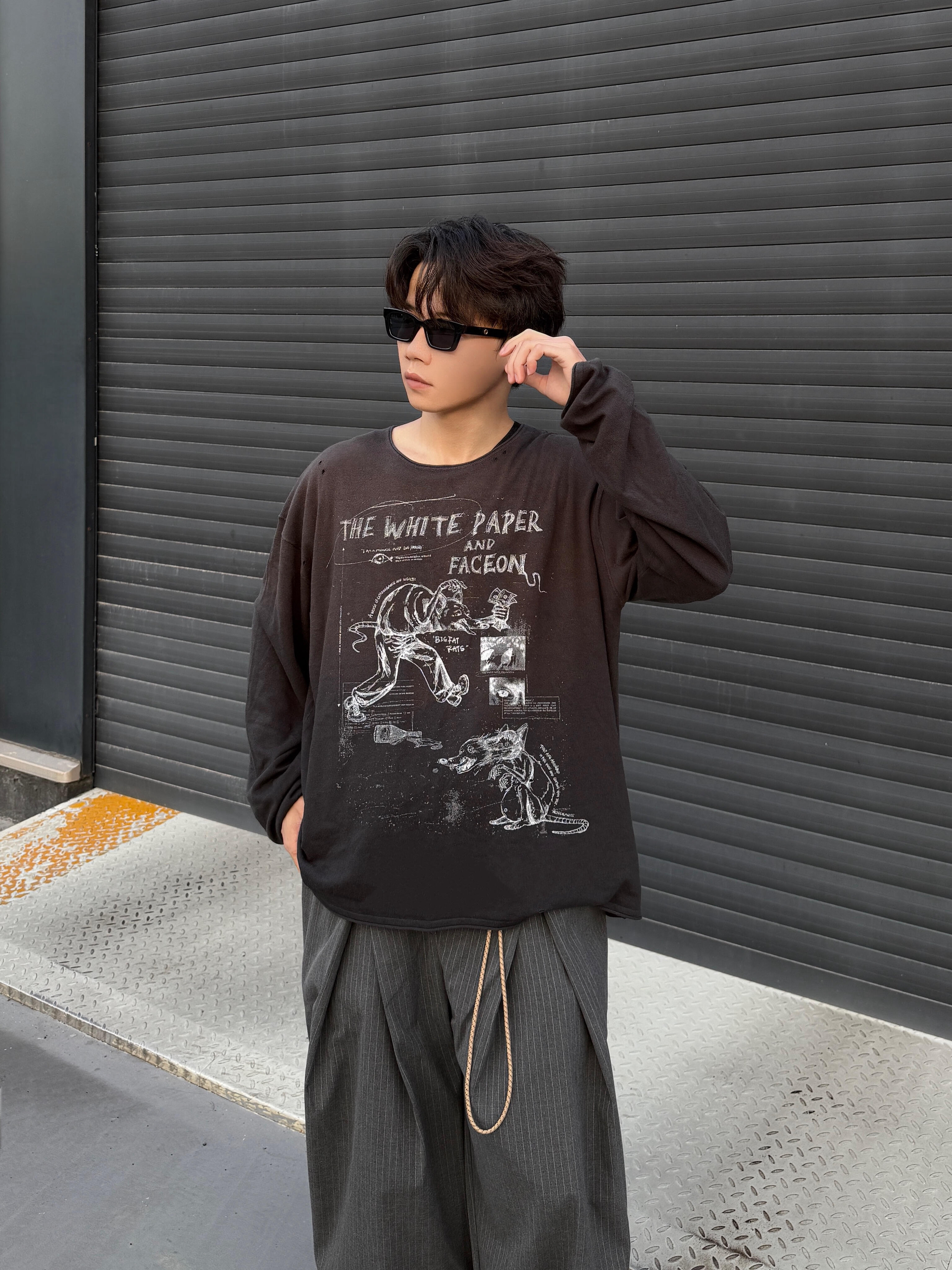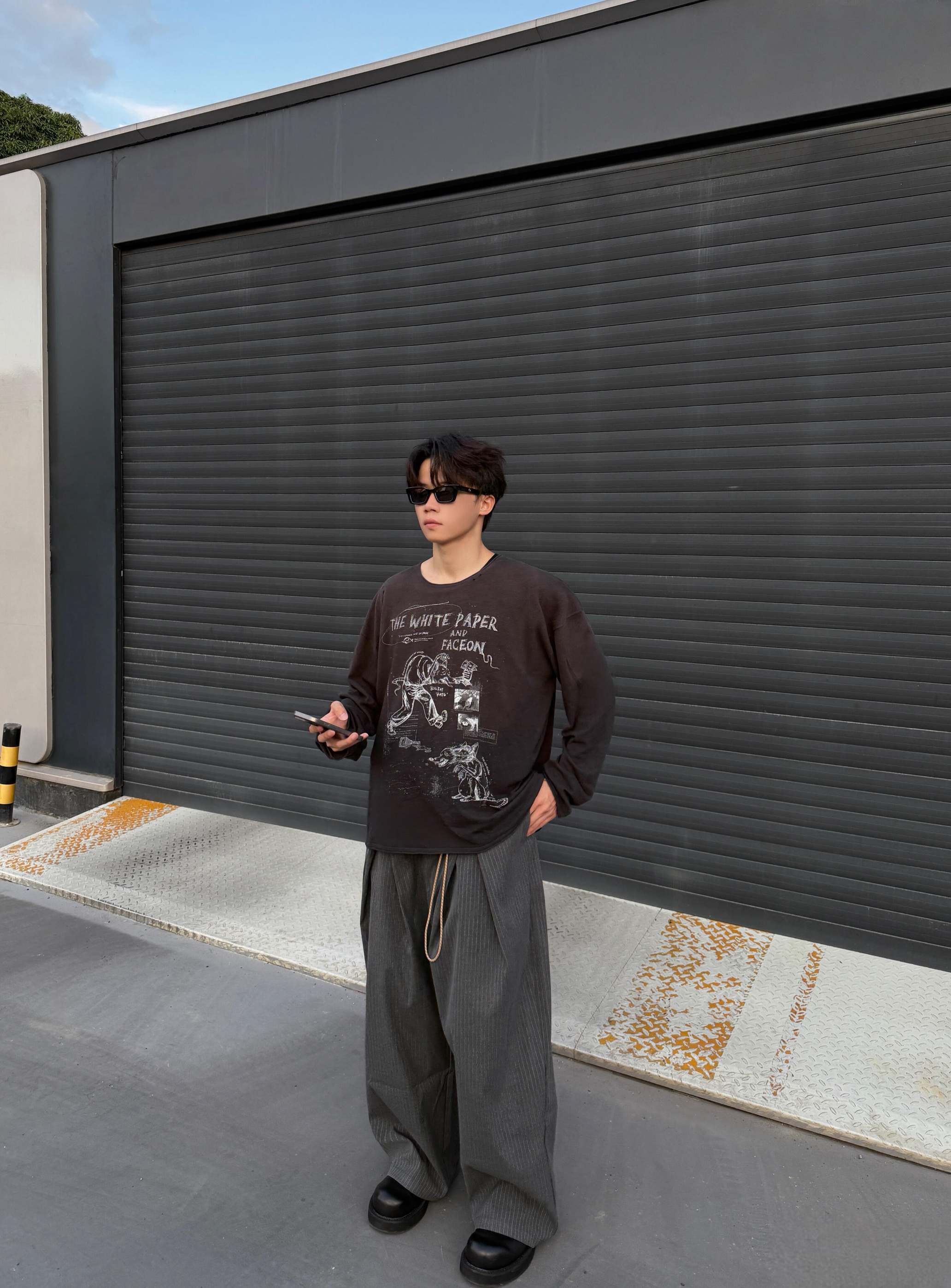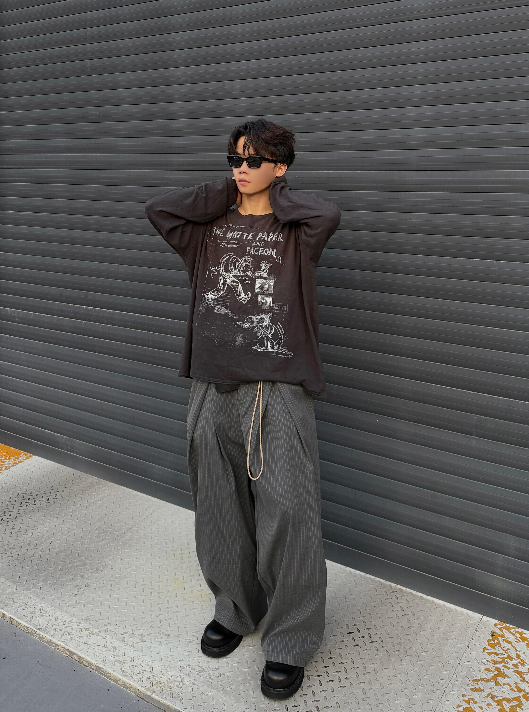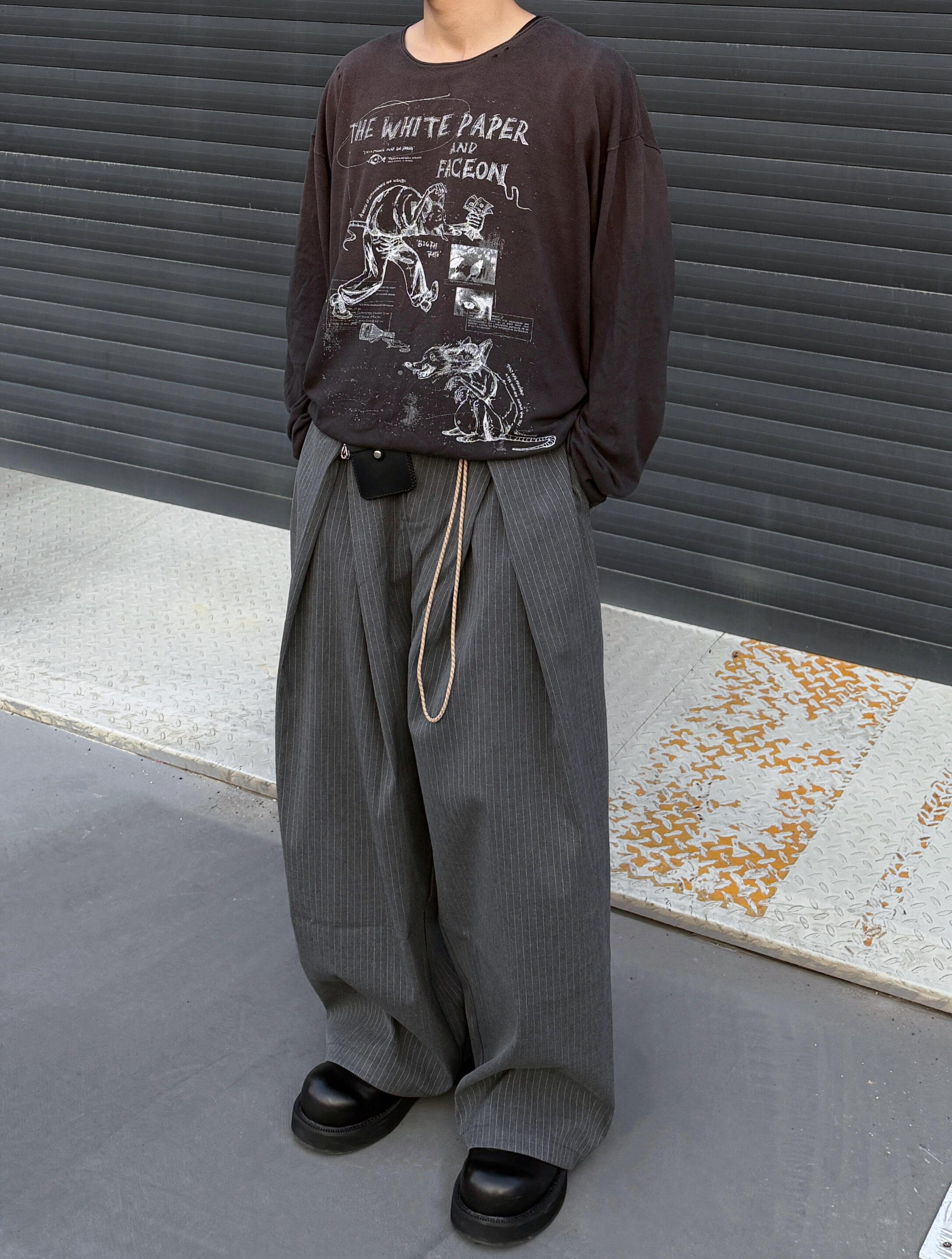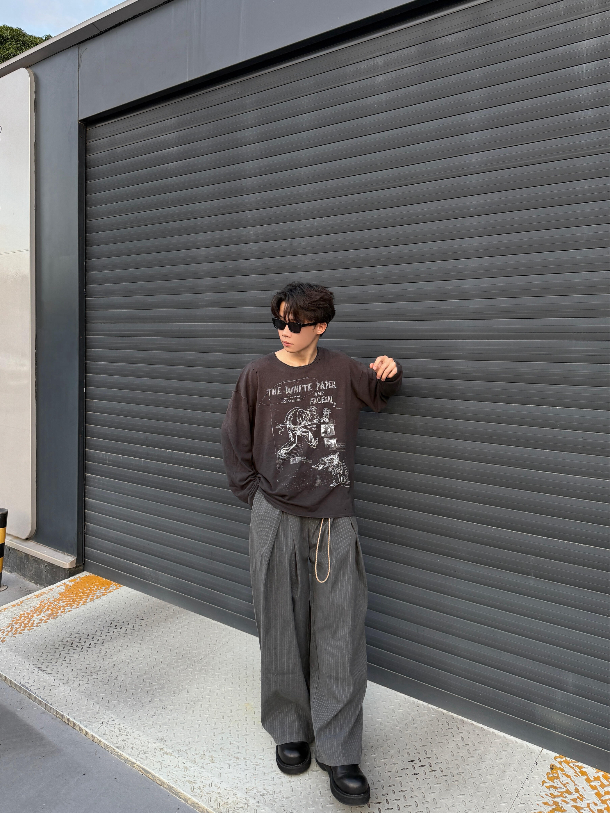 【做旧印花长袖T与线条西裤的随性潮流碰撞】,由用户 NewBoy- 分享,来自IP未知。这是一篇来自识货社区的真实用户分享笔记。