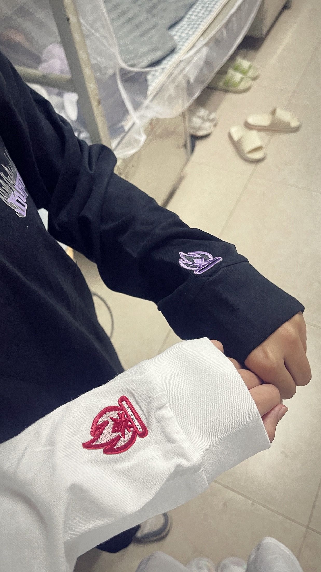 1. 刺绣小标长袖,黑白带出不一样的潮酷感 2. 撞色刺绣设计,一件解锁街头潮流范 3. 黑白刺绣长袖,细节处藏住个性态度