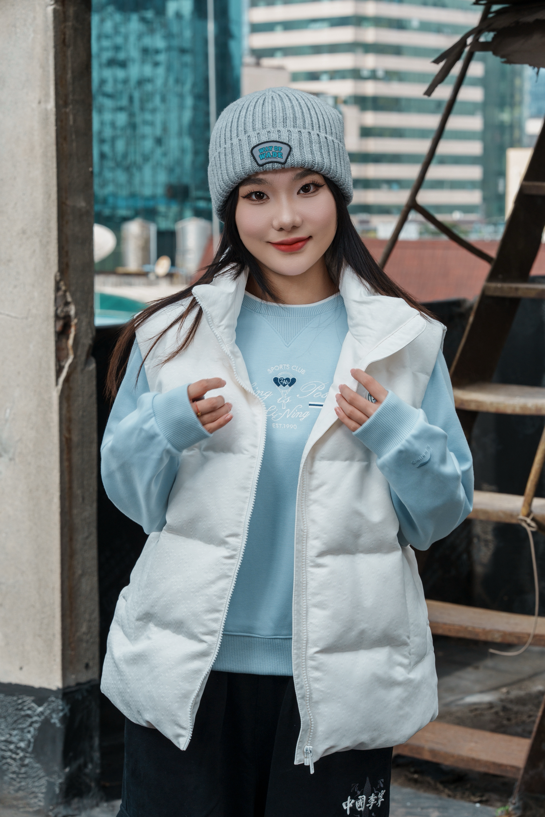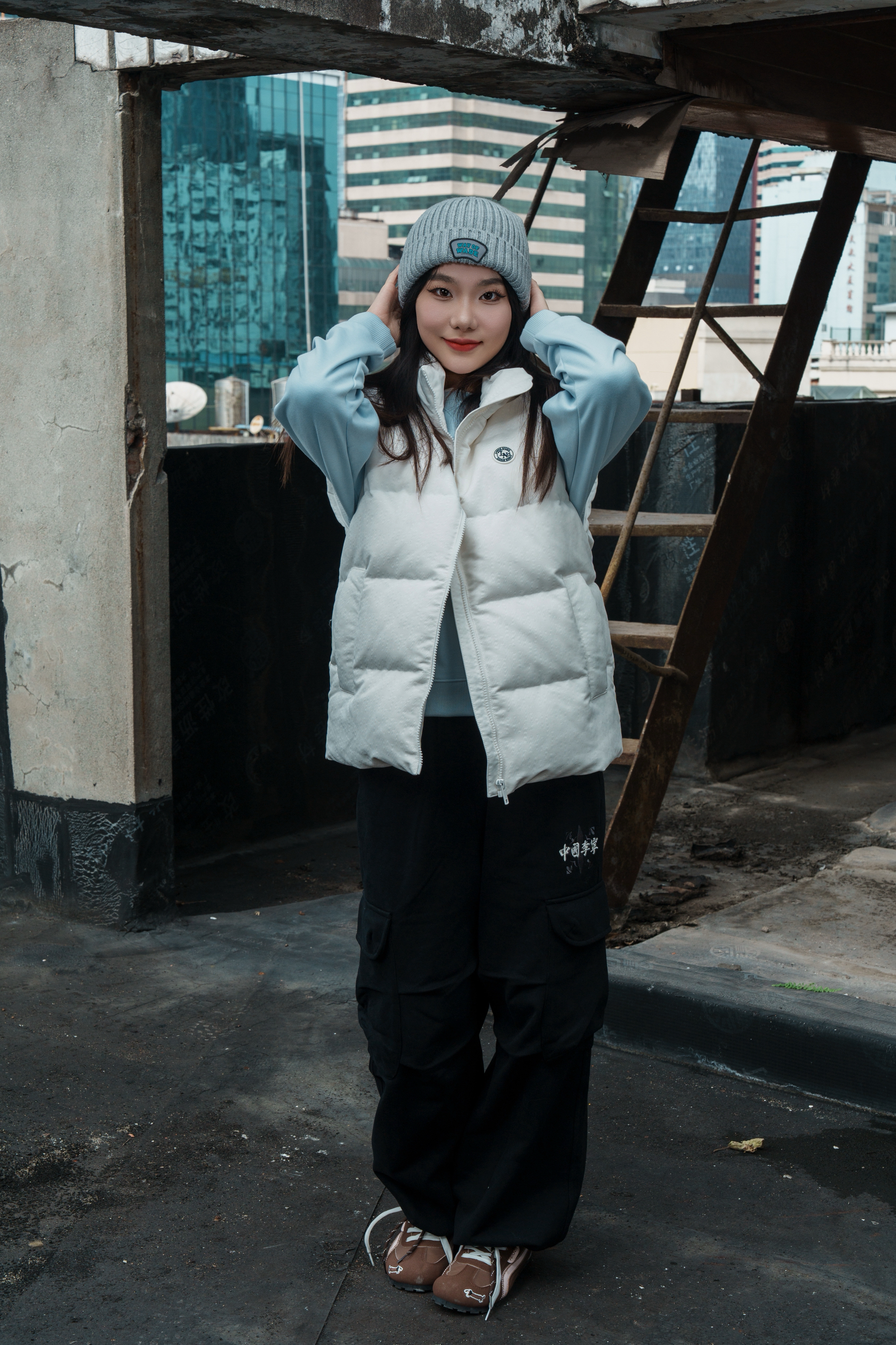 谁懂啊!今天这身直接焊在身上了😎 上衣叠穿: 内搭是浅蓝爱心卫衣,软乎乎的加绒款,贴身穿巨舒服!胸前小爱心印花甜而不腻,单穿也很乖~ 外面叠了件米白色立领羽绒马甲,蓬松度刚好不会显臃肿,立领防风还显脸小!奶白+浅蓝这组合,直接把秋冬的沉闷给戳破了,清爽又暖和~ 裤子: 搭了条黑色工装阔腿裤,裤型是那种垂垂的,胯宽腿粗的姐妹闭眼冲!侧边小口袋+宽松版型,随便一穿就是“不费力时髦”,重点是加绒...