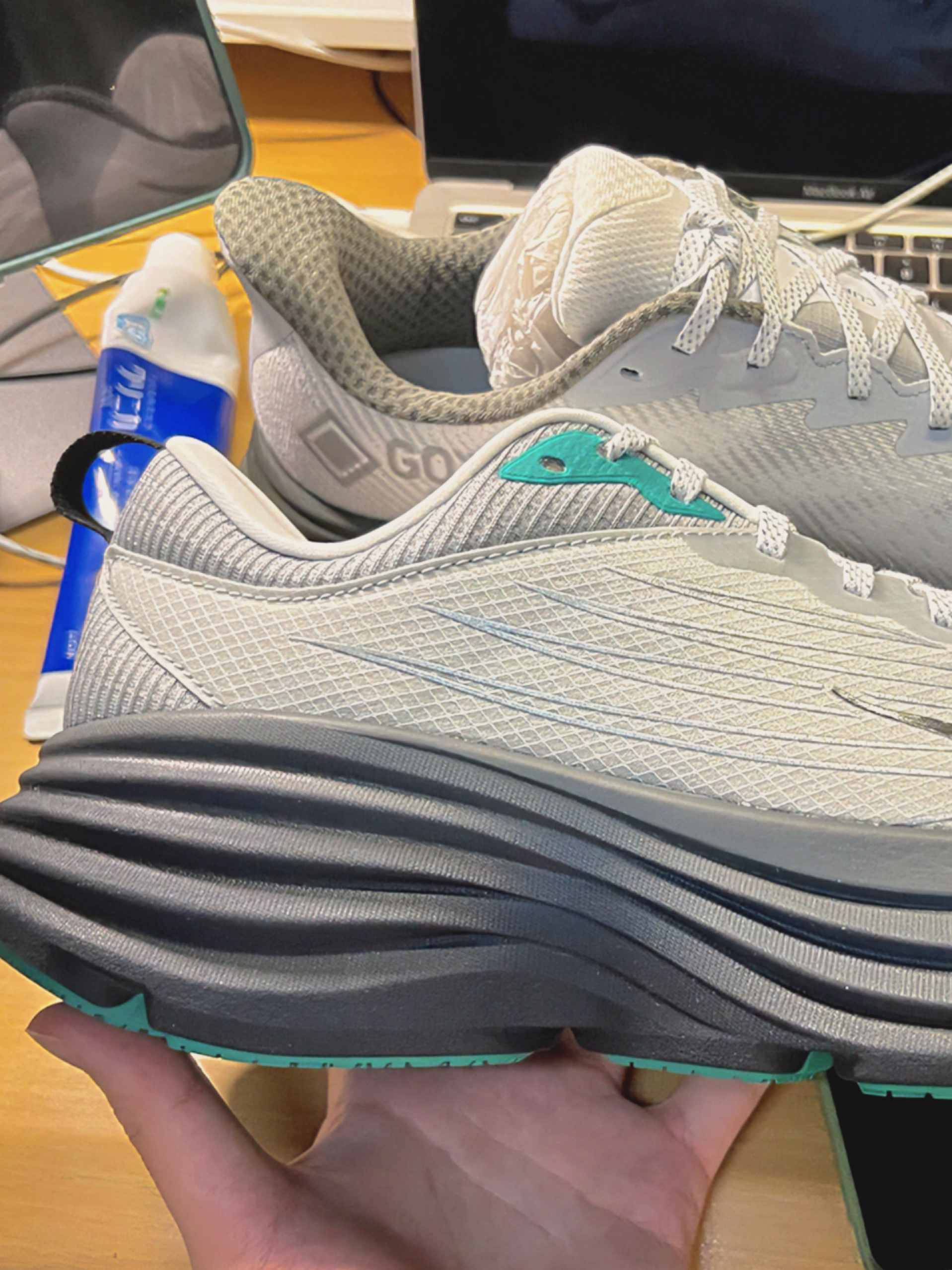 那天牵狗下楼,刚套上这鞋就没了新鞋的磨脚劲,越走越顺得想多绕两圈。配宽松束脚裤和浅灰T恤,溜完狗拐进便利店买冰饮,清爽又不突兀。踩下去像陷进刚醒好的软面包,软弹裹着脚,连走半小时脚踝都没发紧。唯一缺点是鞋身有点沉,单只拿手里比常穿的跑鞋坠不少。