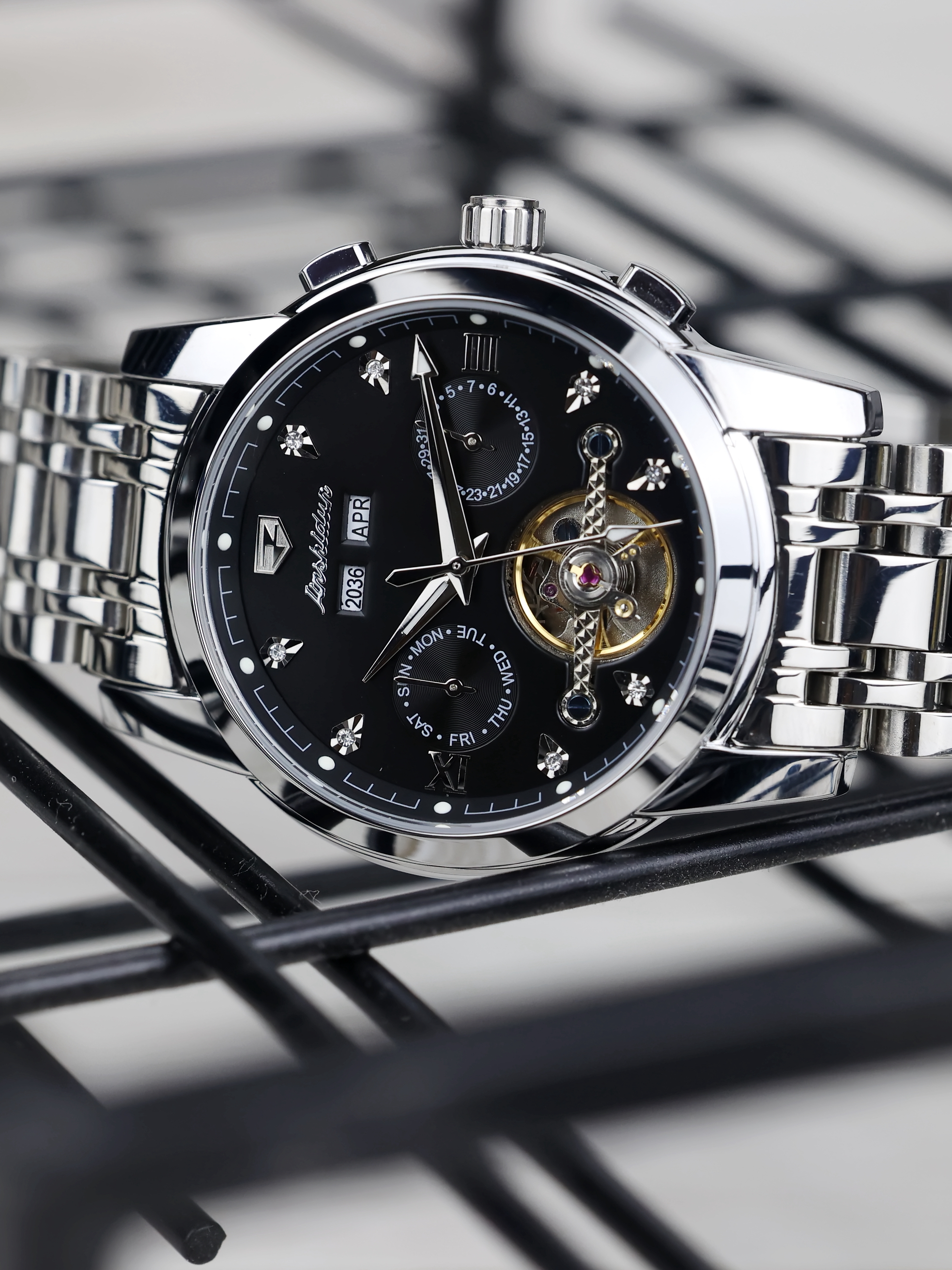 总体来讲这块儿机械表属于商务风,可偏偏一个金属立体LOGO,反而给我一种重金属的味道,也就是那种硬汉的风格,不过戴在手腕上确实显得帅气,容易驾驭多种衣服,真是爱了~