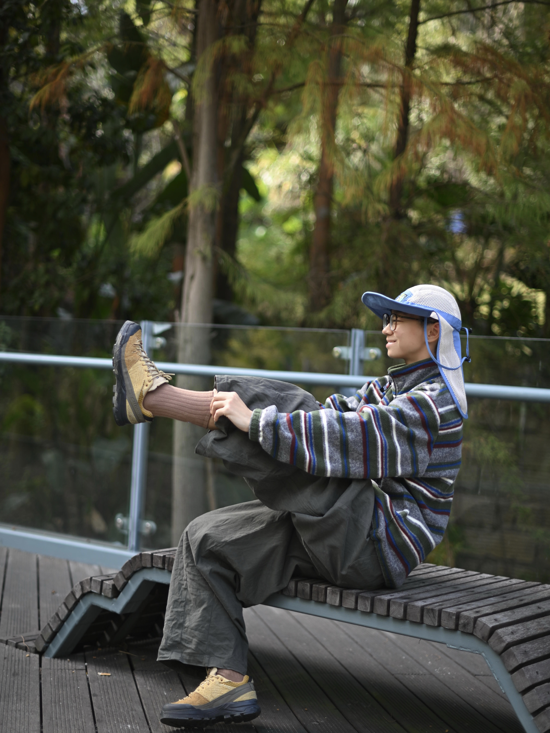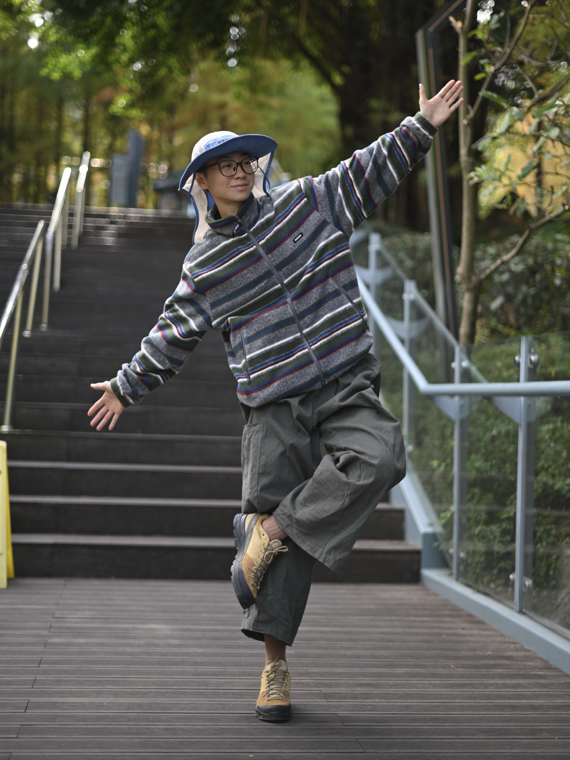 172CM|55KG 👔:m👖:m|👟:39码 今日闲来无事 出门踏秋咯 山系穿搭给冬日一些震撼 舒适的条纹摇粒绒 宽松的灰色工装裤和秋色徒步鞋 少不了一双山系中筒袜 防臭耐磨舒适极了~