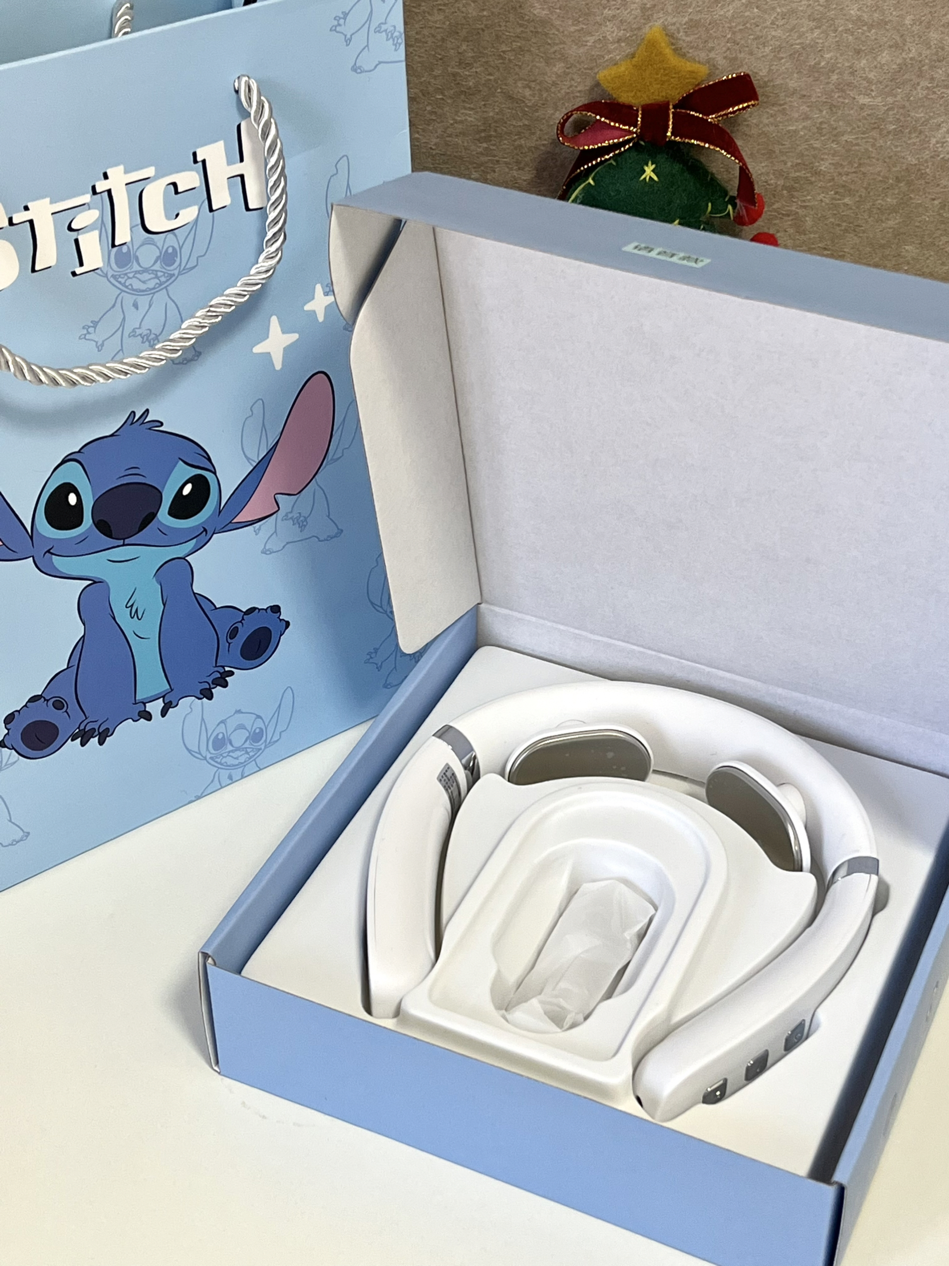 打开礼盒真的有被惊喜到 是史迪仔护颈仪啊 有10种模式,16档力度我觉得好方便 我最喜欢热敷功能,久坐脖子酸酸的,热敷一下脖子都放松不少 礼盒礼袋的包装,我觉得送人也蛮有仪式感的