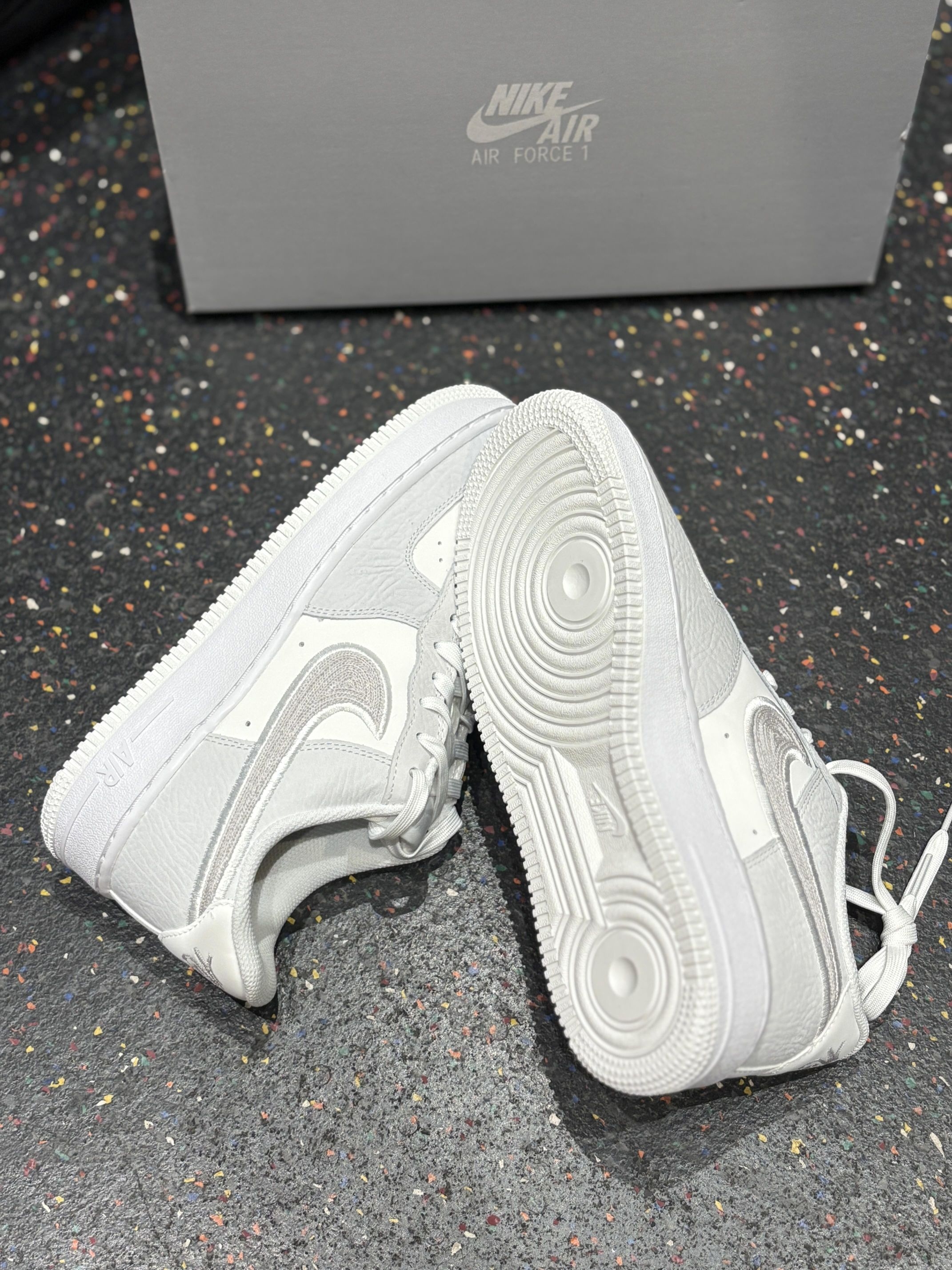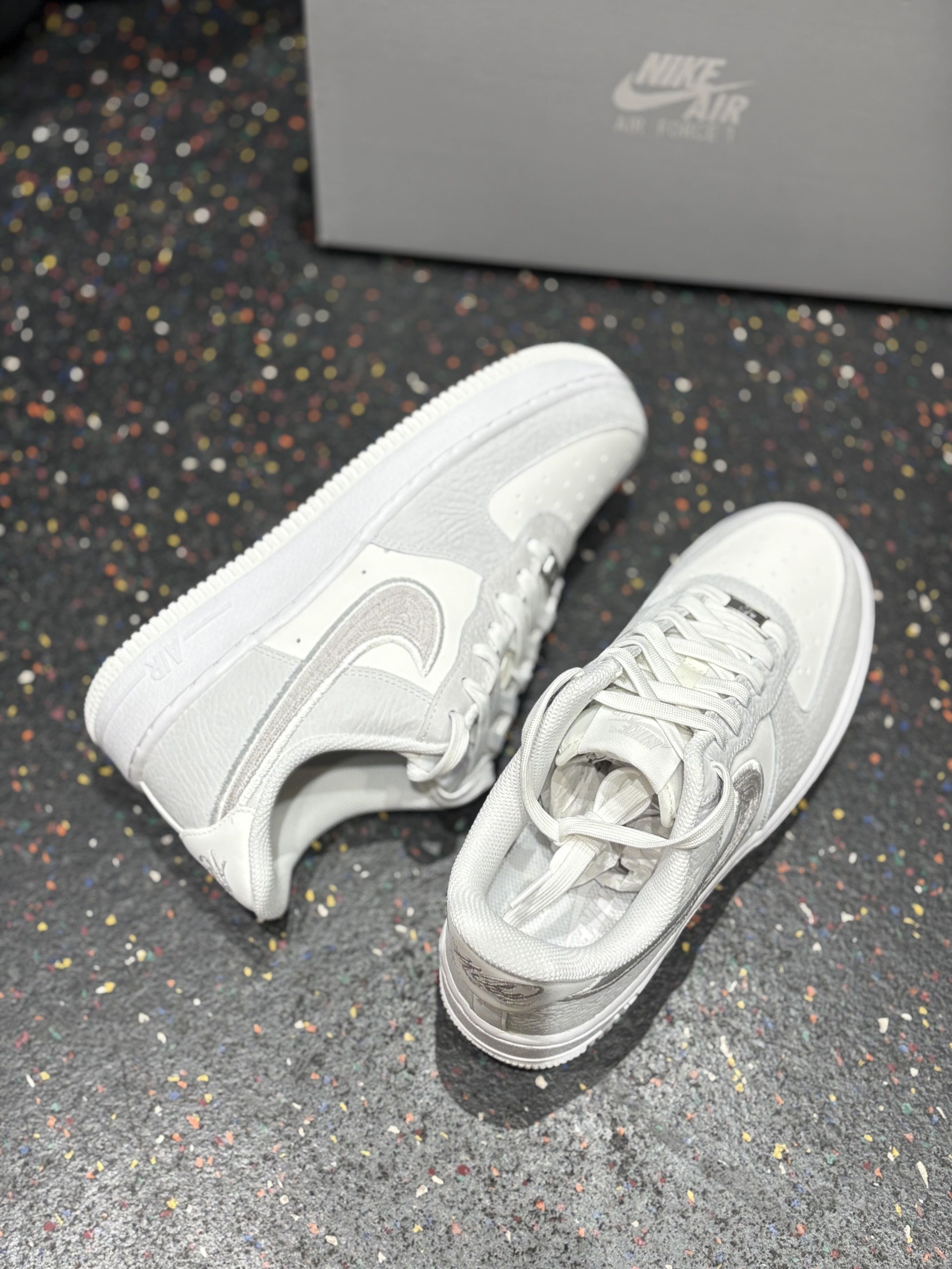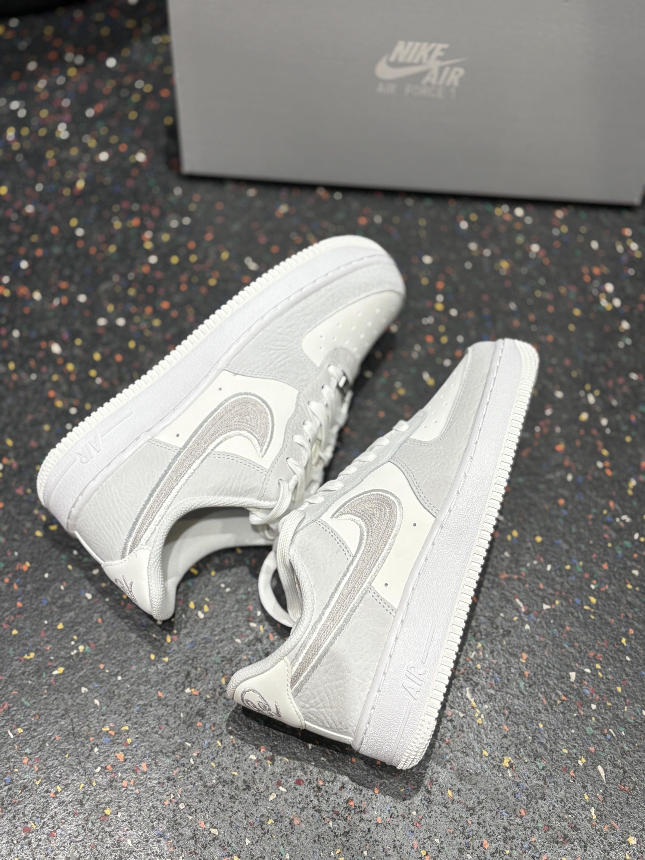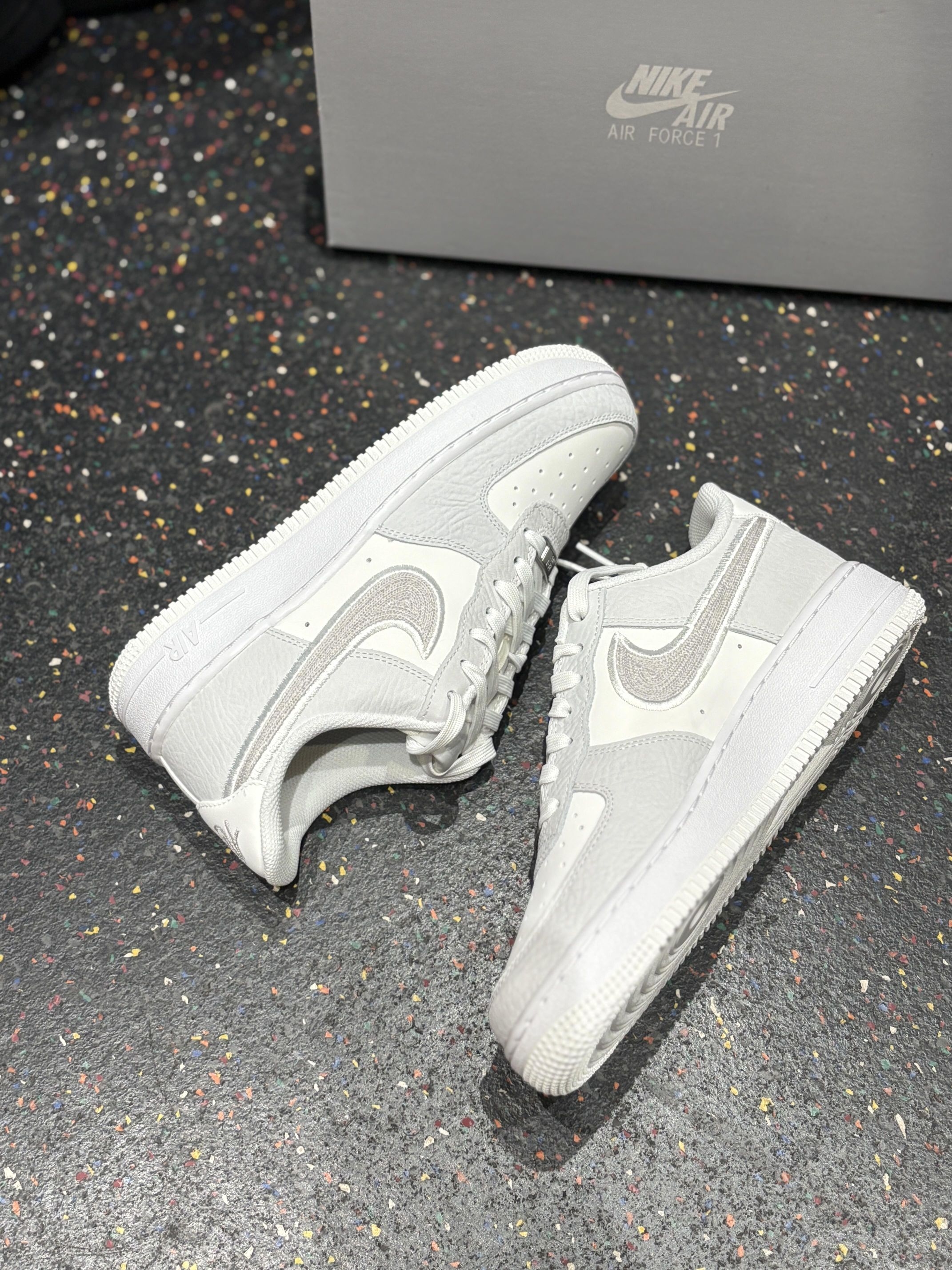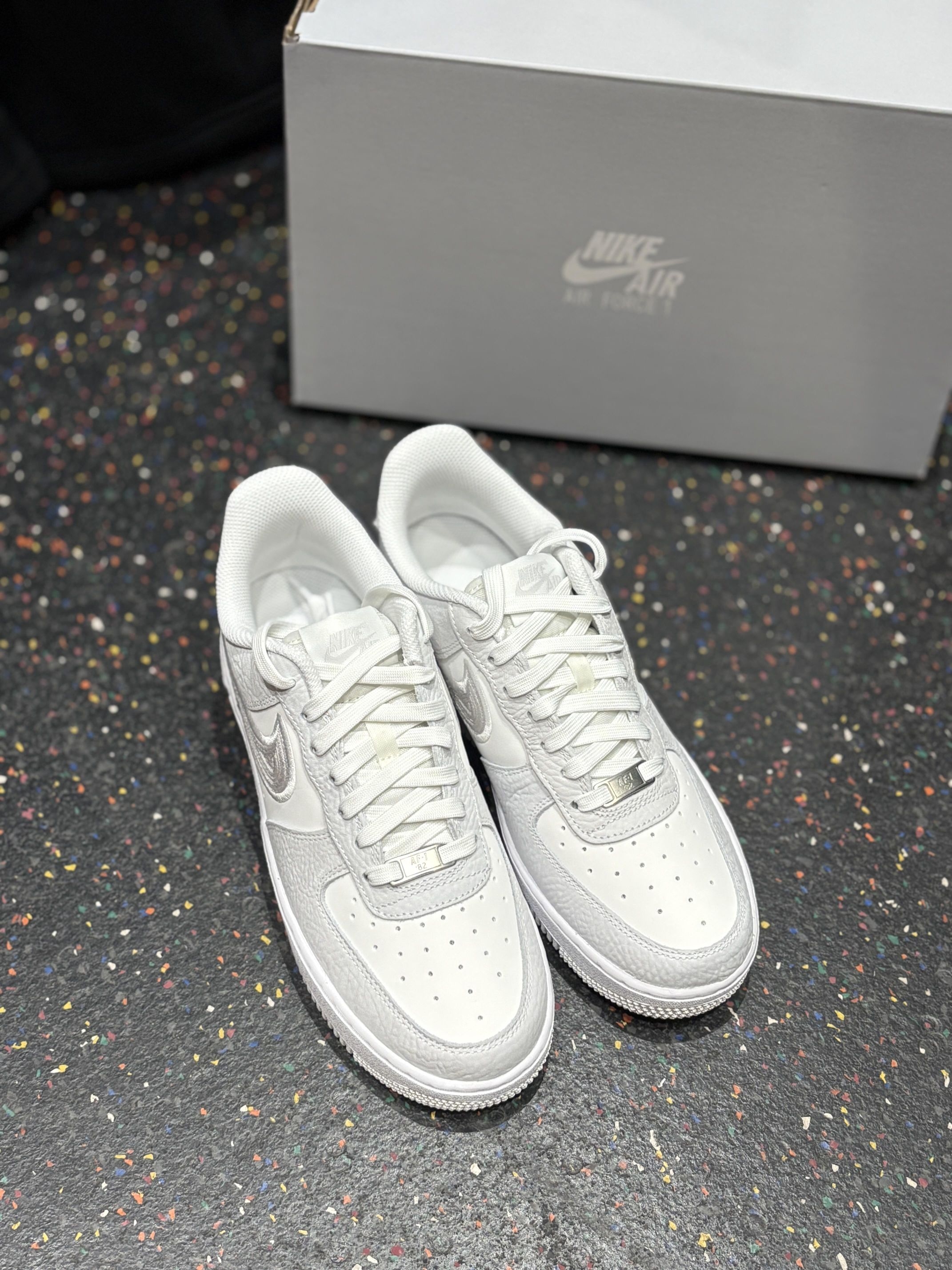 ✅ 核心亮点 1. 白灰质感双杀:白色与高级灰的拼接配色,经典中带着克制,配合特殊纹理鞋面与金属细节,质感出众。 2. 细节致敬经典:金属鞋带扣上的“AF1 '82” 刻字及刺绣Swoosh,充满对元年的致敬情怀与精致感。 3. 百搭经典脚感:沿用Air Force 1备受好评的舒适经典脚感,提供可靠的日常穿着体验,通勤出街无压力。 🔥 上脚感受 上脚后,熟悉的扎实柔软脚感立即回归,搭配修长的...