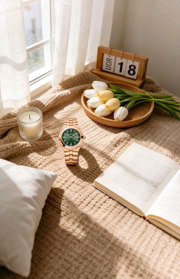 34.5mm刚好贴细腕,黄黑皮戴这绿盘超显白。18K粉红金不软易戴,表链贴手不勒。自动机械走时稳,150米防水洗手出游都敢造。通勤约会、正式场合都hold住,贵表也能日常戴不心疼~