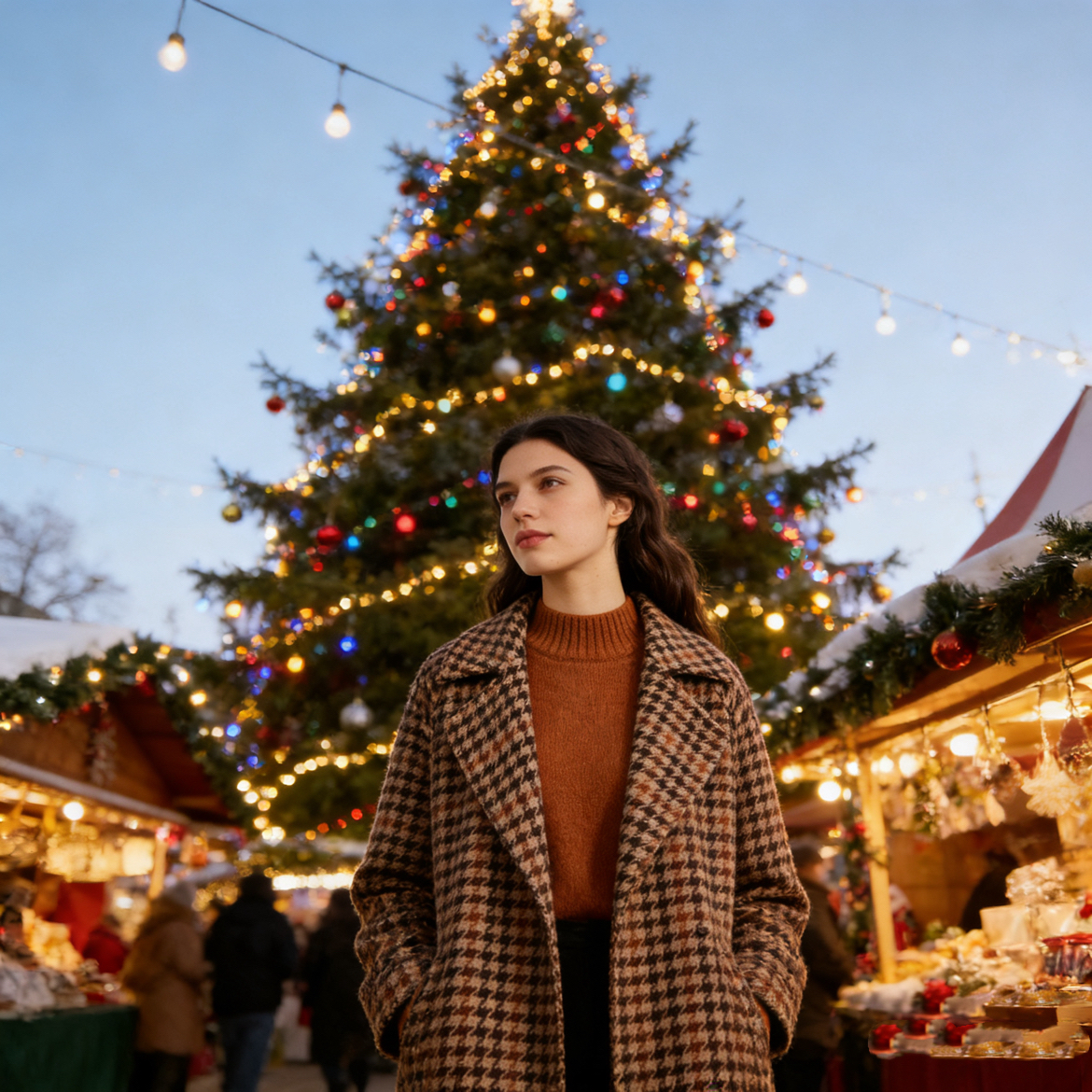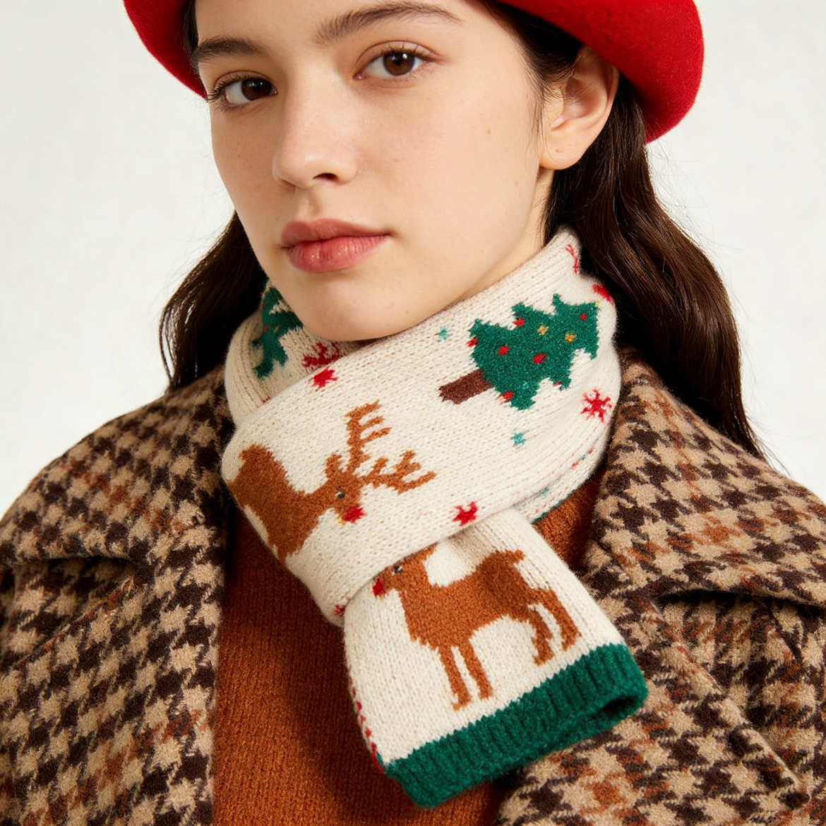 圣诞约会/逛gai这么穿,出片率直接拉满! 不用堆满身红绿!小细节才是氛围感密码👇 一件焦糖色毛衣打底,软糯糯的超显白 外面套件菱格纹大衣,保暖又复古 下半身直接穿黑色短裙+过膝靴,秒变大长腿 配饰才是灵魂!戴个红色贝雷帽,再挂个麋鹿小围巾 走在路上都被问链接,圣诞味儿一下就上来了! 不管是和crush约会,还是跟姐妹逛圣诞市集 这么穿不浮夸不撞款,随手拍都是大片感~ 圣诞穿搭卷起来!