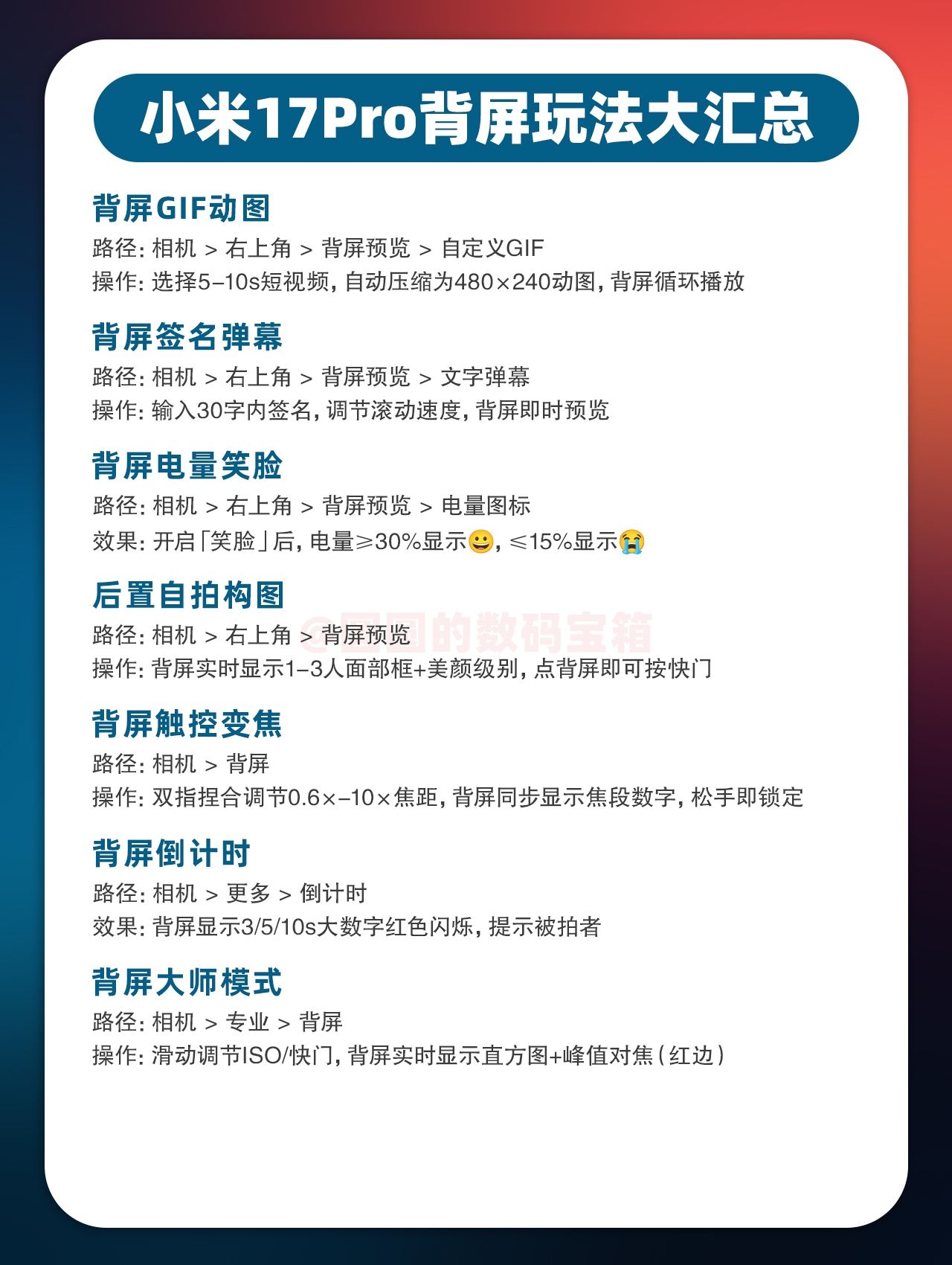 用了半个月小米17Pro,不得不说这背屏才是灵魂!圆圆连夜整理了能提升幸福感的背屏功能分享给宝子们~🥳