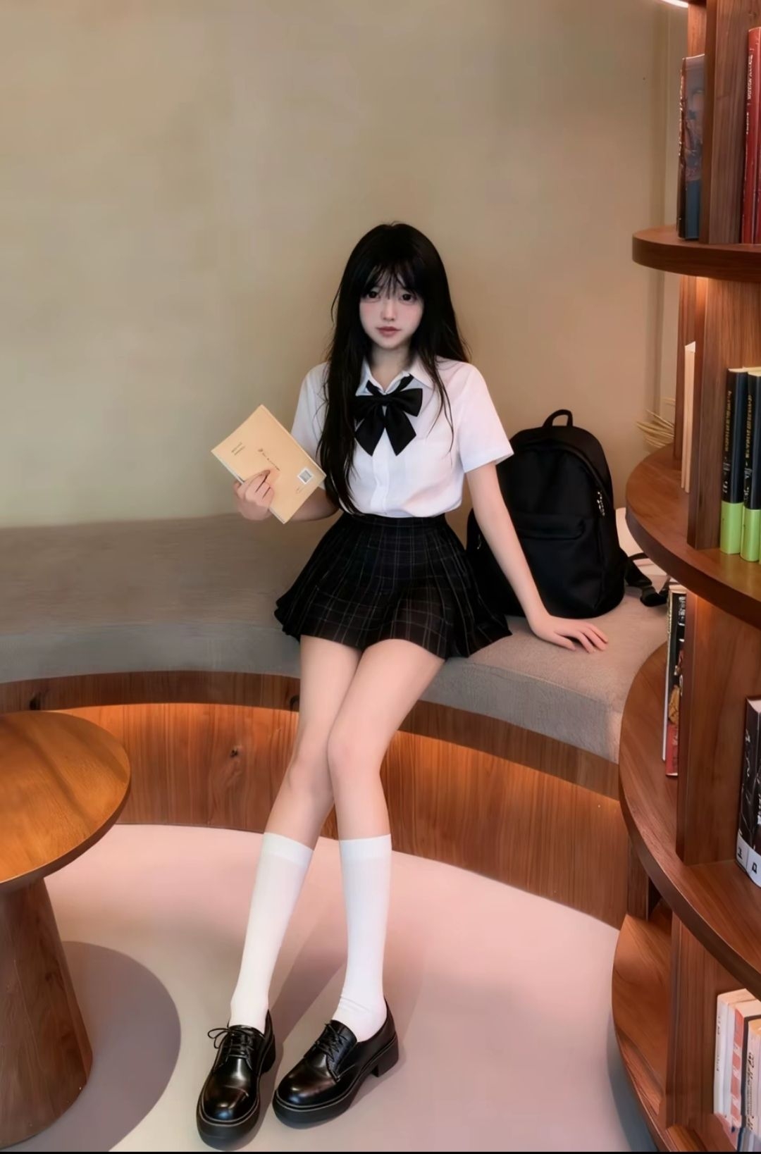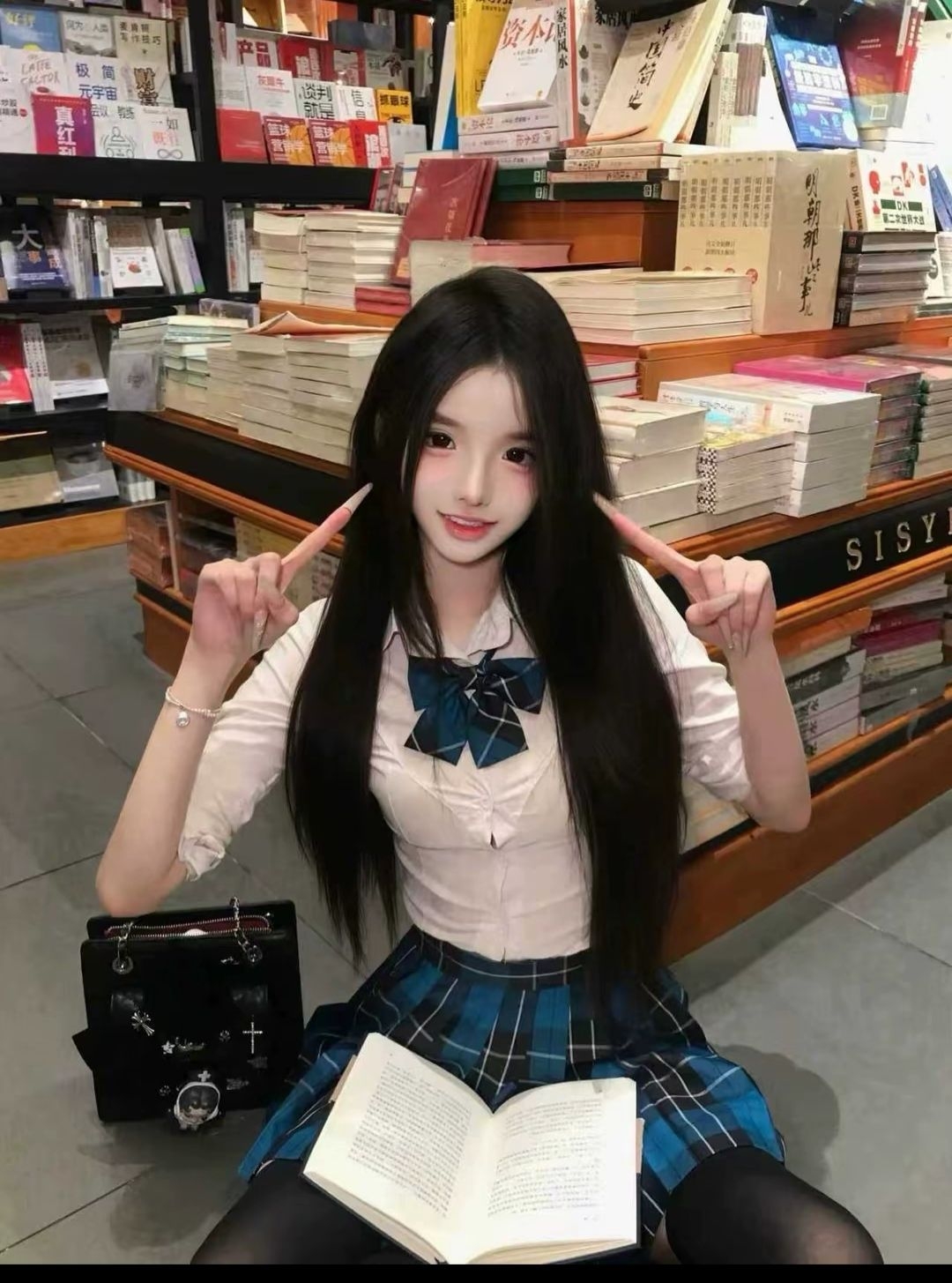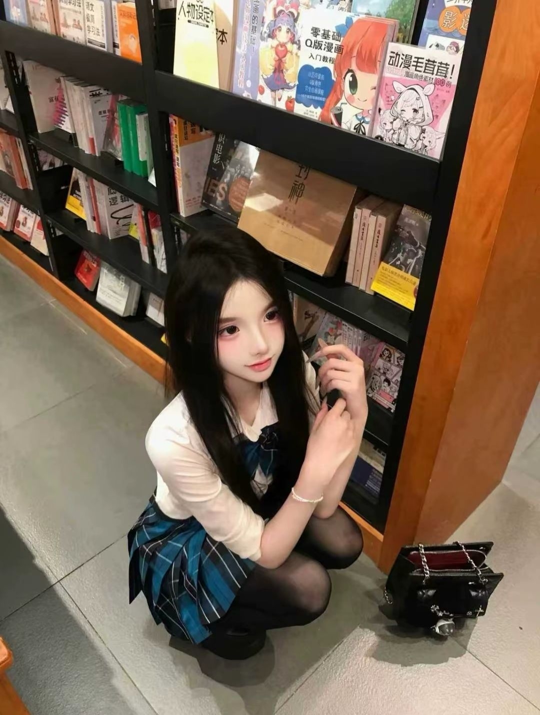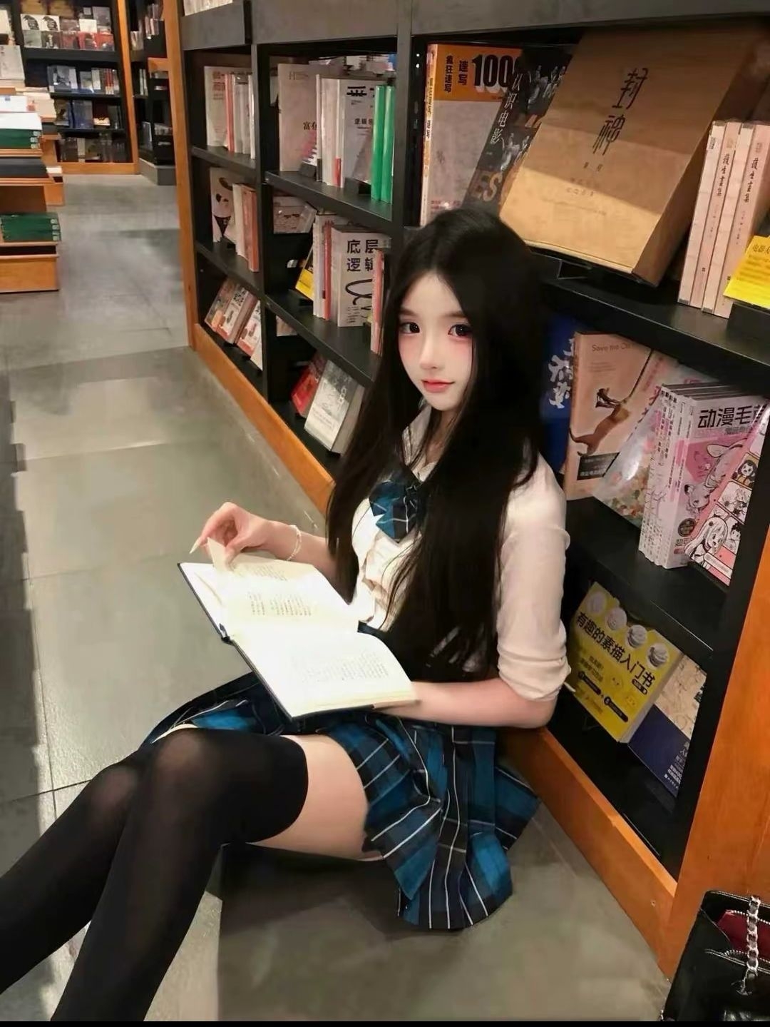 今天泡在书店,我穿了套蓝格裙配白衬衫,坐地上翻书的时候,风裹着纸墨香往领口钻~指尖蹭过书页边,余光瞟到架子上还有好多书被堆得老高,突然觉得安安静静耗一下午,比抱着手机刷一天舒服多啦