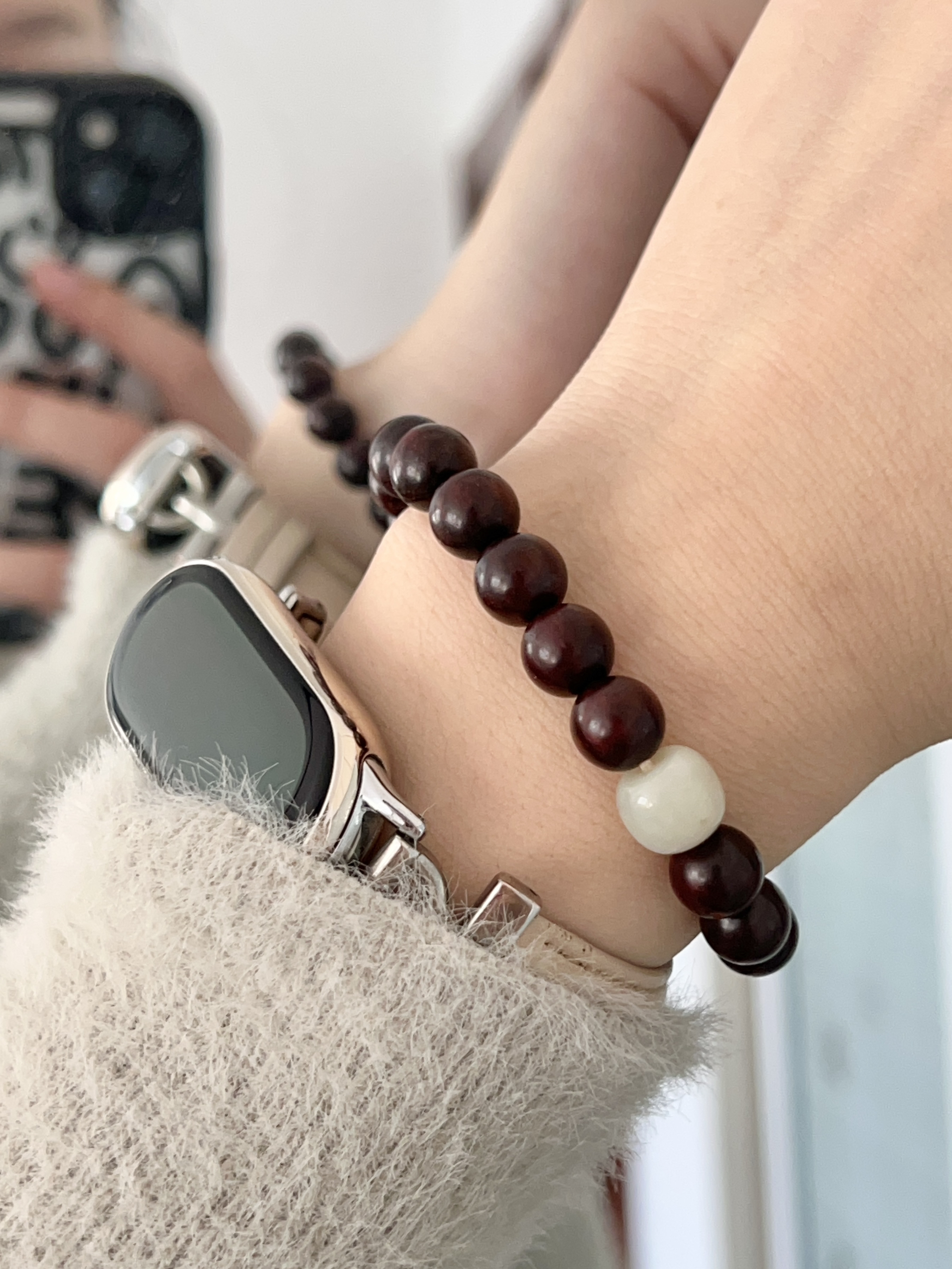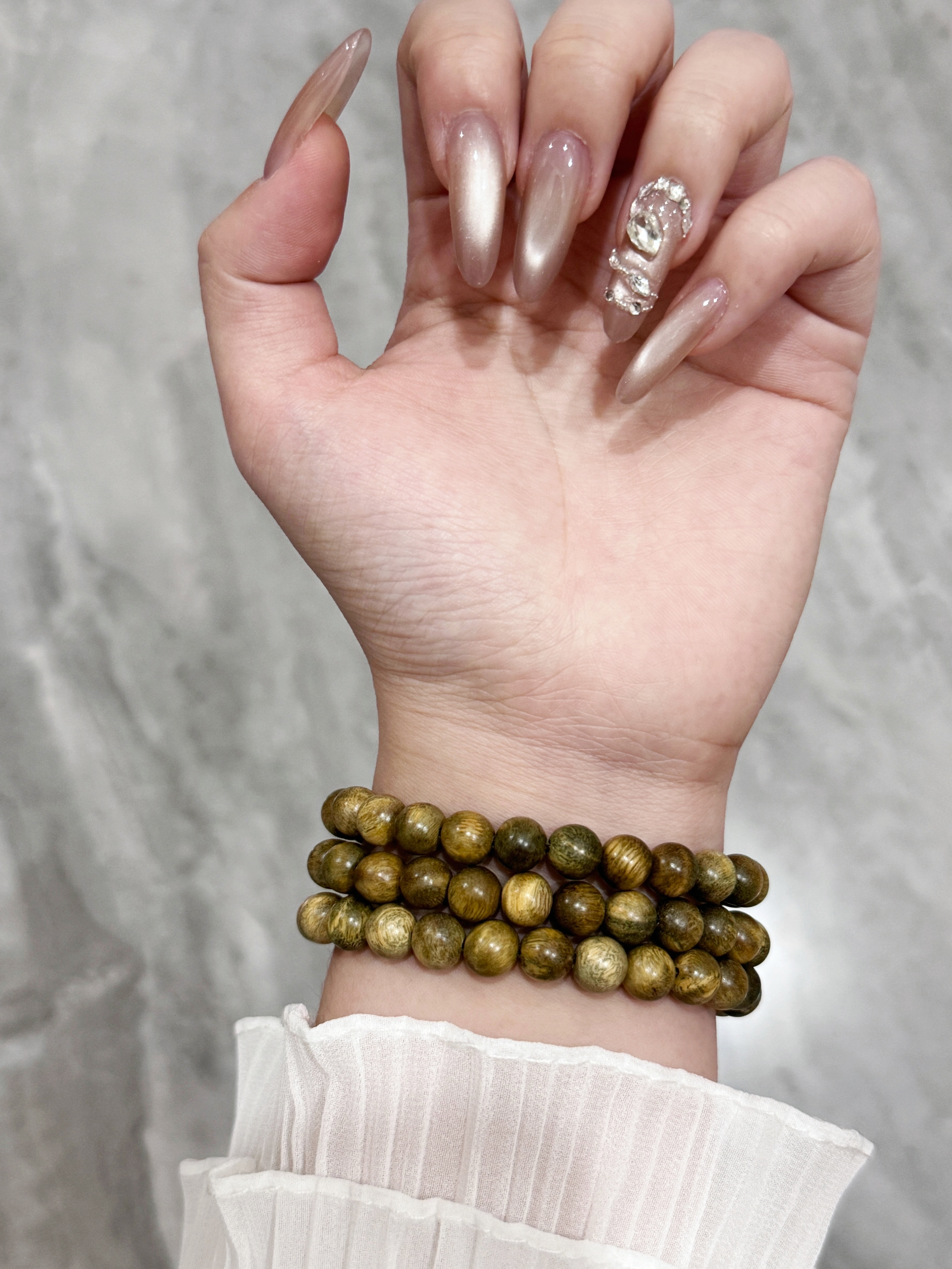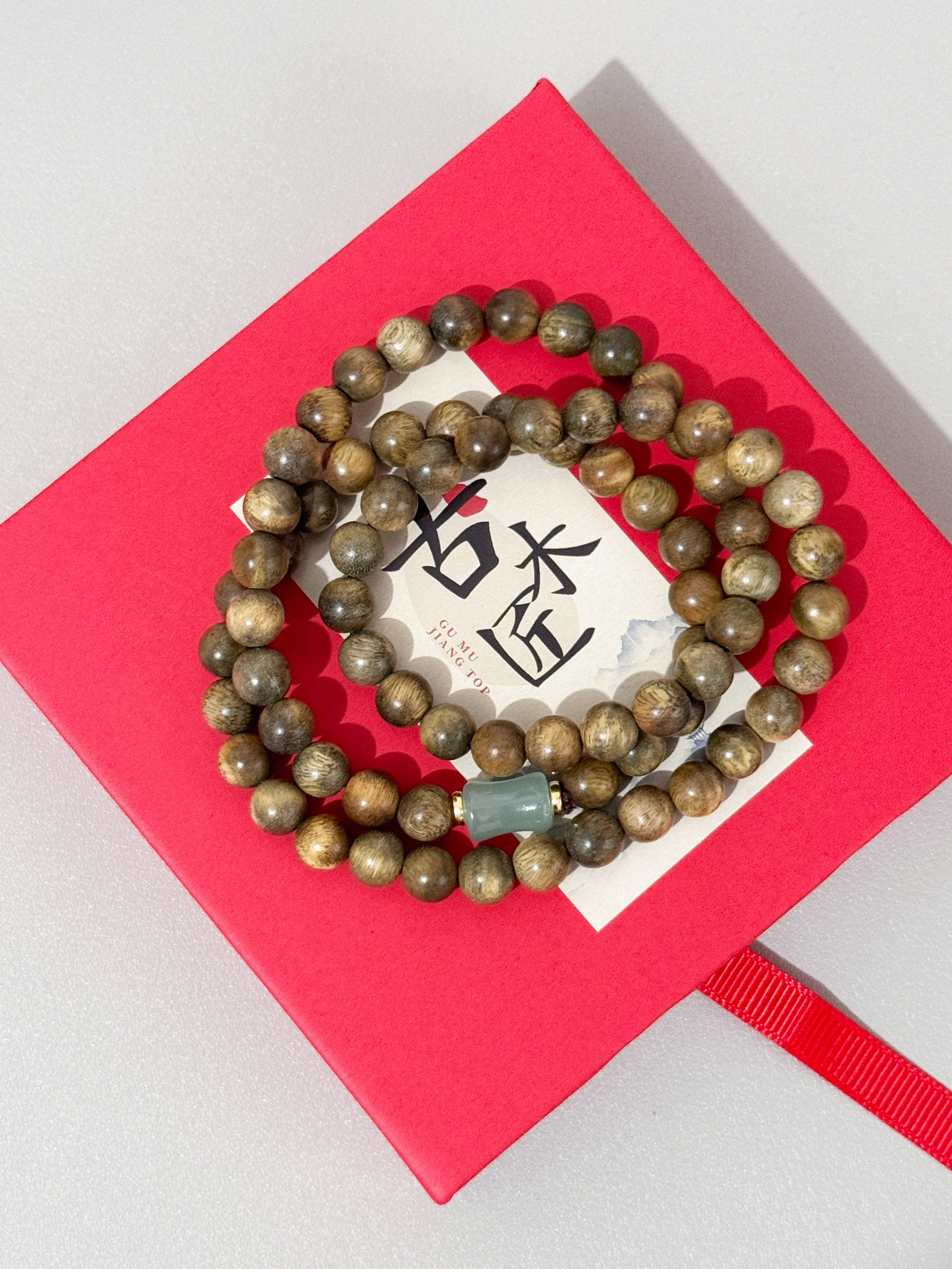 一抹沉香绕腕间,藏着自然的温润与岁月的静雅。绿檀木珠串起的温柔,搭配翡翠竹节的清雅,每一次抬手,都是与东方雅致的不期而遇。 木质的醇厚香气缓缓散逸,在喧嚣里寻得一方心安,既是日常穿搭的别致点缀,也是独属于自己的温柔陪伴。