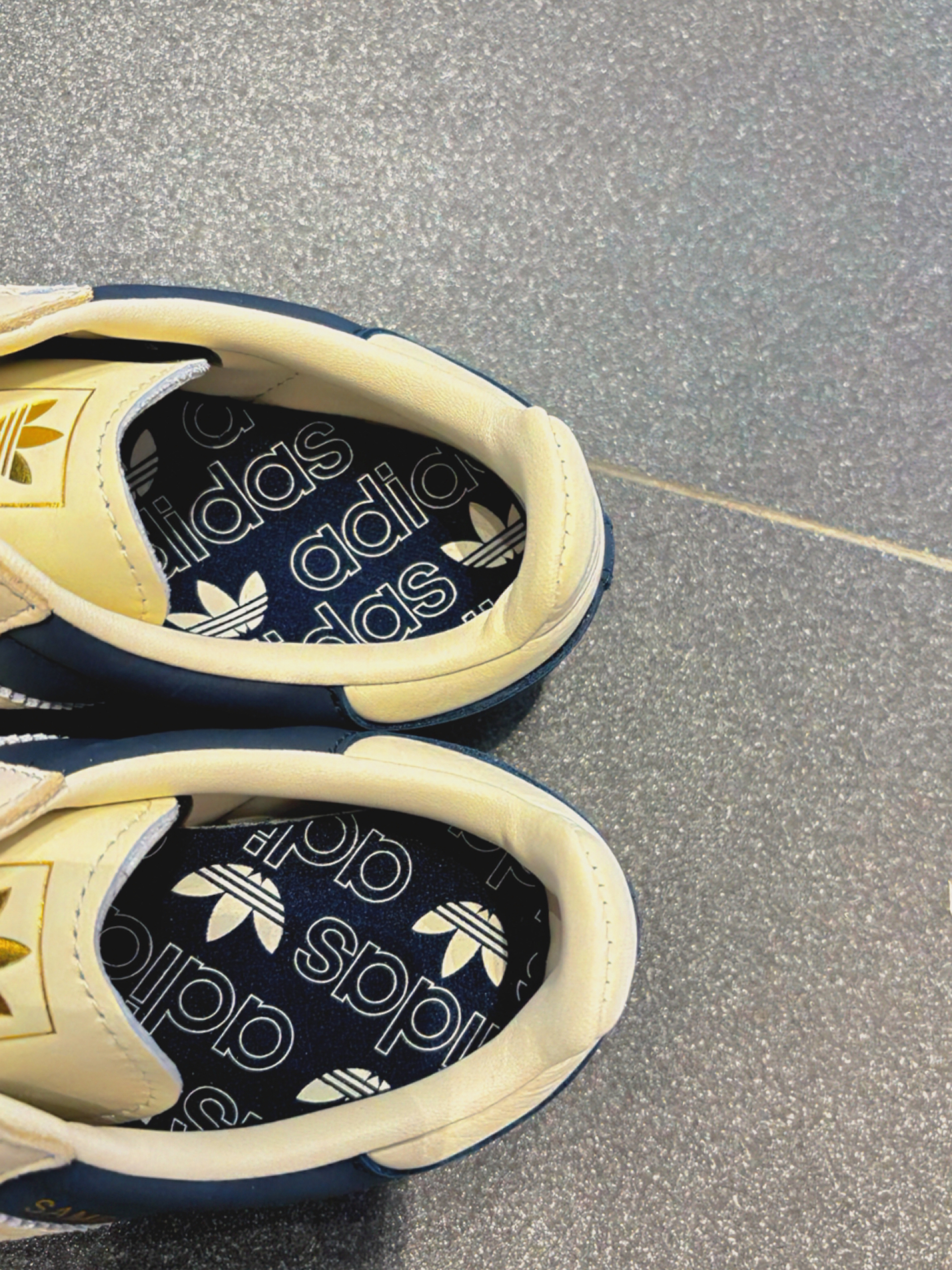 昨天降温穿这双adidas,小风裹着栗子香,走了俩小时都没觉得累。 踩上去像踩在晒透的棉花垫上,走石板路都不硌脚。我搭了深咖灯芯绒直筒裤+浅米色加绒卫衣,鞋身藏蓝配米白,既呼应了卫衣色调,又压得住灯芯绒的厚重感。
