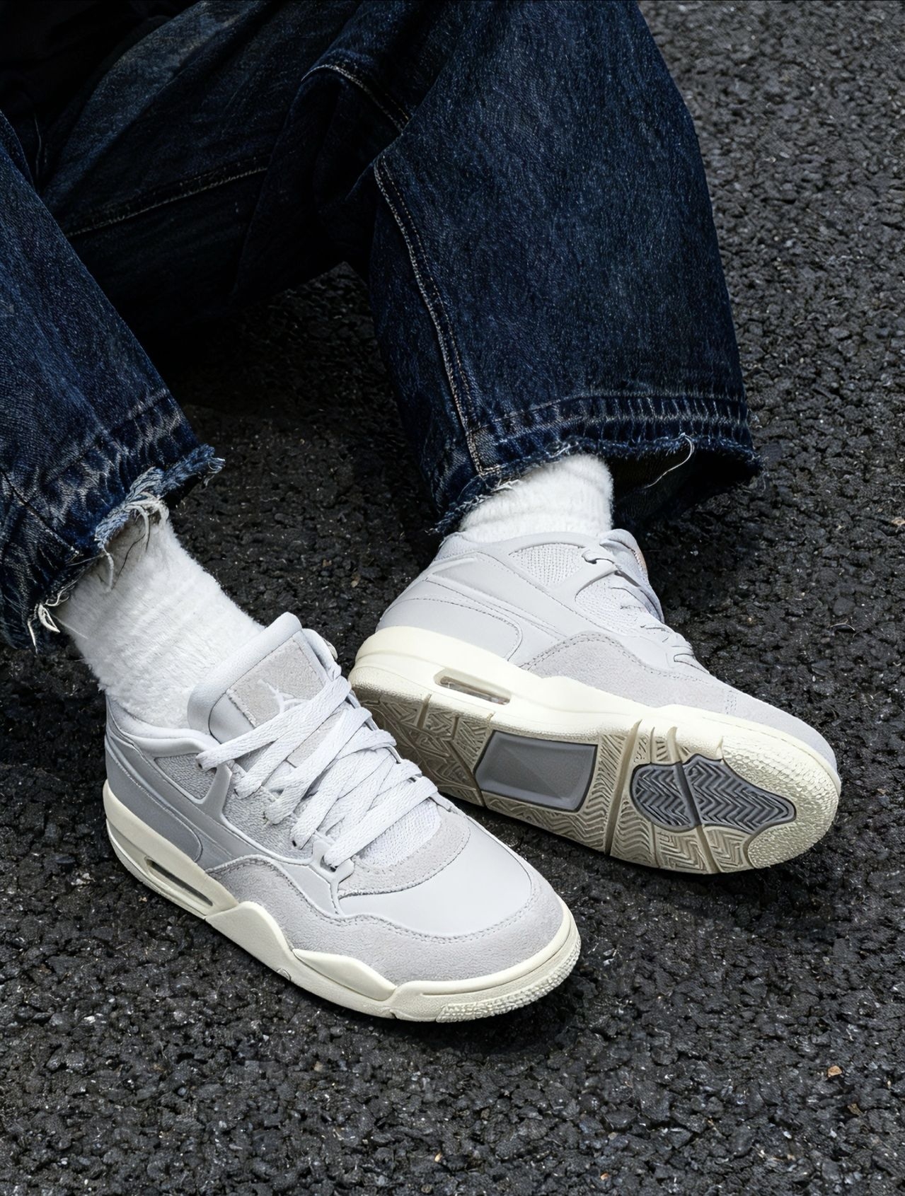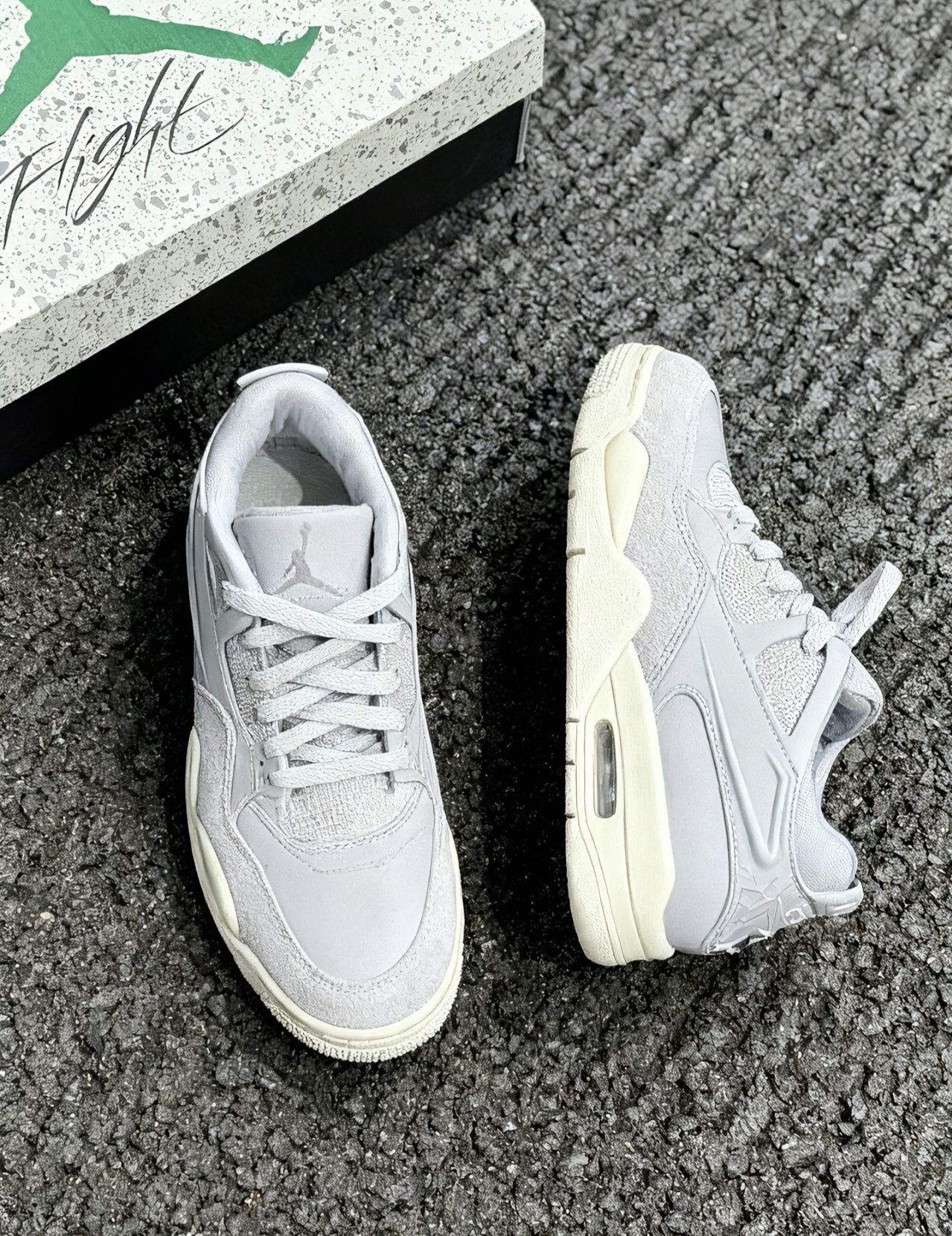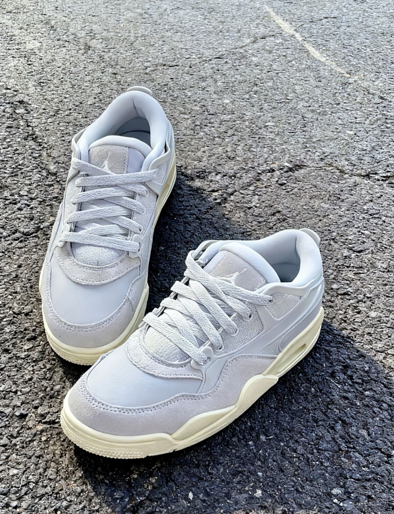上周刚入手了一双灰白配色AJ4RM真的好好看!上脚复古风氛围感直接拉满分享我的真实体验~ 外观是经典设计款,配色干净利落。鞋面的质感摸起来不错。有点翻毛绒➕皮革的拼接,层次分明~ 上脚很舒服,不会磨脚,尺码标准,正常拍就可以了。浅色系真的很耐看,日常搭配牛仔裤,休闲裤都是比较好搭配,平时上班通勤,逛街都是可以的~👟