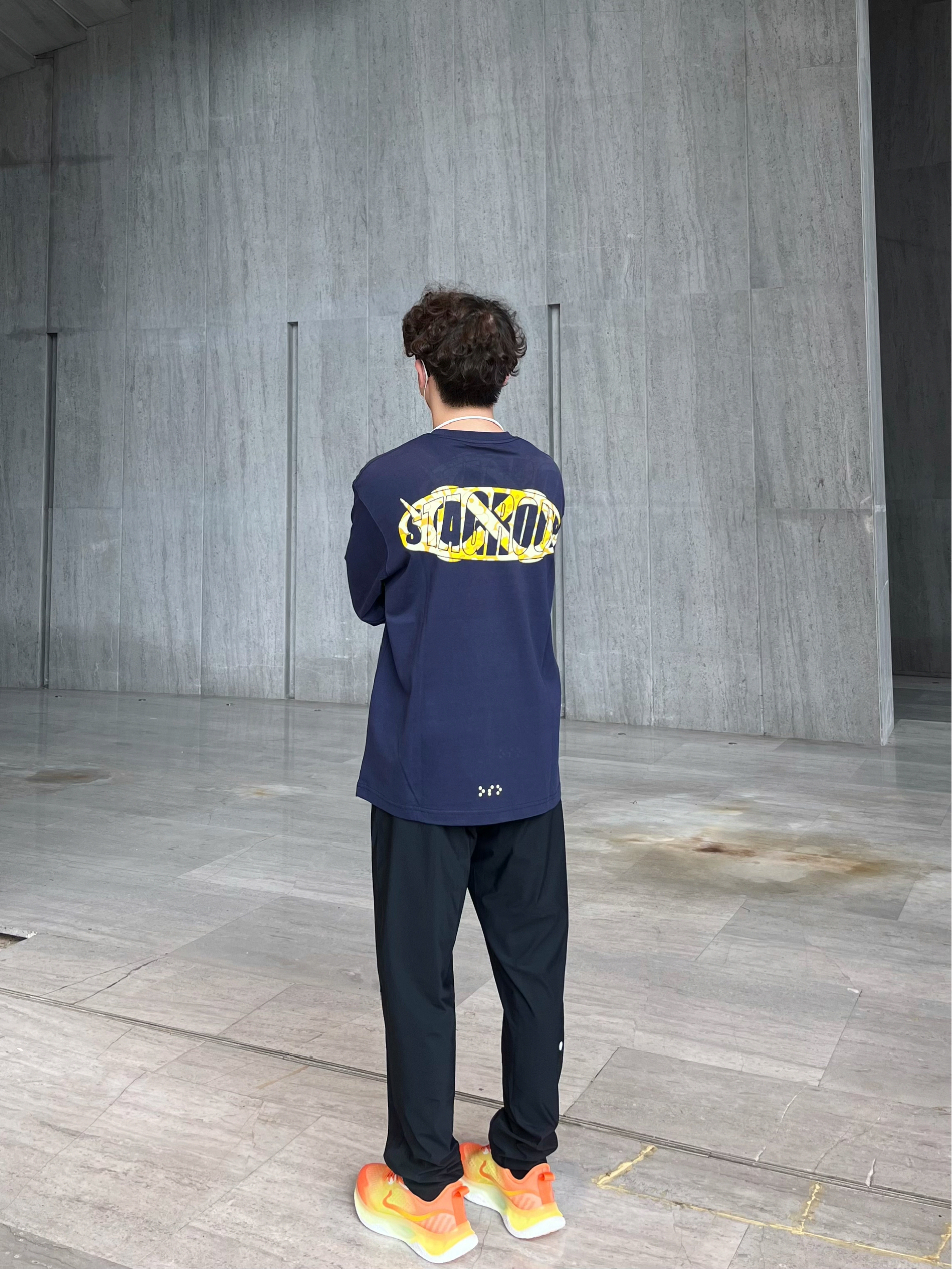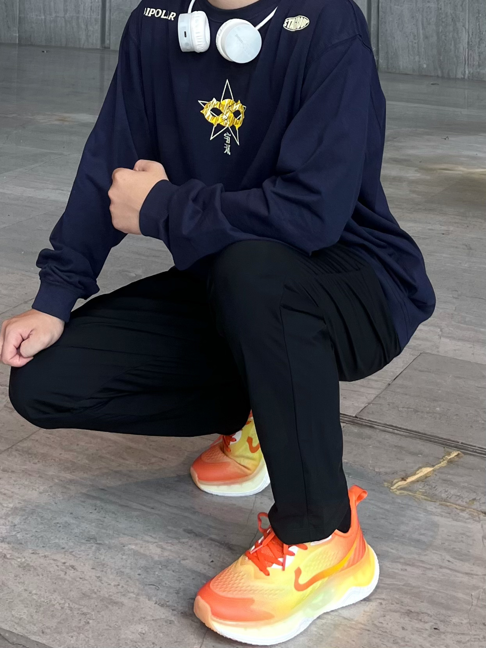 运动感就是男生最好的医美! 阳光向上的自信是最好的穿搭✔️ 今天上身一件美式印花长袖😼 裤子是冰丝卫裤 运动好好穿 活力橙🍊的慢跑训练鞋好吸精🥳 爆米花的鞋底回弹性好好 很舒服 夏天要来啦 要坚持跑步运动!